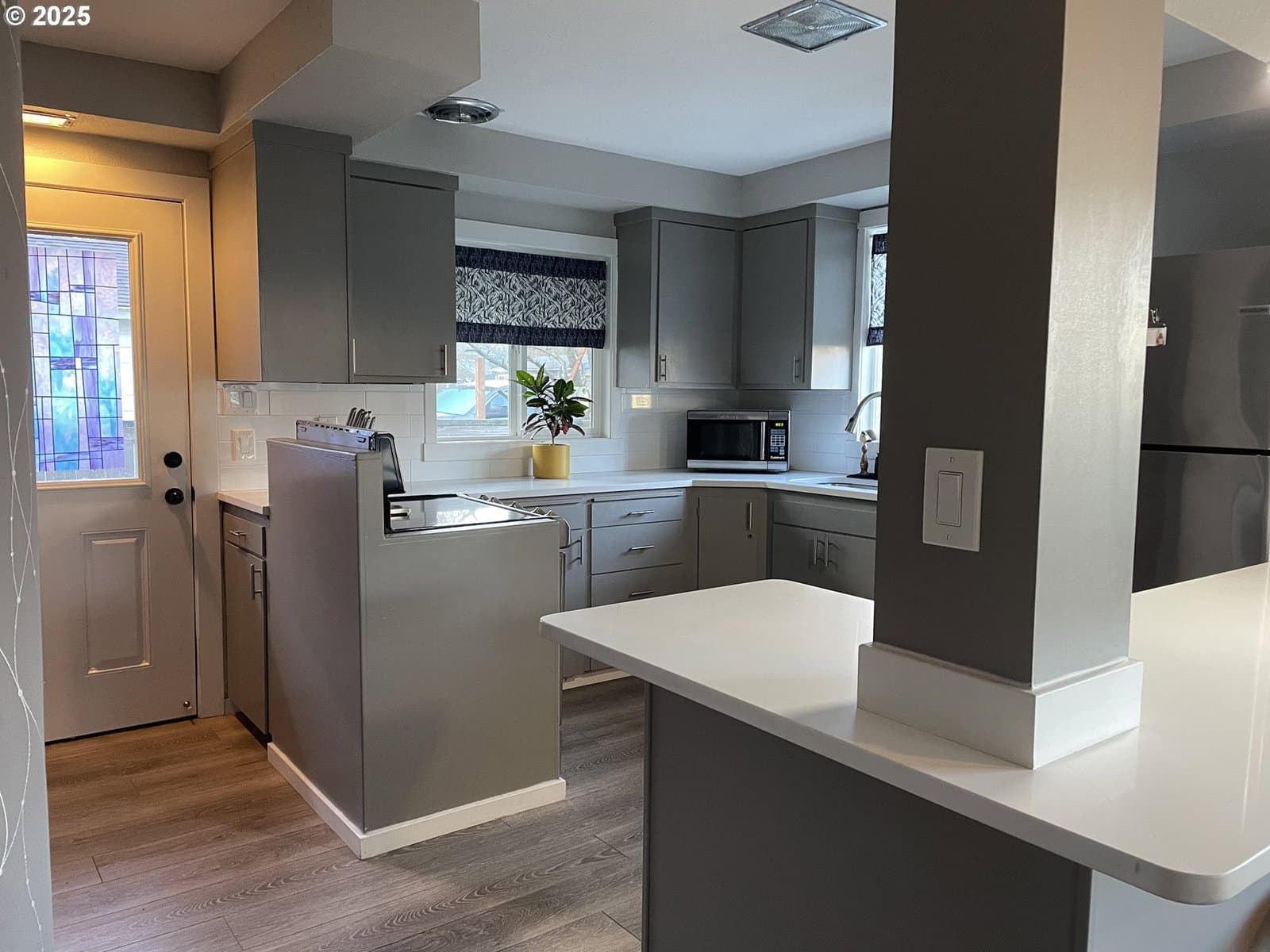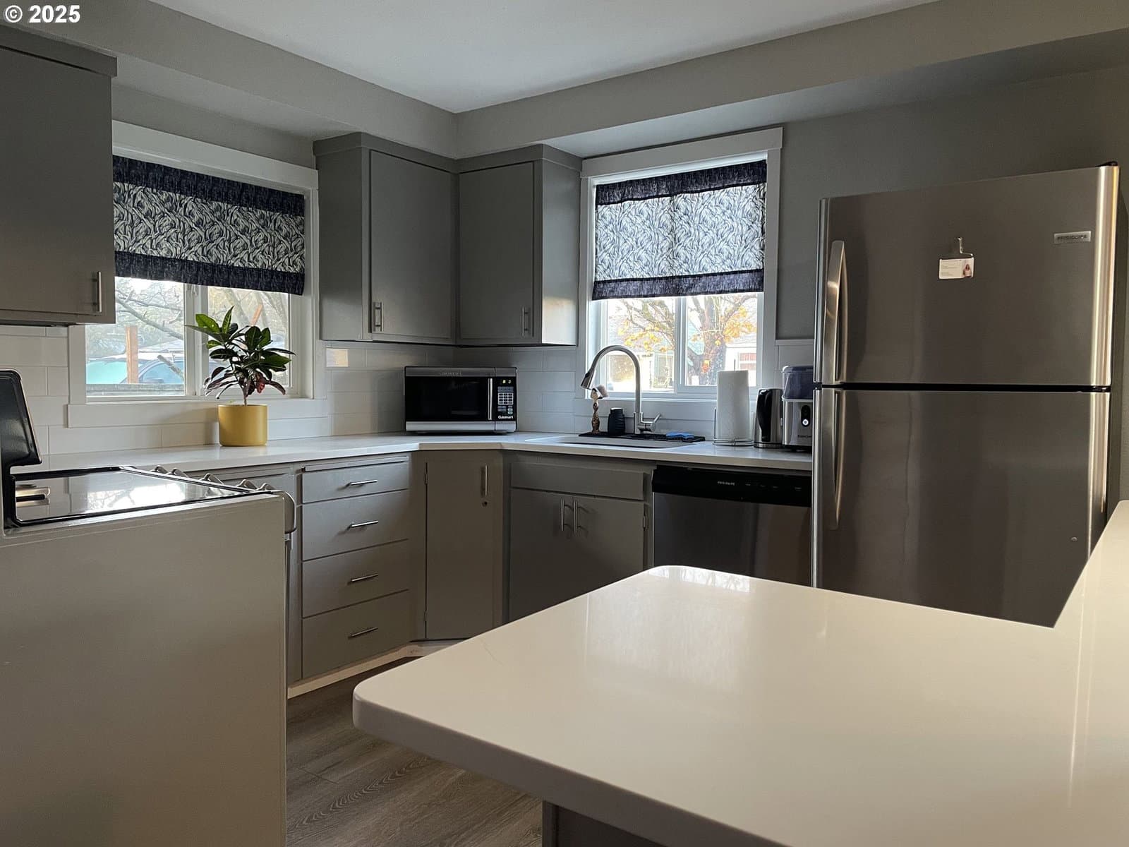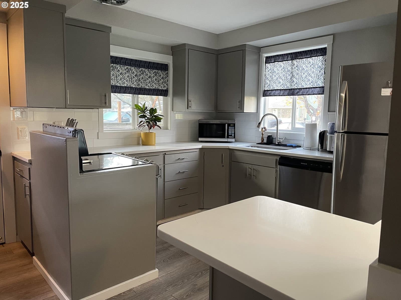 Back on market, no fault home or seller! Motivated Seller - ask about available concessions toward your closing costs! Move in ready and climate controlled for year round comfort! Super cute and functional 3 bedroom, 1 bath bungalow features great room-to-room flow complemented by a one year old furnace, air conditioner, ductwork, attic insulation, and a digital programmable thermostat to keep you cool or cozy. This beautifully finished home has original hardwood floors throughout, with tiled bathroom floor and durable vinyl plank in the kitchen complementing the white granite countertops. All appliances stay including: refrigerator, convection oven, dishwasher, washer and dryer. As a bonus on cold winter nights gather around the central large brick hearth to light a fire from the fresh aged cedar firewood stacked out back. Step through the sliding patio door to your own oversized covered deck with cedar privacy wall leading to a Tuff Shed with workbench and a fully fenced yard. Out front there is a covered porch, easy to maintain yard and parking pad for two, leading you into one of the most convenient neighborhoods in the SE, with food and shopping around every corner including 8 minutes to Costco, walking distance to Trader Joe’s and around the corner from Green line and I-205!