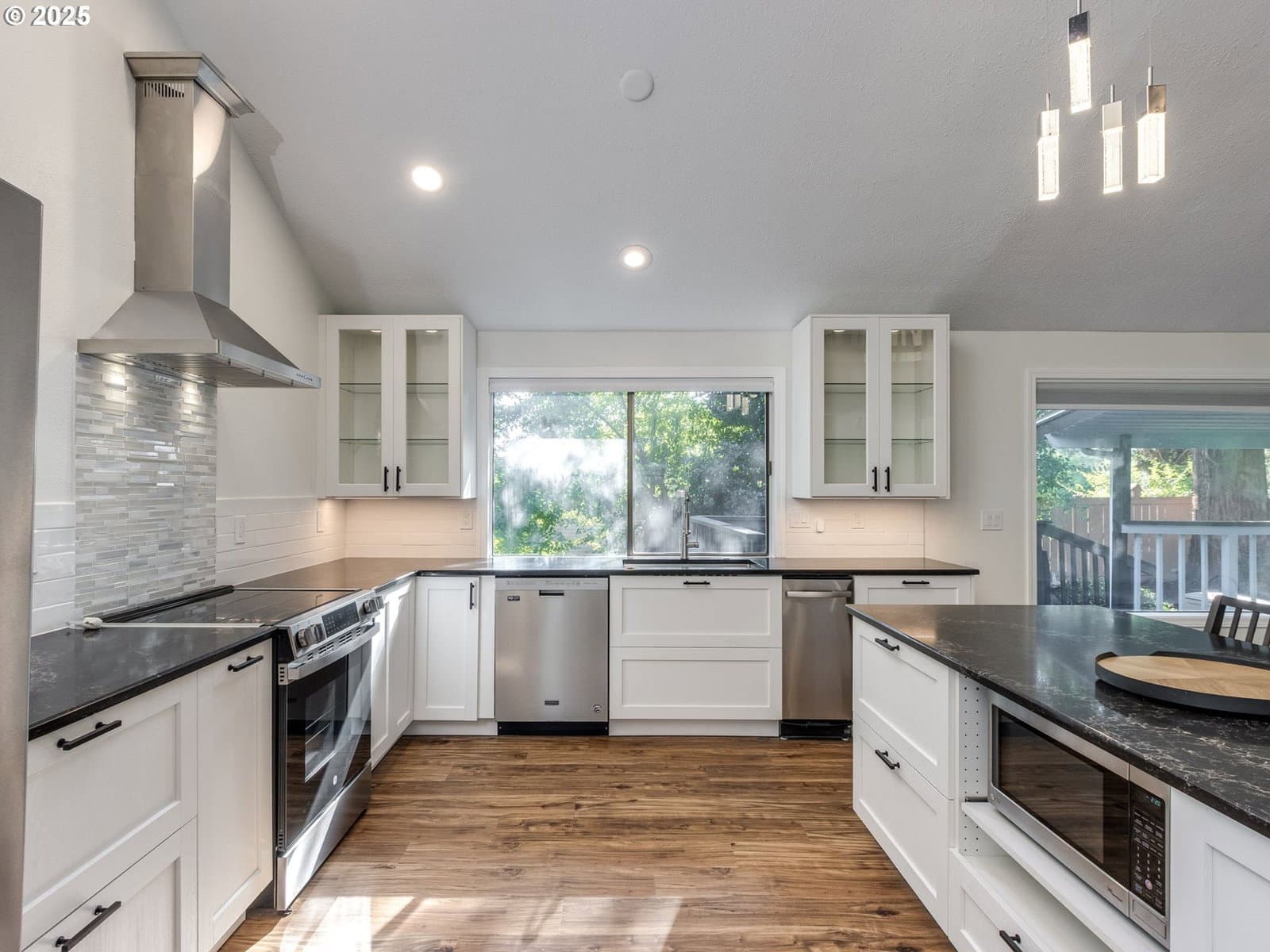 Light-filled and beautifully updated, this spacious two-level home offers comfort, style, and functionality throughout. At the heart of the home is a newly remodeled dream kitchen—designed to impress with miles of countertop space, abundant pantry storage featuring inside cabinet lighting, sleek new appliances, and a built-in trash compactor. The vaulted ceiling open floor-plan on the main flows from Kitchen into the dining/living room and out to a large deck overlooking the green space—ideal for entertaining or relaxing with family.The main-level primary suite includes an updated bathroom and a private covered deck that overlooks the green space for morning coffee or evening unwinding. Upstairs you'll find four additional rooms, offering the flexibility for up to five bedrooms or four plus a generous family/media room—perfect for movie nights, play space, or a home office. Every bathroom has been tastefully updated, the upstairs bathroom features heated tile floors and the entire home features fresh interior and exterior paint, new interior doors and hardware, updated plumbing fixtures, and new window coverings throughout.An oversized garage provides plenty of room for vehicles, gear, and hobbies—with bonus storage space above. Plus, a tall crawl space offers even more storage potential for seasonal items, tools, or outdoor equipment. Walking distance to beautiful Southern Lites Park. Seller is a licensed Realtor. This home is truly move-in ready and waiting for its next chapter!