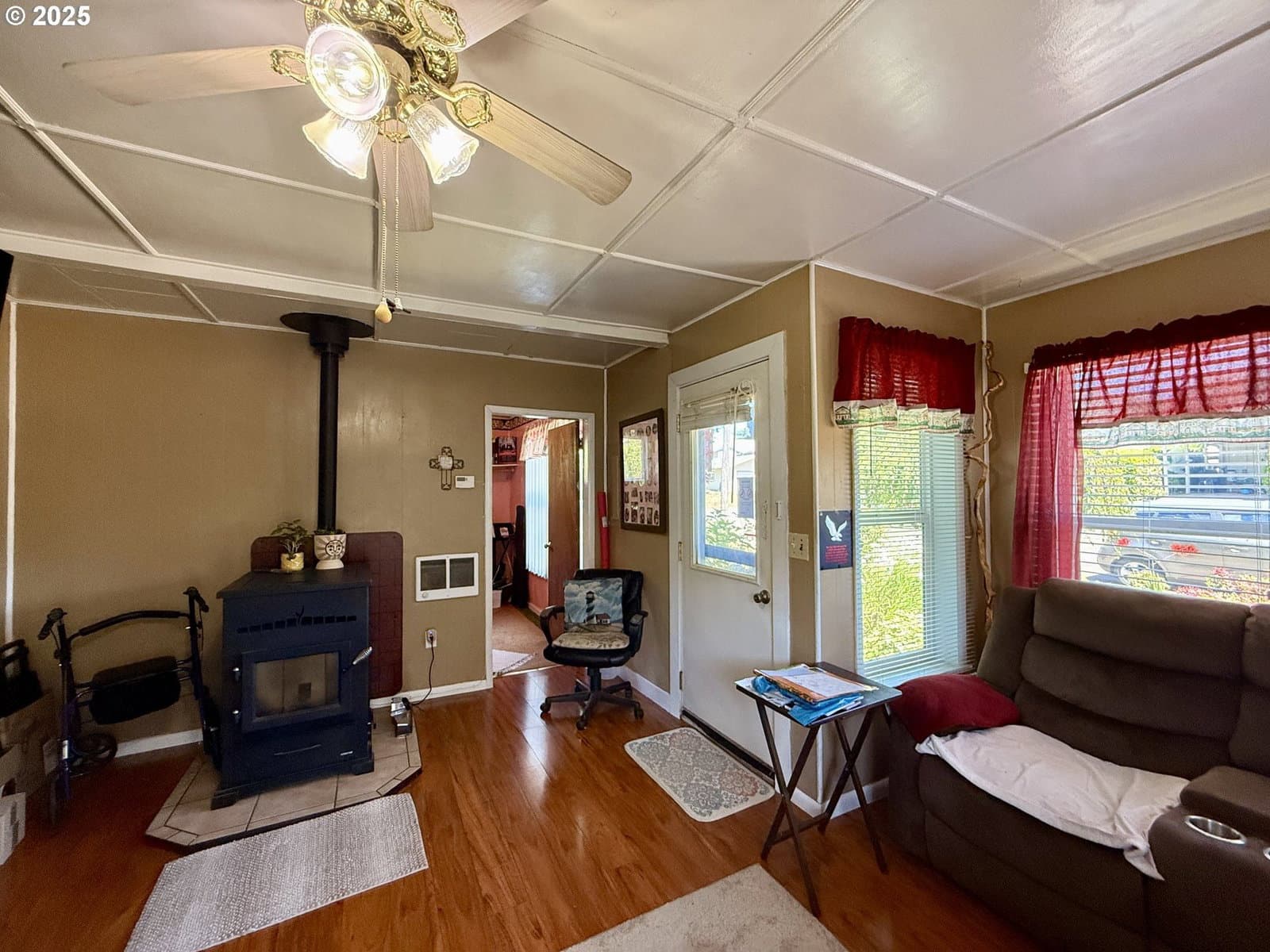 Nicely maintained 2 bedroom, 1 bath home with a fully fenced backyard, fruit trees, and a newer deck for outdoor enjoyment. Recent improvements include a newer roof, pellet stove, and hot water heater with updated wirin,. The exterior has been recently painted, and the single-car garage offers additional space for storage or a workshop. Schedule a tour with your favorite realtor today!