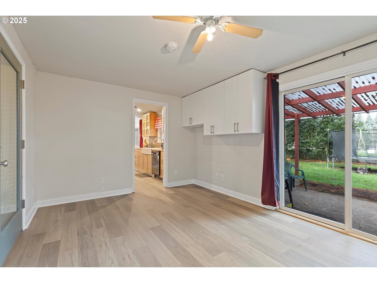This is your second chance to own to this beautifully updated one-level home on a spacious lot that backs to peaceful greenspace and the nearby primary school. Back on the market due to buyer circumstances, sellers not a fault. The bright, open floor plan and vaulted ceilings create an inviting flow from the moment you enter.The home features all new trim and flooring throughout, complementing the updated kitchen with butcher block counters, a charming farm-style sink, and a double oven. The vaulted living room centers around a cozy woodstove that adds warmth and character.The primary suite includes hardwood floors and a private bath with stone counters and a walk-in shower. Two additional generous bedrooms plus a versatile home office offer plenty of flexibility for work, creativity, or quiet downtime.The oversized backyard feels wonderfully private with mature landscaping, a level lawn, and a covered patio perfect for relaxing mornings or unwinding in the evening. A two-car garage and room for RV parking provide extra convenience and space for future hobbies.This home blends comfort and charm in a setting that makes everyday living feel easy and peaceful.