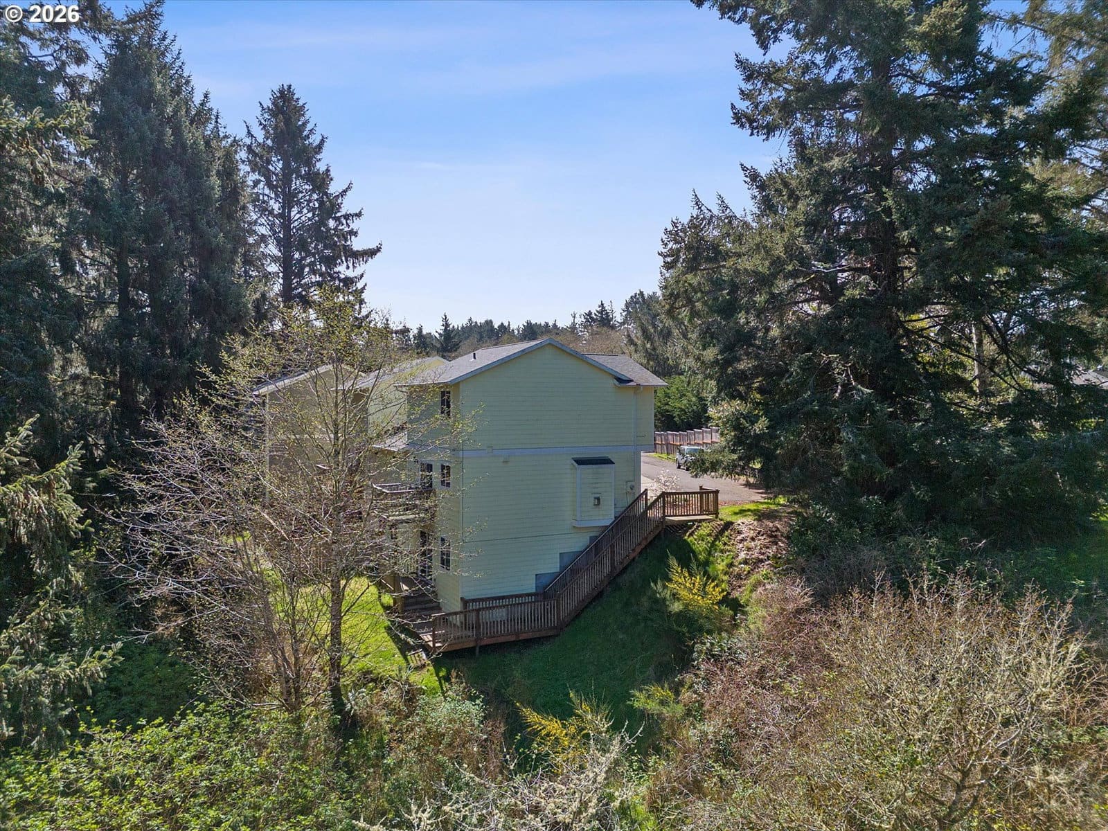 Location is everything! Situated at the secluded end of NE Surf Avenue as the last unit, this contemporary townhome offers the rare combination of total privacy and easy access to all that Lincoln City has to offer. With 2 Bedrooms upstairs, laundry closet, and one full bath, and another half bath downstairs, it makes for a perfect coastal retreat, 1st time home, or an investment property. The kitchen comes fully equipped with a suite of stainless-steel appliances, including a gas range and microwave. Inside, the modern open-concept floor plan features vaulted ceilings, lvp flooring, and a cozy gas fireplace, perfect for quiet evenings in. Park In the attached 1 car garage or use for additional storage. For an added amenity, there is a large completely finished 315 sq ft bonus room with separate access downstairs that can be used for a home gym, craft room, sewing room, or gaming enthusiasts, and another enclosed storage area. Enjoy the outdoors from your private deck or take a short trip to nearby D River State Park and local beaches. Centrally located in NE Lincoln City, close to Devils Lake, the beach, ballpark, community center schools, hospital, and so much more. Small complex only 4 units and low hoa dues. Call today to schedule your showing. HOA Dues are only for the road nothing else is included according to owner.
