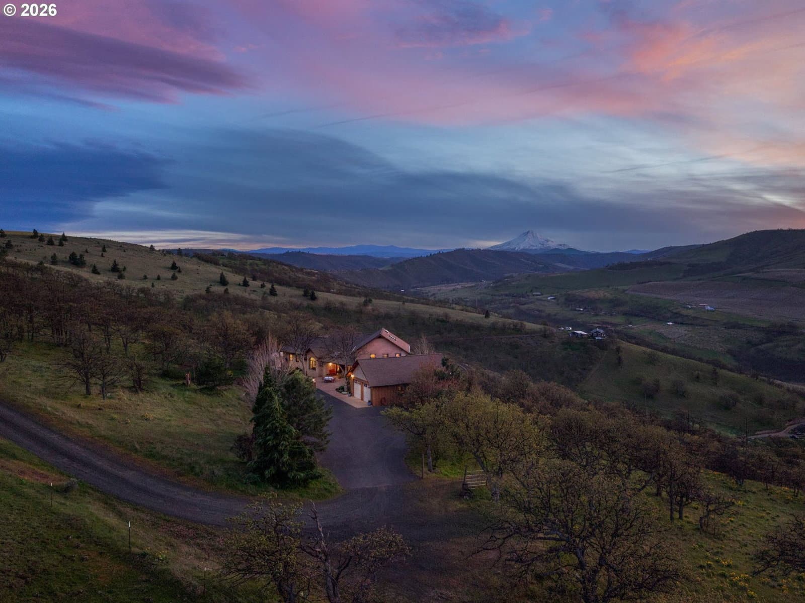 Private Columbia Gorge Luxury Estate on 9 acres with million dollar views! Unparalleled access to world-class kiteboarding, windsurfing, scenic hiking trails, and renowned salmon fishing just moments from your doorstep. Perfectly positioned to embrace the very best of the Gorge’s outdoor lifestyle, this property delivers a rare combination of adventure, privacy, and natural beauty.This custom-built Columbia Gorge estate showcases breathtaking vistas of the Columbia Gorge valley, Mt. Hood, Mt. Adams, surrounding orchards and vineyards, and the Columbia River. Designed in a Northwest contemporary style, the home features a gourmet kitchen, a luxurious primary suite on the main level, and detached guest quarters—ideal for hosting or multi-generational living.An oversized two-car garage with dedicated workspace and an additional shop provide ample room for hobbies, storage, or creative pursuits. Throughout the home, you’ll find detailed high-end craftsmanship and thoughtful design elements that elevate everyday living. The exquisite architecture paired with the natural beauty of the setting creates a truly inspiring retreat—where privacy, luxury, and the outdoors come together seamlessly.