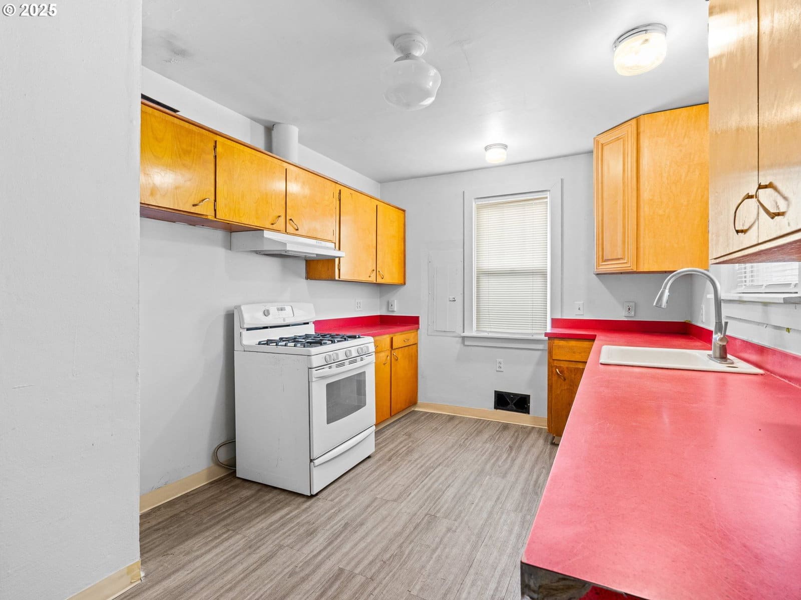 Set on a wide, tree-filled lot in Arbor Lodge, this classic one-level home offers comfortable everyday living and room to grow. A covered front porch welcomes you into a bright living room that connects to a generous dining area and an efficient kitchen with long stretches of counter space and storage. All three bedrooms are on the main floor for easy living, along with a full bathroom plus a convenient half bath. An attached 1-car garage at the back of the property adds secure parking and extra space for bikes, tools, or gear. The deep backyard features mature trees, open lawn, and a simple path, creating plenty of space for gardens, play, or outdoor gatherings. With an 82 Walk Score and an 89 Bike Score, this location makes it easy to leave the car at home—New Seasons Market, the MAX Yellow Line at Rosa Parks, and neighborhood spots like Posies Cafe and The Arbor Lodge coffee shop are close by, along with bars and restaurants along N Interstate. When you want time outside, Arbor Lodge Park and nearby Peninsula Park offer paths, open fields, and community recreation.