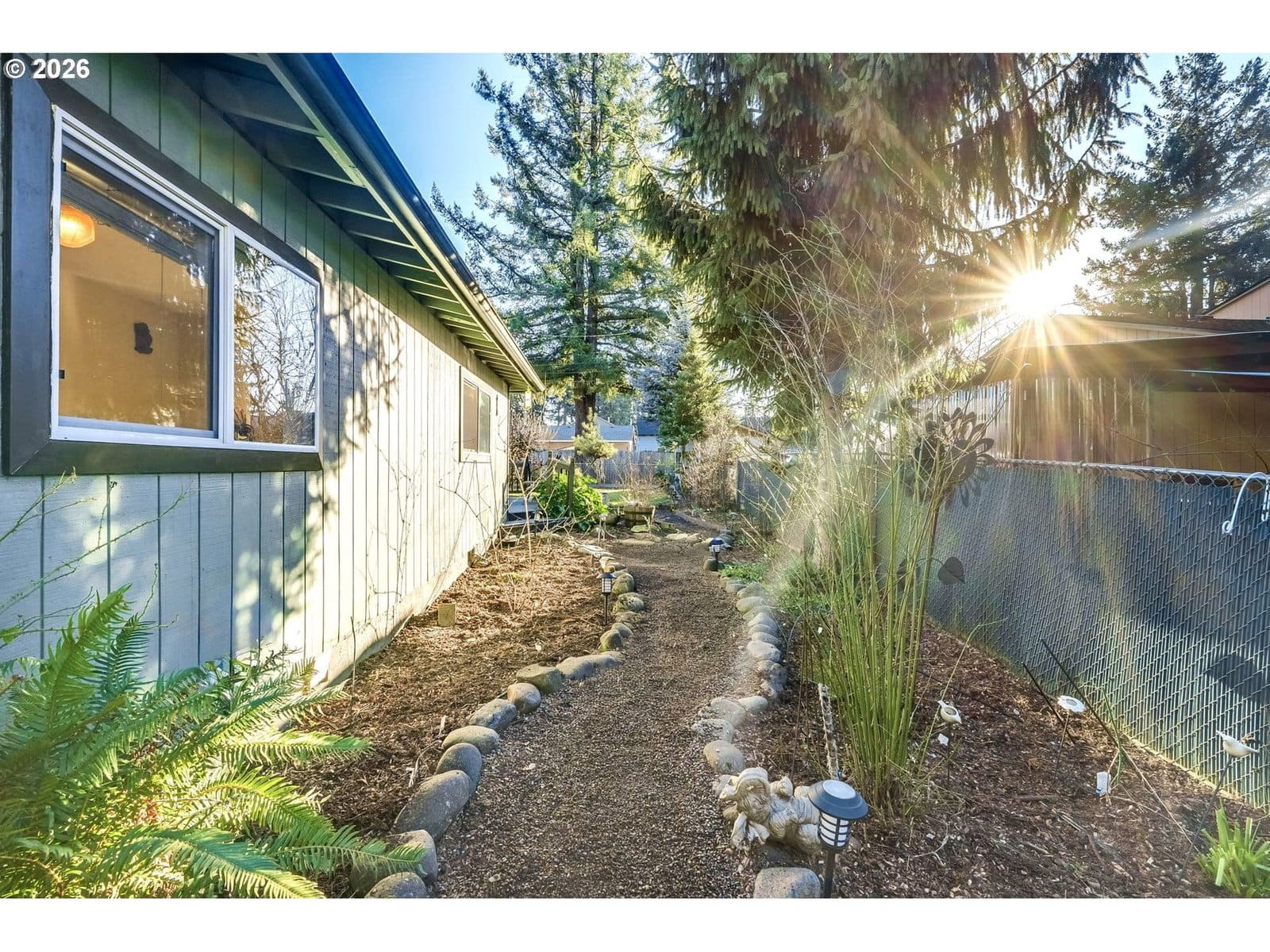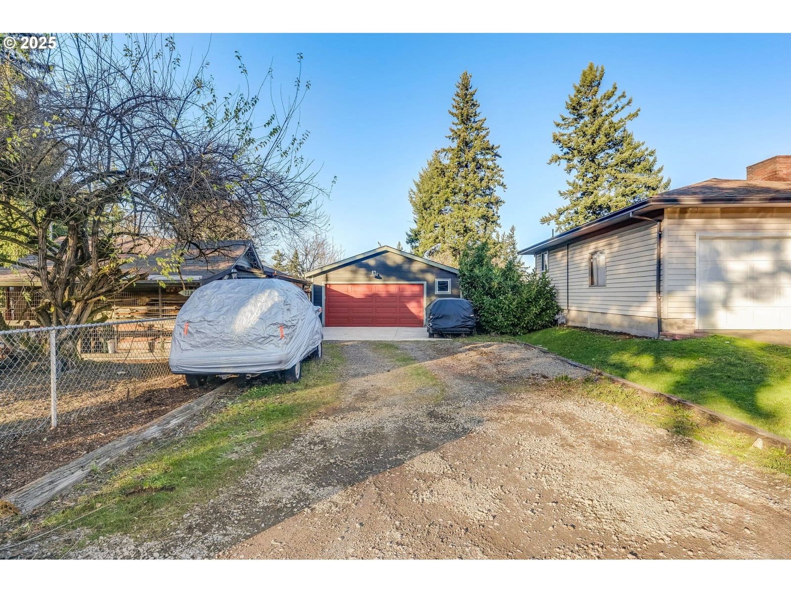 A truly rare opportunity to own a private end-of-road home with features rarely found at this price point. Set in a peaceful, low-traffic location with no direct neighbors behind, this property offers an open, quiet setting that is increasingly hard to find. Exceptional parking includes dedicated RV space and room for 6-9 vehicles, along with a fully finished and insulated two-car garage.The outdoor setting is a standout, offering a true gardener’s dream with established perennials, a fruit-bearing apple tree, an updated irrigation system, and a 23’ x 11’ enclosed catio that provides covered outdoor living year-round.Recent updates include a brand new water heater, dishwasher, washing machine, interior paint, and garbage disposal. Additional improvements include roof and gutters cleaned in 2025, upgraded faucets, and a decommissioned septic tank.Inside, the 2-bedroom, 2-bath, 1,142-sq-ft home features an open concept living, dining, and kitchen layout ideal for everyday living. The spacious primary suite includes a walk-in closet and full bathroom, while a functional mudroom provides convenient entry with washer and dryer. Buyer to confirm on 3-buildable tax lots. This home truly has it all! [Home Energy Score = 4. HES Report at https://rpt.greenbuildingregistry.com/hes/OR10243303]