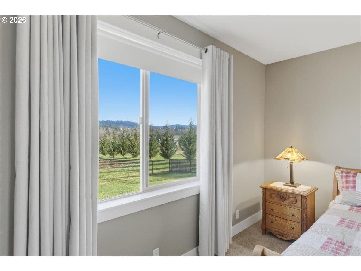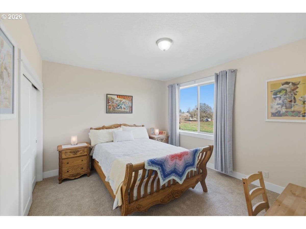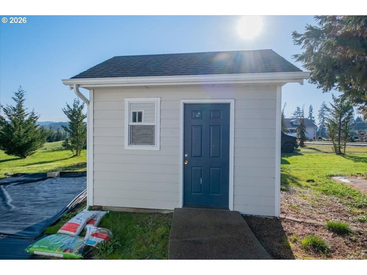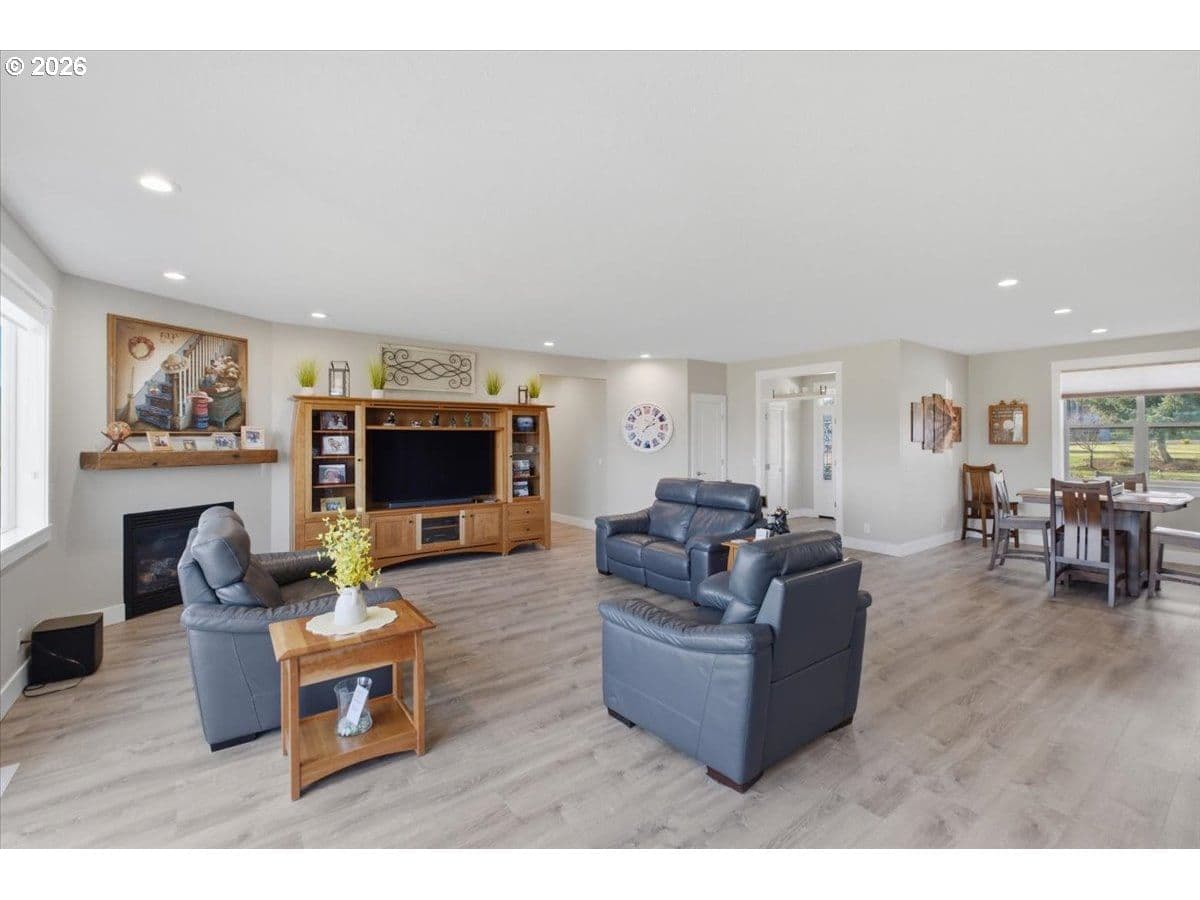 This stunning acreage property offers a beautifully renovated, single-level home on 2.67 acres, an exceptional shop and sweeping pastoral views! The light filled, open concept floor plan features wide plank LVP flooring and a cozy gas fireplace, all perfectly positioned to capture the views through expansive windows. The spacious kitchen offers an oversized island, granite counters and S.S appliances. The primary suite is a true retreat with a spa style tile shower and an impressive custom walk-in closet. Enjoy seamless indoor-outdoor living on the back deck overlooking peaceful fields and the rolling hills beyond. This property truly shines with RV parking, raised garden beds, a separate shed and a two-story shop featuring a freight elevator, heat and 220v power. The attached 3+ car tandem garage also provides 832 sq.ft of additional space for hobbies, storage and workshop use. Other highlights include Tesla solar panels, a paved circular driveway, accent lights, UGS, low taxes and three separate tax lots which offer excellent flexibility and multiple use potential. This is a rare opportunity to enjoy a quiet, rural lifestyle while still benefiting from city services, utilities and convenient access to everyday amenities.