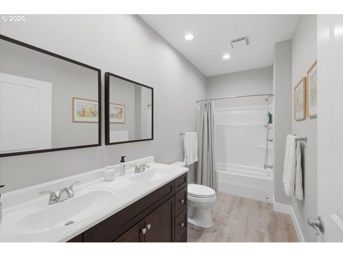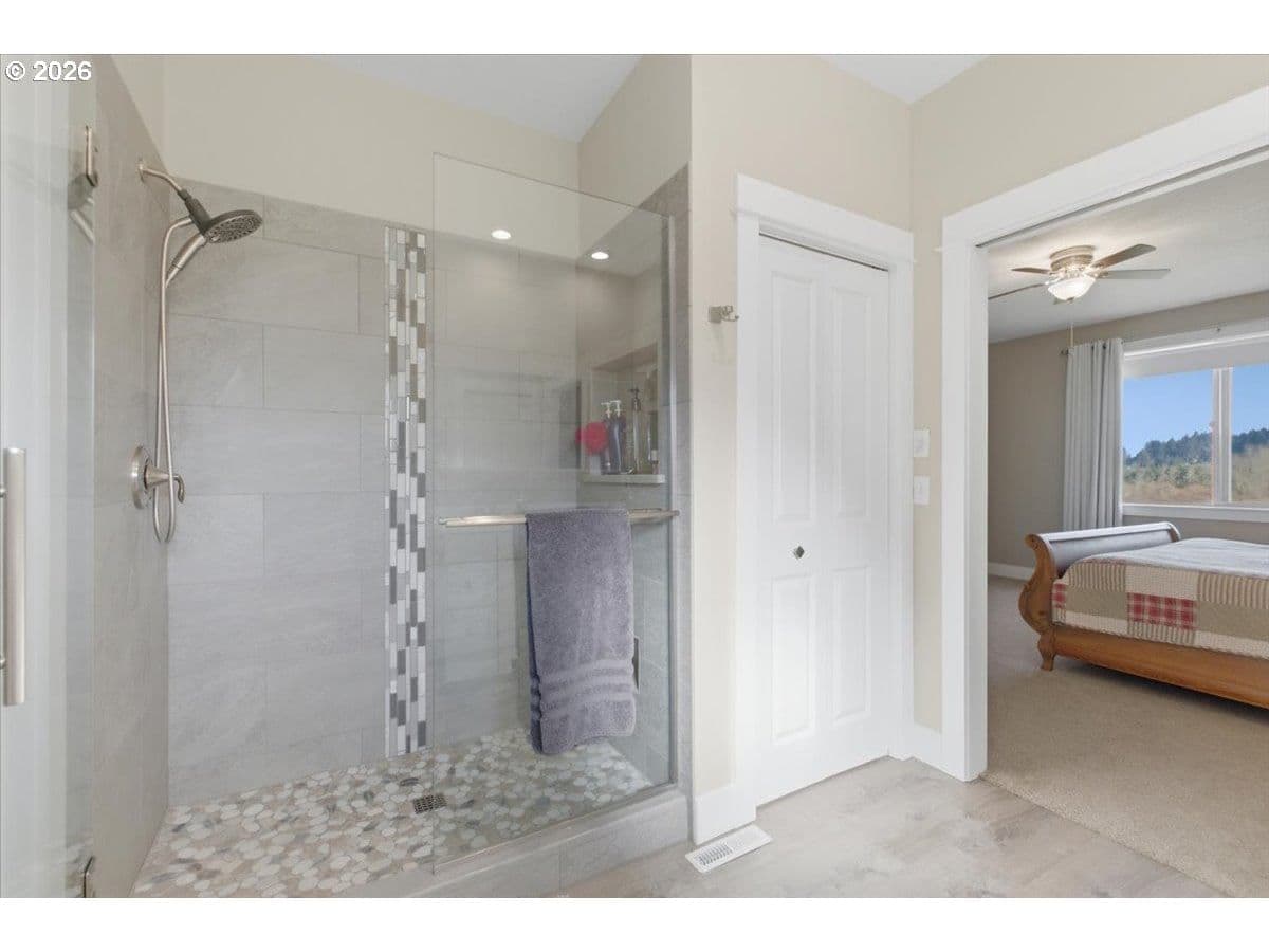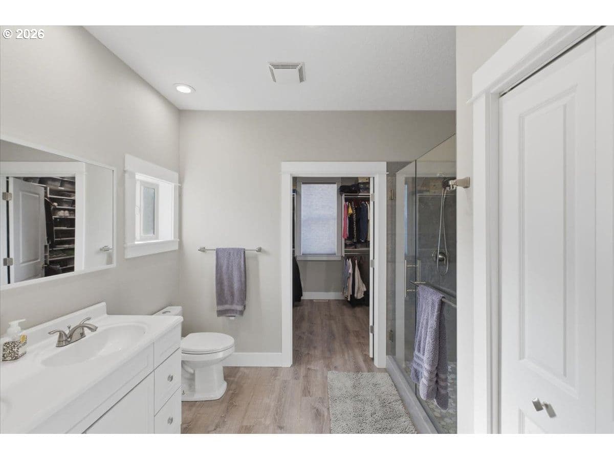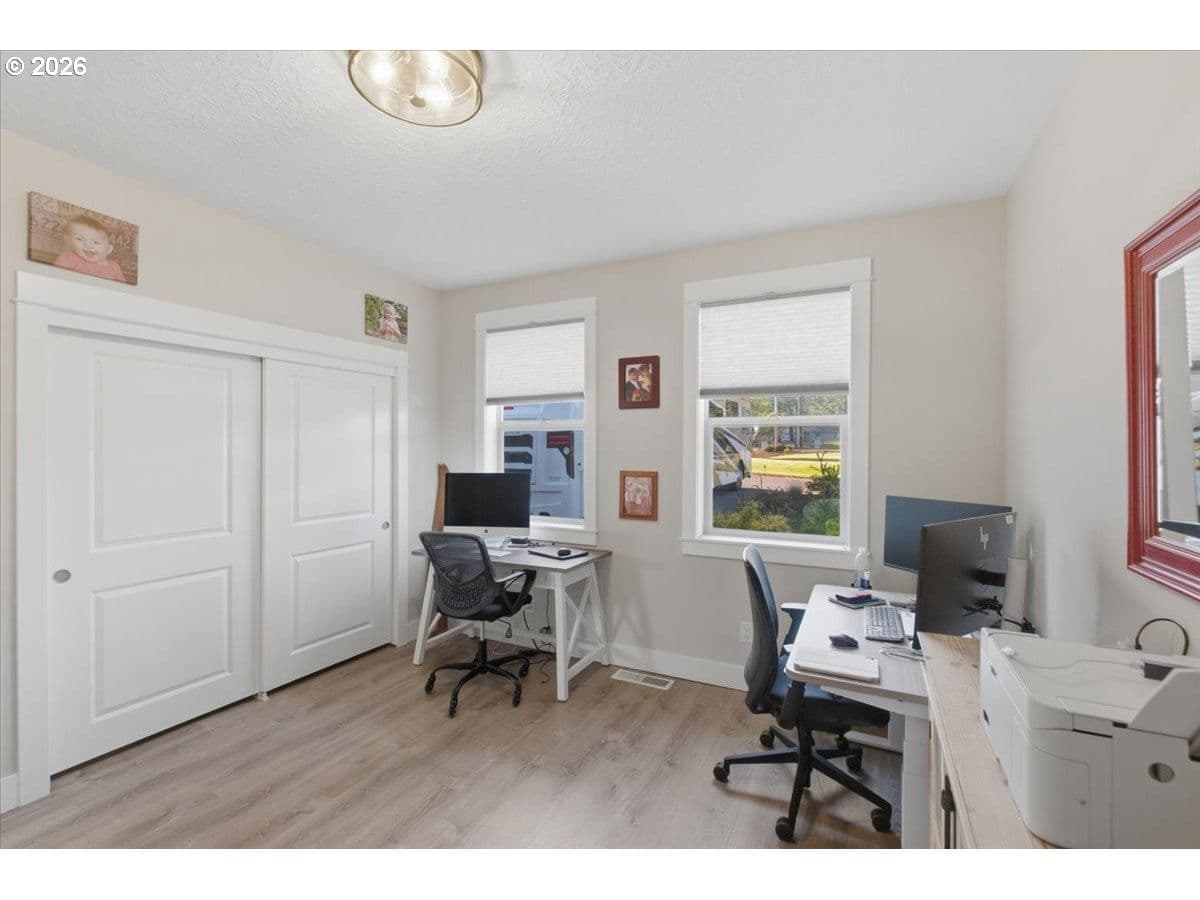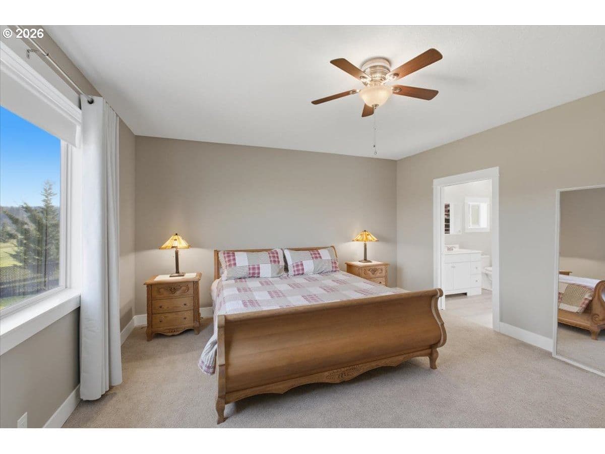 This stunning acreage property offers a beautifully renovated, single-level home on 2.67 acres, an exceptional shop and sweeping pastoral views! The light filled, open concept floor plan features wide plank LVP flooring and a cozy gas fireplace, all perfectly positioned to capture the views through expansive windows. The spacious kitchen offers an oversized island, granite counters and S.S appliances. The primary suite is a true retreat with a spa style tile shower and an impressive custom walk-in closet. Enjoy seamless indoor-outdoor living on the back deck overlooking peaceful fields and the rolling hills beyond. This property truly shines with RV parking, raised garden beds, a separate shed and a two-story shop featuring a freight elevator, heat and 220v power. The attached 3+ car tandem garage also provides 832 sq.ft of additional space for hobbies, storage and workshop use. Other highlights include Tesla solar panels, a paved circular driveway, accent lights, UGS, low taxes and three separate tax lots which offer excellent flexibility and multiple use potential. This is a rare opportunity to enjoy a quiet, rural lifestyle while still benefiting from city services, utilities and convenient access to everyday amenities.