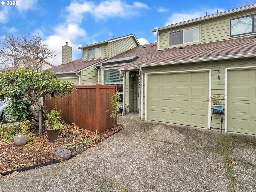 **OPEN HOUSE SATURDAY 1/31 FROM 12PM-2PM** Conveniently located in the heart of West Eugene, this beautifully maintained home sits just moments from Churchill High School and nearby shopping, yet tucked within a quiet, private neighborhood. The well-managed, affordable HOA provides exceptional value, covering exterior maintenance, insurance, and common areas, ensuring easy, low-stress living. Inside, you’re welcomed by a stunning mid-century inspired living room featuring a soaring open ceiling, large bay windows that fill the space with natural light, and attractive laminate flooring. The flowing layout connects seamlessly to the dining area and an updated kitchen that’s both functional and inviting. A sliding glass door opens to a charming back patio perfect for relaxing or entertaining. Upstairs are two generously sized bedrooms with plush wall-to-wall carpet, a spacious bathroom with double sinks and a soaking tub, plus a versatile loft overlooking the staircase, ideal for an office or creative space. Additional highlights include year-round comfort with heating and cooling, a roomy one car garage, and numerous owner upgrades including HVAC, paint, water heater, kitchen updates, and flooring. A rare blend of affordability, quality, and location, this home offers exceptional value in one of Eugene’s most convenient areas.