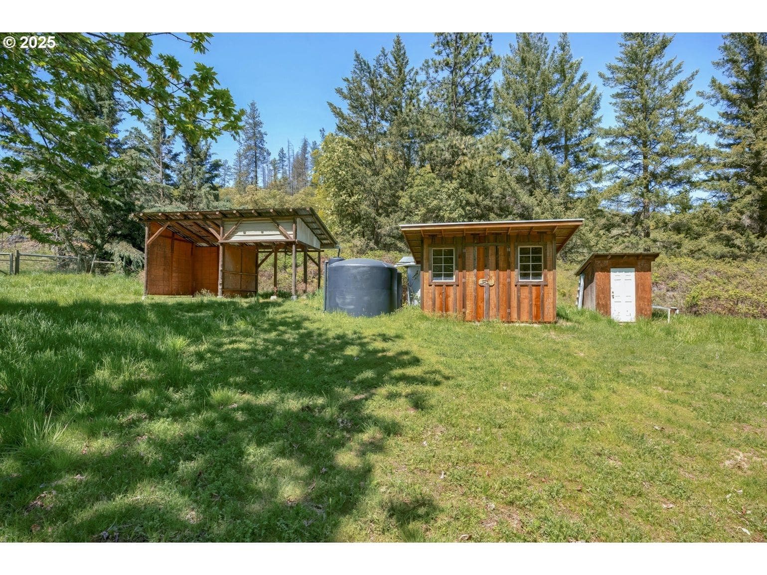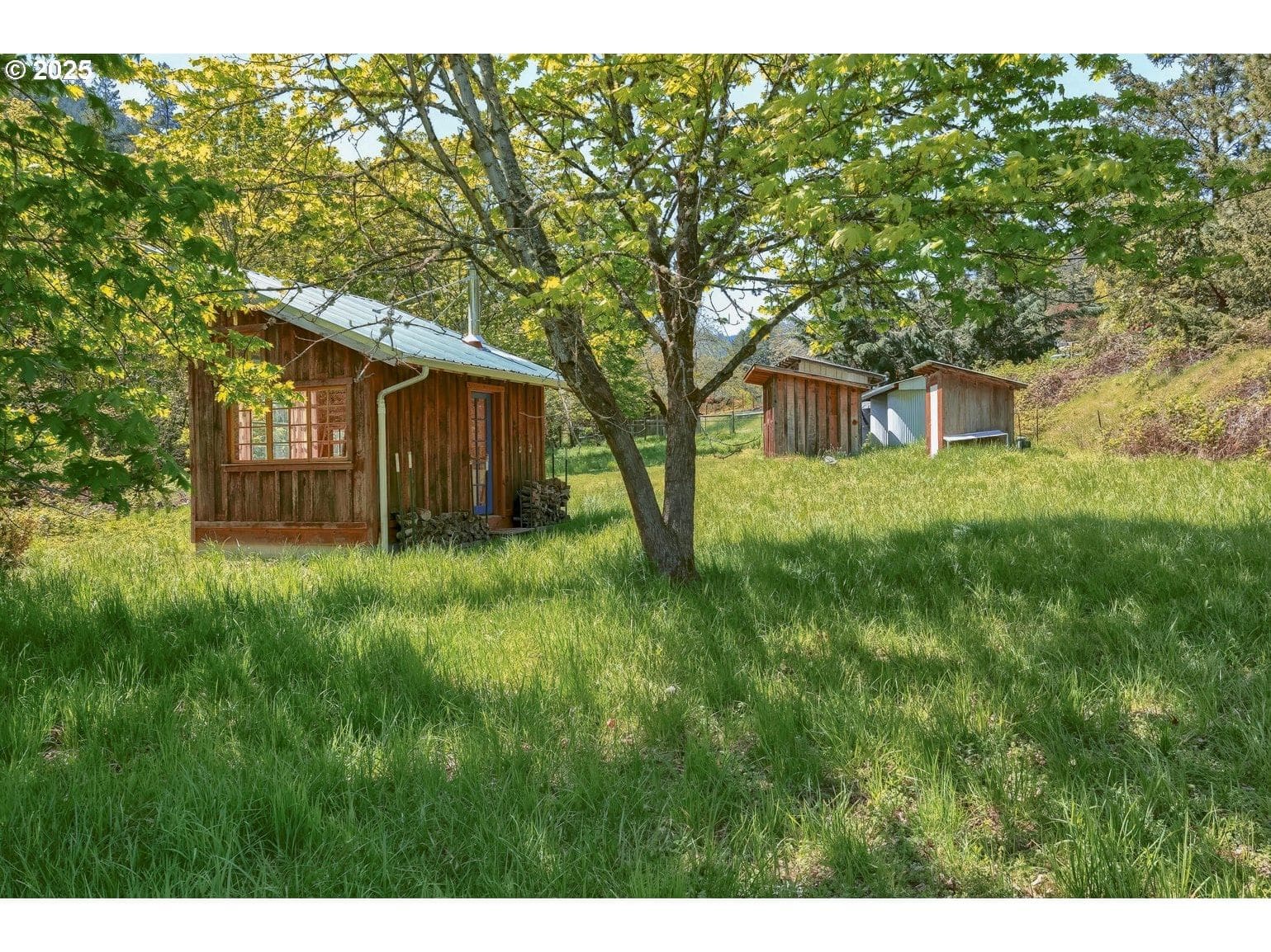 Discover this bright and modern home tucked away on 5 private acres, just minutes from Talent and Ashland. Expansive, sun-drenched fields are surrounded by mature oaks and conifers. Already in place are two fenced gardens, raised beds, a generous workshop, and thriving fruit trees. This property boasts extensive water resources for hobby farming and animals, including a seasonal creek, rainwater collection, and 43,000 gallons of storage. Inside, a custom-built masonry heater anchors the living space, complemented by large south-facing windows that invite warmth and natural light. The primary suite, renovated in 2023, offers a relaxing, airy retreat with scenic views and a luxurious shower. Two versatile second-floor bedrooms, ideal as home offices, overlook the valley. Superior thermal performance is provided by insulated SIP panel framing. A versatile bonus cabin is ready for your creative projects or personal retreat. Enjoy the best of urban convenience and rural tranquility.