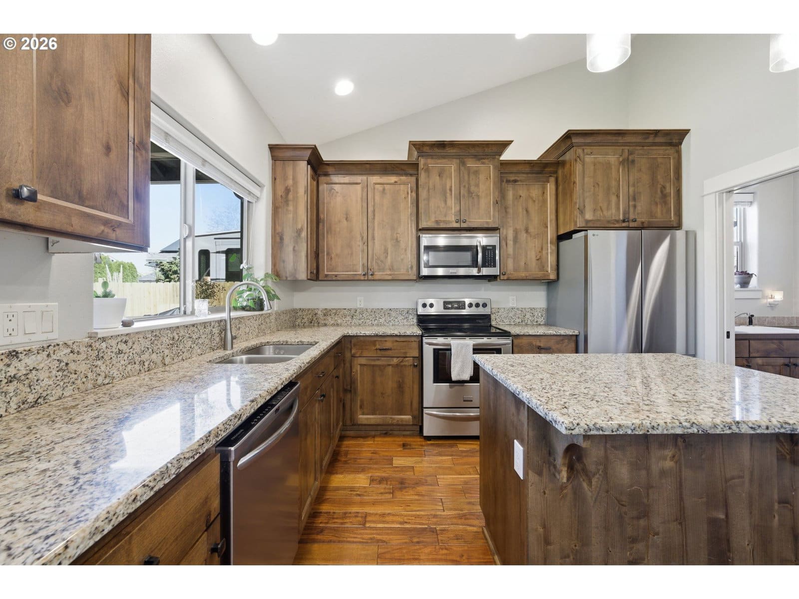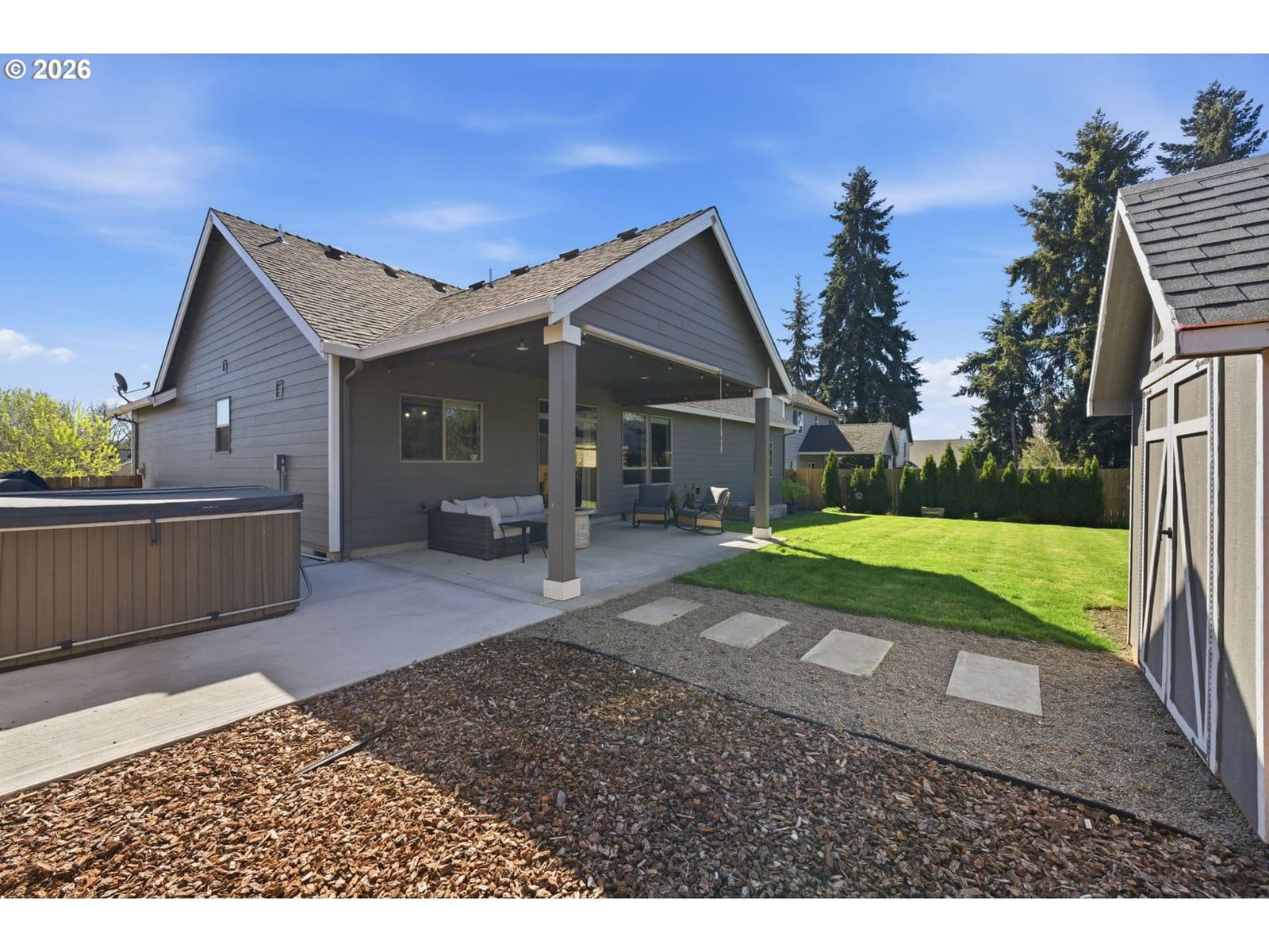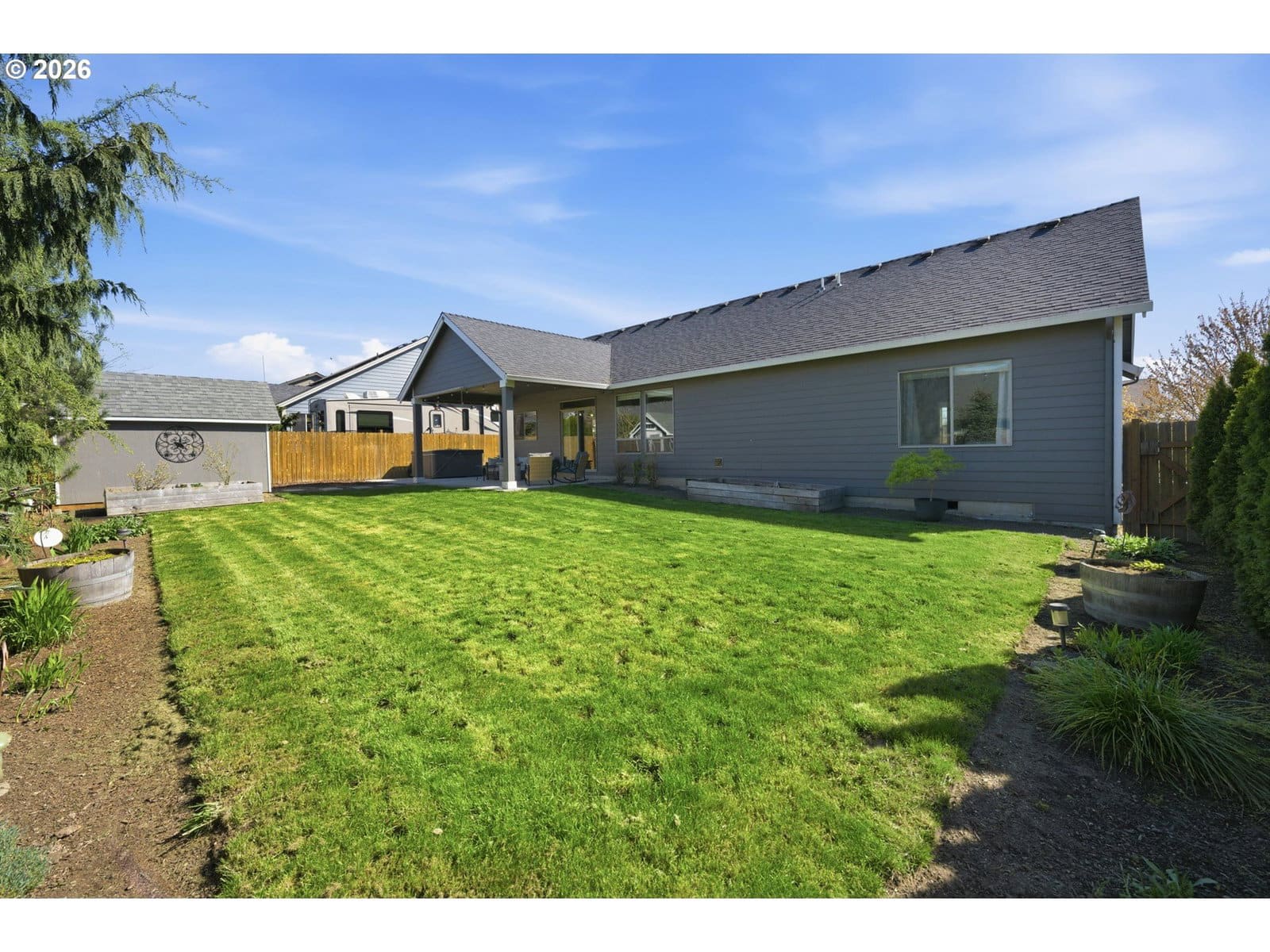 Nestled in the heart of quaint Carlton, this beautifully maintained single-level home on a hard to find 8321sf lot lives larger than its footprint and offers an inviting blend of comfort and style. The great room floor plan is both functional and comfortable - perfect for everyday living, featuring soaring, vaulted ceilings complemented by an abundance of natural light. The recently updated bathrooms add a touch of modern elegance with stunning luxury vinyl tile, upscale countertops and handsome cabinets. The kitchen offers an XL pantry, a good sized island, stainless steel appliances, warm/rich hardwood floors and beautiful countertops. All of the bedrooms are generous in size and are vaulted. An exceptionally spacious fenced backyard has a lot to offer - a roomy covered patio, a freestanding hot, a fenced dog run, a tool shed, a great space for parking of a boat or trailer and mature landscaping. From the moment you arrive, the charming curb appeal sets the tone for what awaits inside. This lovingly cared for home is truly move-in ready and a standout in desirable Carlton.
