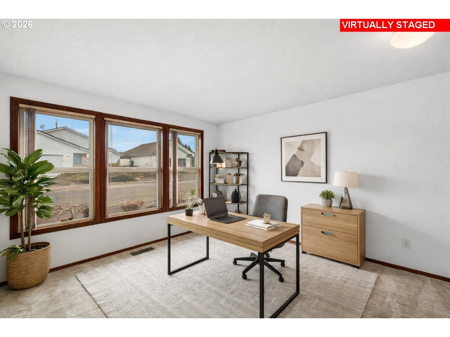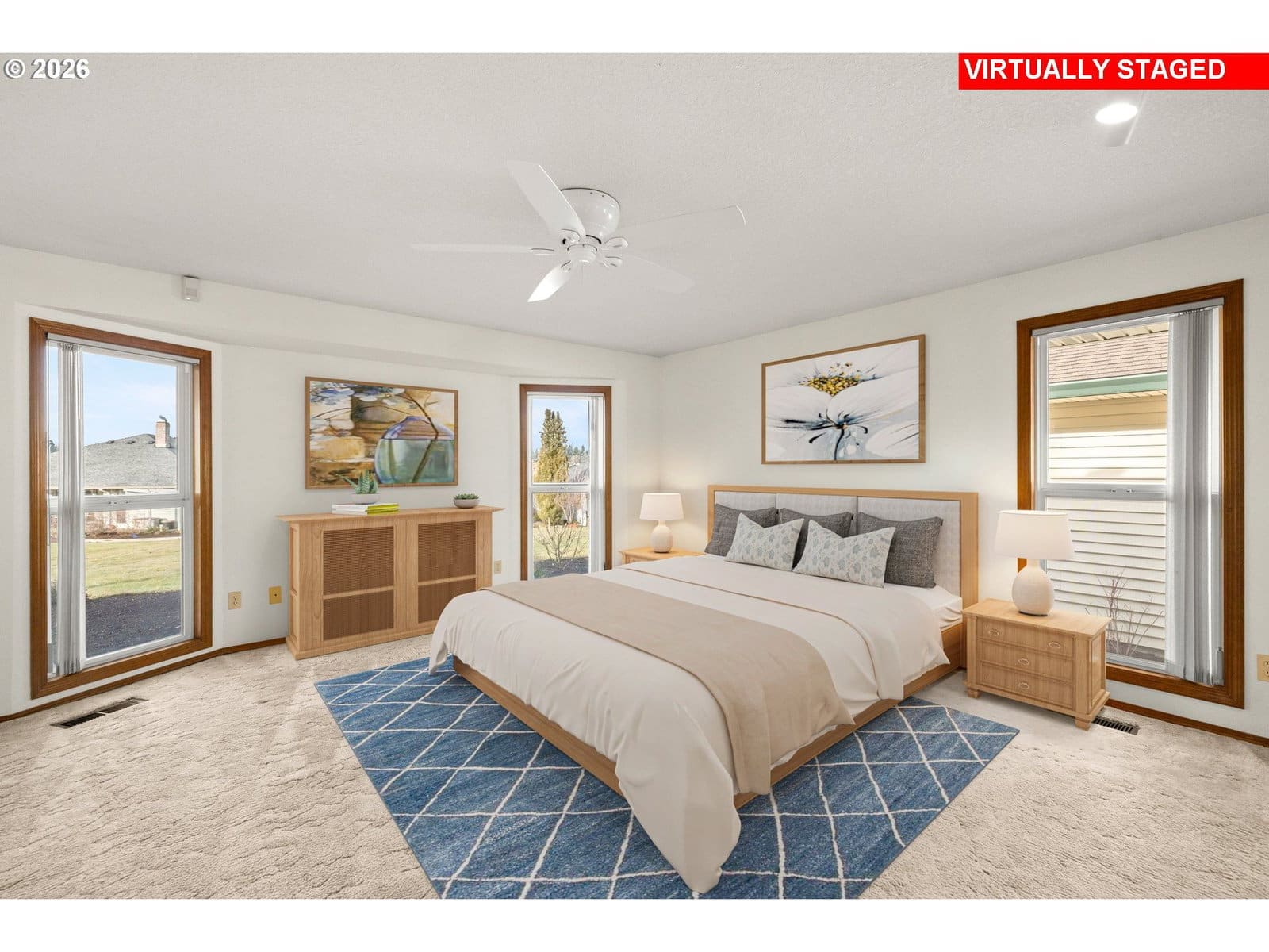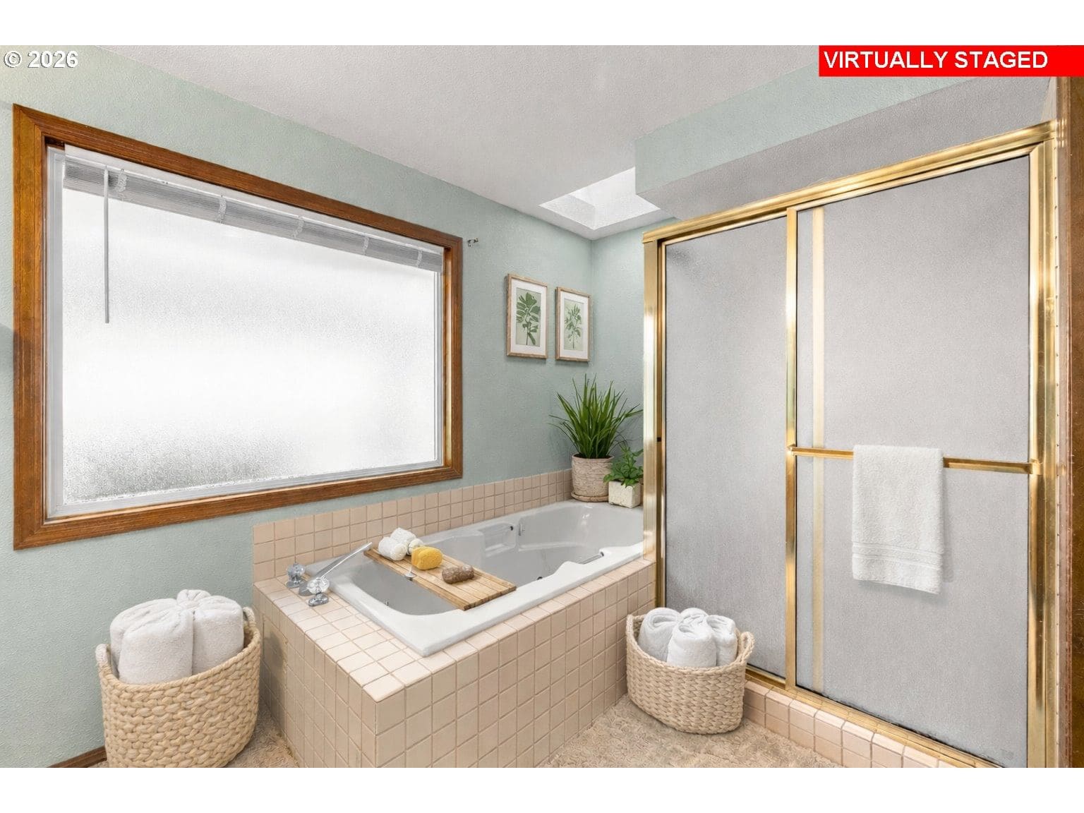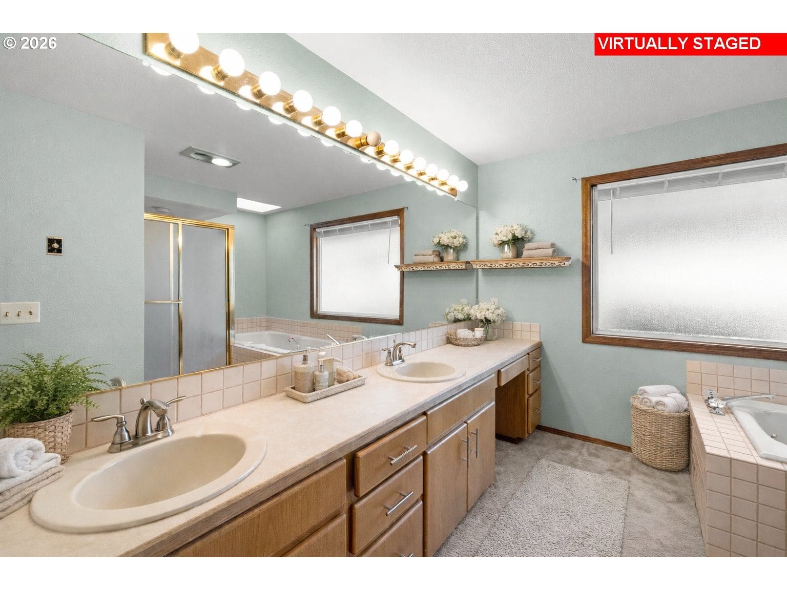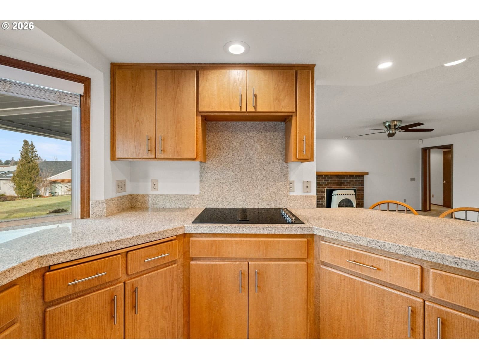 Welcome home to this highly desired 3 bedroom Englewood floor plan with over 2000 sq ft of one-level living in 55+ Summerplace. Gorgeous green space views from the upgraded kitchen, family room and primary bedroom suite. The kitchen includes stainless appliances, granite counters, barstool seating and a dedicated breakfast nook. The kitchen flows seamlessly into the spacious family room, where a walk-out slider leads to a covered patio with peaceful views that will make you smile. The primary suite includes double closets, en-suite bathroom, double sinks, soaking tub and a separate walk-in shower. The thoughtfully designed split-wing layout provides privacy, with the third bedroom easily serving as a guest room or home office. The living room provides entertaining options with a vaulted ceiling and gas fireplace, while the dining room showcases beautiful custom cabinetry. The hallway bath has been upgraded with a custom walk-in shower. Additional amenities include indoor laundry, solar tubes, newer A/C, furnace and roof. Custom built-in storage in the garage. With its convenient one-level layout, this home offers ease of mobility and accessibility, ideal for those seeking practicality and ample space. All this and you are part of the Summerplace community with the active clubhouse and activities. Don’t miss this opportunity! Call now to schedule an appointment. [Home Energy Score = 4. HES Report at https://rpt.greenbuildingregistry.com/hes/OR10107768]