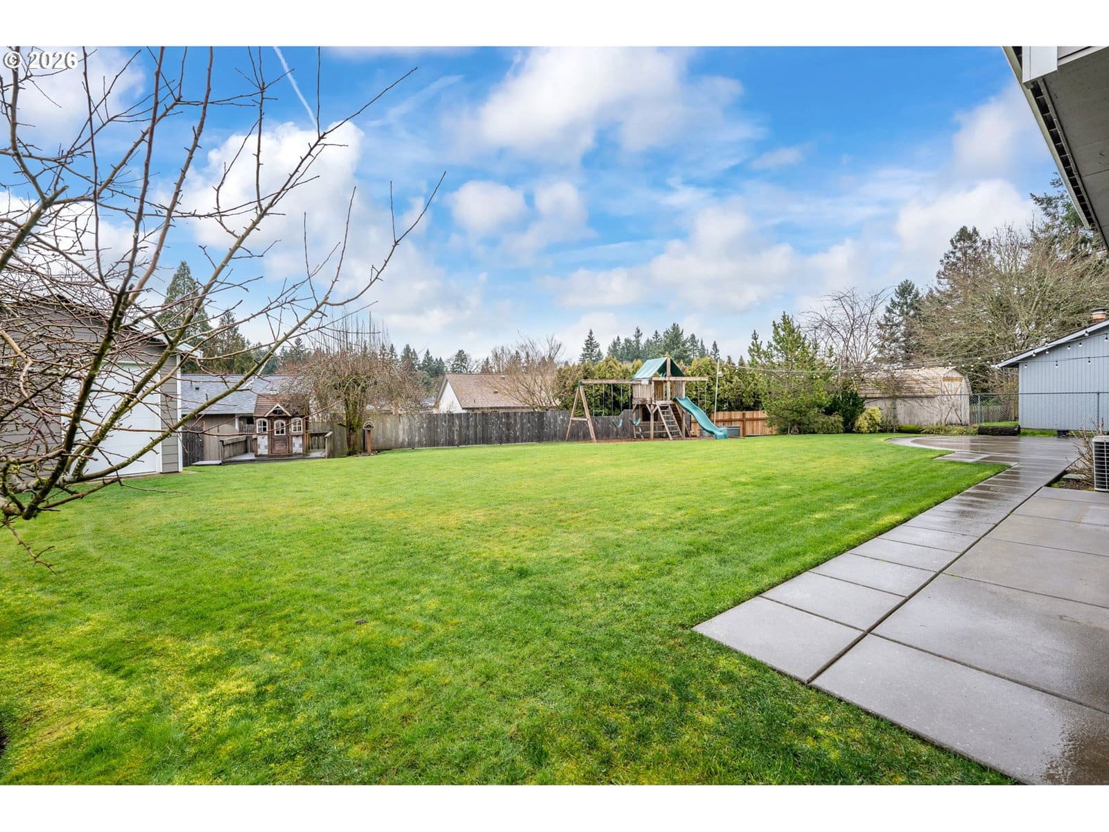 Open Sun 02/22, 1:00-4:00pm* Desirable Tualatin location in a wonderful neighborhood! This move-in ready home sits on a large, level lot with a beautifully maintained backyard perfect for relaxing or entertaining. Recent updates include brand-new carpet, fresh interior paint in the main living areas, a newer roof (2020), newer kitchen appliances, and updated Hardie Plank siding on the front and sides. Many vinyl windows have also been updated. Enjoy year-round comfort with central A/C and forced air gas heat. Hardwood floors enhance the kitchen, dining, and entry areas. The living room welcomes you with vaulted ceilings and a cozy gas fireplace. The kitchen offers generous pantry storage, and the home features good-sized bedrooms with a functional, inviting layout. The spacious primary suite includes a walk-in closet and private bath with step-in shower. A separate laundry room adds convenience. Outside, the stunning backyard boasts a large patio and deck, newer play structure, mature landscaping, and a 12x16 tool shed with concrete pad. Ideally located near schools, parks, shopping, restaurants, and easy I-5 access. No HOA!