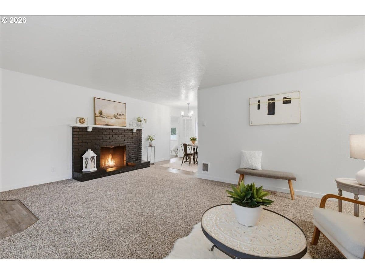 Completely remodeled single-level home offering 1,200 SF of stylish, move-in ready living. Bright and open living room features a classic brick wood-burning fireplace and abundant natural light. Updates include new luxury vinyl plank flooring, new carpet, fresh interior and exterior paint. The spacious remodeled kitchen showcases new stainless appliances, New counters, floating shelves, pantry, Updated bathrooms, Flexible bonus/utility room provides added functionality. Outside enjoy a large fenced yard with a fire pit ideal for entertaining or relaxing, all backing to a peaceful green space for added privacy. RV parking and a quiet dead-end street location just minutes to town! Must see!