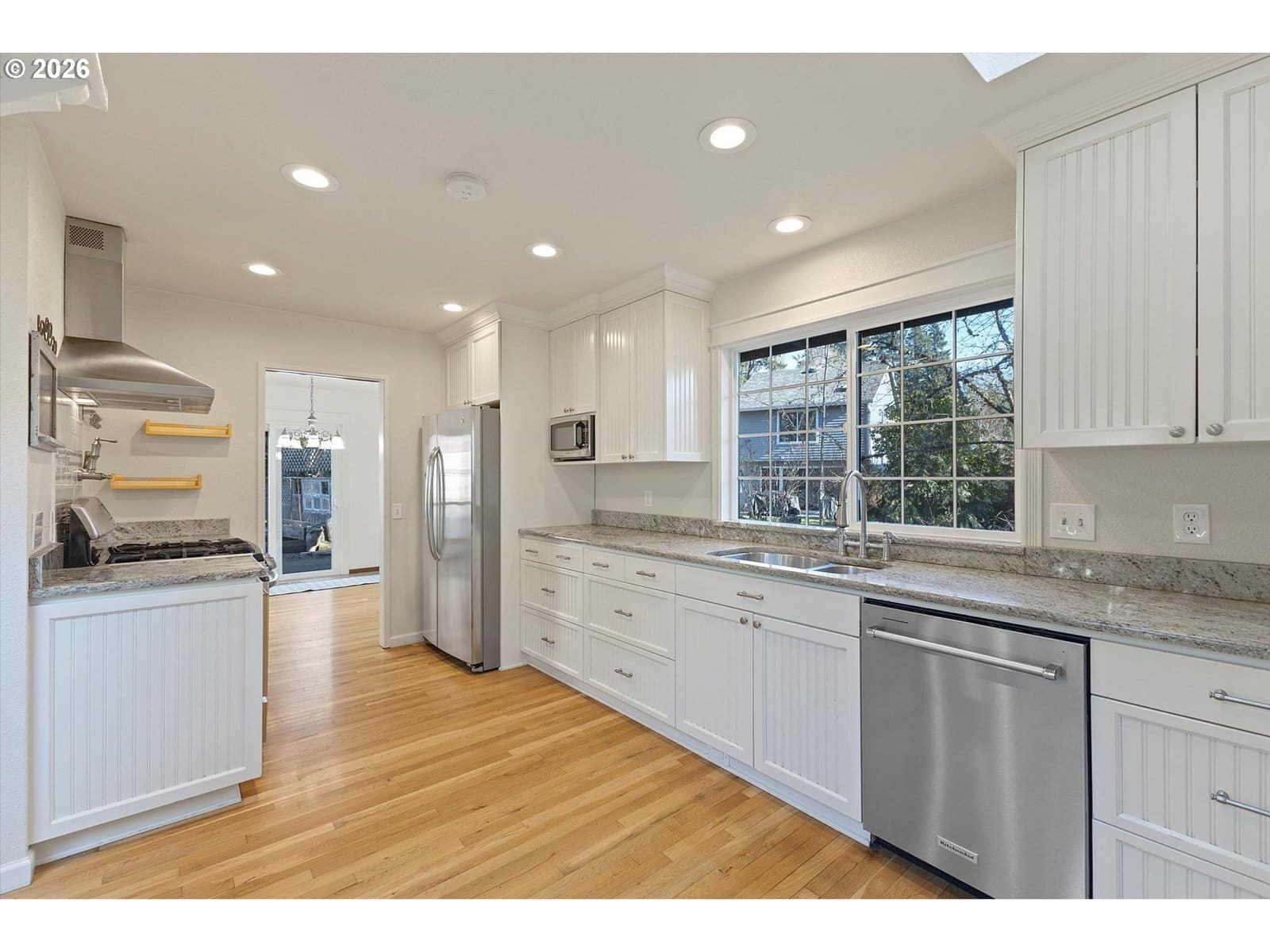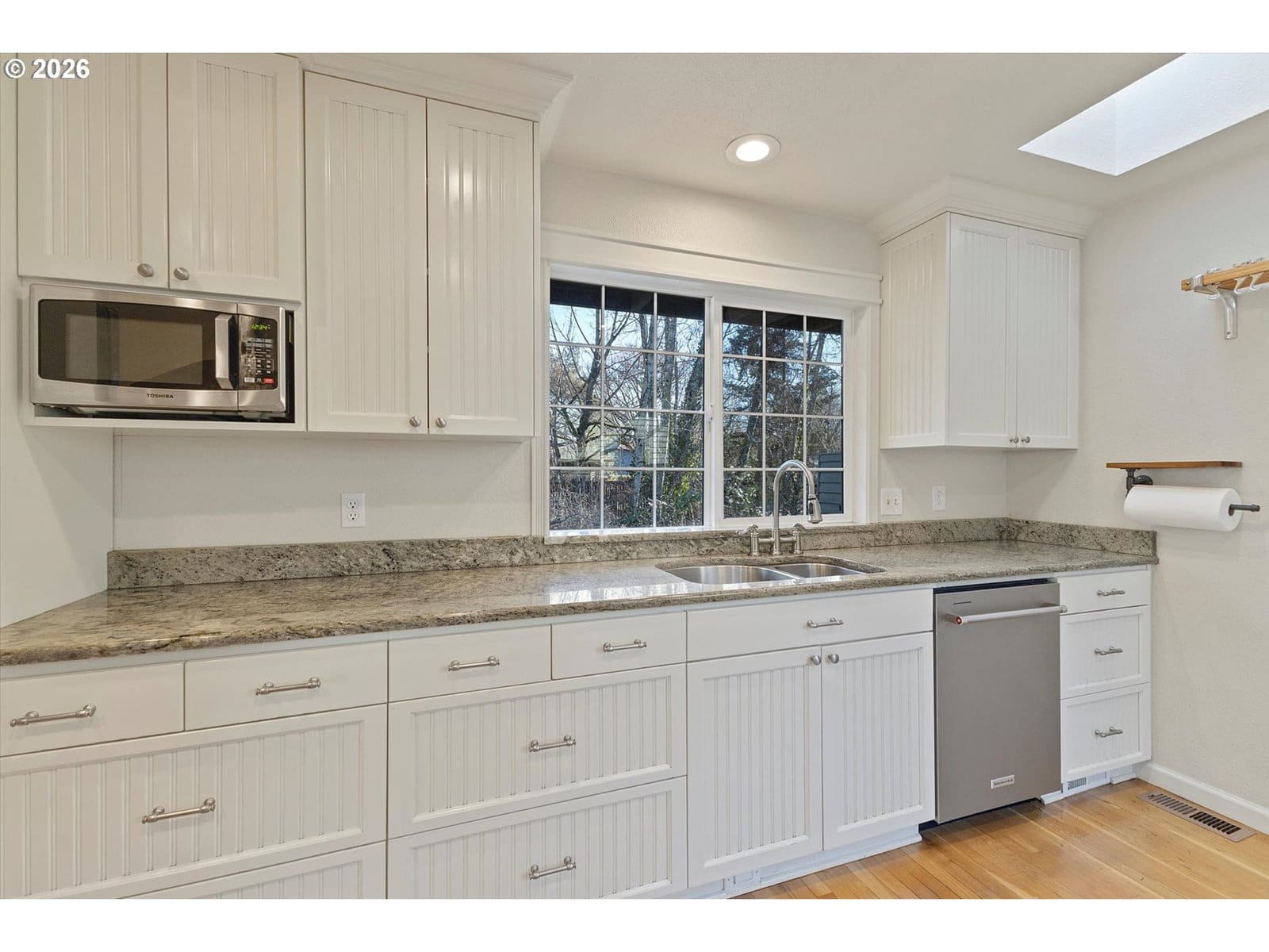 My favorite location in Tigard! Trail to Cook Park, and Tualatin River is right across the street! Cook Park is amazing, 79 acres of trails, boat launch, ball fields, playgrounds, even a trail that goes across river into Tualatin. See video about location. Plus you can walk to school, cafes, Trader Joes, shops and restaurants! House is remodeled with gorgeous kitchen with granite, stainless appliances and gas range, skylight, and hardwood floors! The living room has vaulted ceiling and skylight with fireplace and skylight, dining room has hardwood floor and slider to private backyard with big deck, raised beds and greenspace on side and back plus little creek. Bathrooms are remodeled. This is a wonderful place to live, very quiet and private yet close to everything!!
