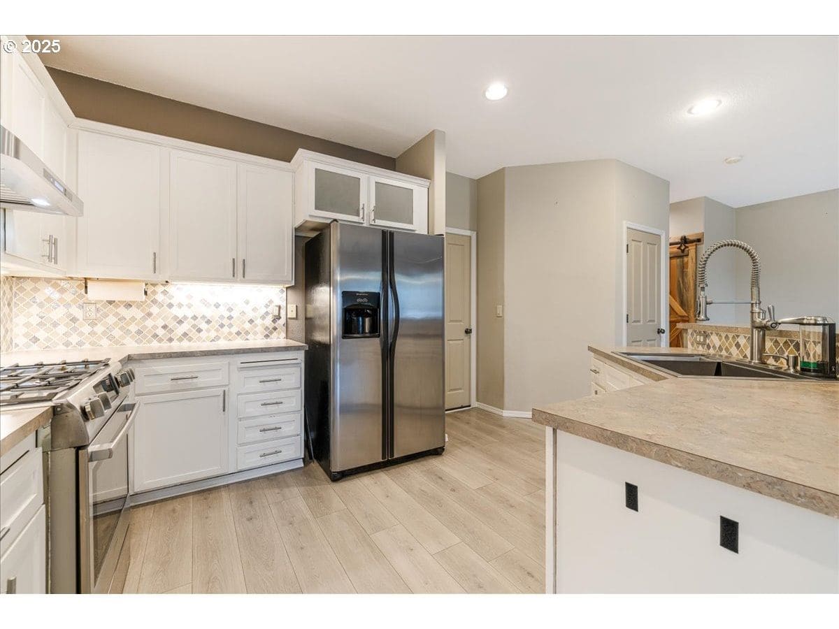 Estate sale with an out-of-state, motivated seller - considering all offers. Darling 4-bedroom, 2.5 bath home! You’ll love the easy flow of this home’s open layout with 9-foot ceilings and laminate floors throughout the main level. The living room has a cozy corner gas fireplace, and the dining area opens to a covered back deck, perfect for year-round grilling or morning coffee. The kitchen offers plenty of workspace with a center island, classic white cabinets, and stainless-steel appliances, including the gas range and dishwasher. A half bath and attached two-car garage complete the main level. Upstairs you'll find four bedrooms, two full baths, and a laundry closet with washer and dryer included. The primary suite feels spacious and bright with vaulted ceilings, dual closets (one walk-in), and a private bath featuring a double-sink vanity and walk-in shower. Outside, the fully fenced backyard and covered deck make it easy to enjoy the outdoors in any season. This one’s move-in ready and ready for it's next chapter. Come take a look!