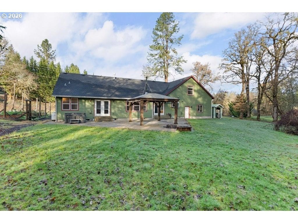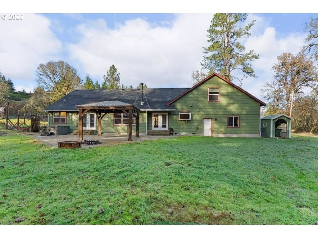Set on just over 1.5 acres with mountain views, this custom 2007 Glide home offers comfort, quality, and a well-designed layout. The main level features three bedrooms and two full bathrooms, including a primary suite with a walk-in closet, private exterior access, and a bathroom with both a tub and shower. Upstairs, a large bonus room with a half bath provides flexible space for an additional bedroom, office, game room, or media space.The main living area features vaulted ceilings, wood floors, and fireplaces that add warmth and character. The kitchen includes granite countertops, tile with in-laid granite, and pantry. Appliances included. Just off of the kitchen, the laundry room with a basin sink leads to the spacious 3-car garage, offering plenty of room for parking, storage, and projects.Outside, enjoy the views and fresh air from the patio and gazebo, gather around the fire pit, or spend time in the garden area. A pole barn adds additional utility for storage or homestead use. RV parking, a central vacuum system, and thoughtful features throughout add to the charm. Shown by appointment only. No drive-bys.