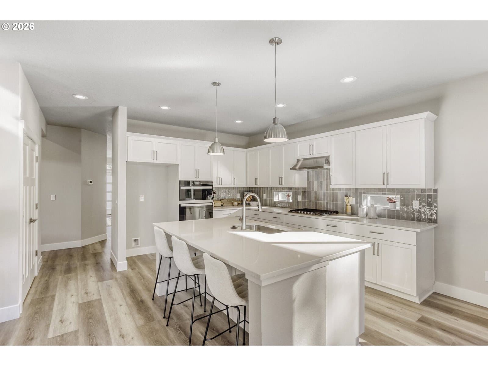 Move in ready new construction! Tucked against a tranquil greenspace, this 4-bedroom, 3 full bath home offers rare natural privacy. Thoughtfully designed with a flexible floorplan, this home delivers modern comfort with timeless appeal. Light pours through expansive windows, framing serene views and creating an easy flow between indoors and out. The open main level is ideal for both everyday living and entertaining, anchored by a beautifully appointed gourmet kitchen with sleek finishes, generous storage and a welcoming connection to the living and dining spaces. A full bedroom and bath on the main level provide flexibility for guests, multigenerational living, or a dedicated home office. Upstairs, the primary suite feels like a private retreat with wooded views, complete with spa-inspired bath and walk-in closet. Two additional bedrooms, a full bath, and a versatile bonus space round out the upper level, offering room to grow, gather, and recharge. Backing to protected greenspace, the backyard becomes a peaceful extension of the home—perfect for morning coffee, evening sunsets and moments of quiet. With new construction peace of mind, energy-efficient features and a coveted Sherwood address, this home invites you to settle into something both beautiful and enduring. Award winning schools, neighborhood trails, community park, minutes to shopping, historic downtown Sherwood and gateway to wine country. Open Sun 1-4pm.