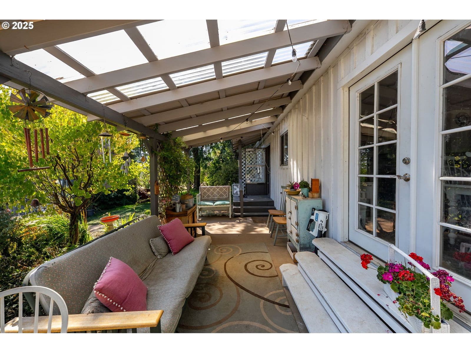 Adorable rambler nestled on a sprawling 6.85-acre property! Step inside to a bright entry leading to the inviting living room with cozy brick-surround fireplace. The dining area with custom wainscoting & French doors opening to the covered patio with garden views. The galley-style kitchen provides ample cabinetry, bar seating, & window overlooking the backyard. Home offers 3 bedrooms & 1.75 baths, blending comfort & function. Outside, enjoy a covered patio, lush gardens, & plenty of room for RV parking. Equestrian-friendly with barn, outbuildings, & open space—perfect for your horses, hobbies, or farm life! Creek bordering back property line with water right access for irrigation & old spring with pump on the property to access, in addition to the private well. Check out the virtual tour, or call your favorite agent to schedule a showing!