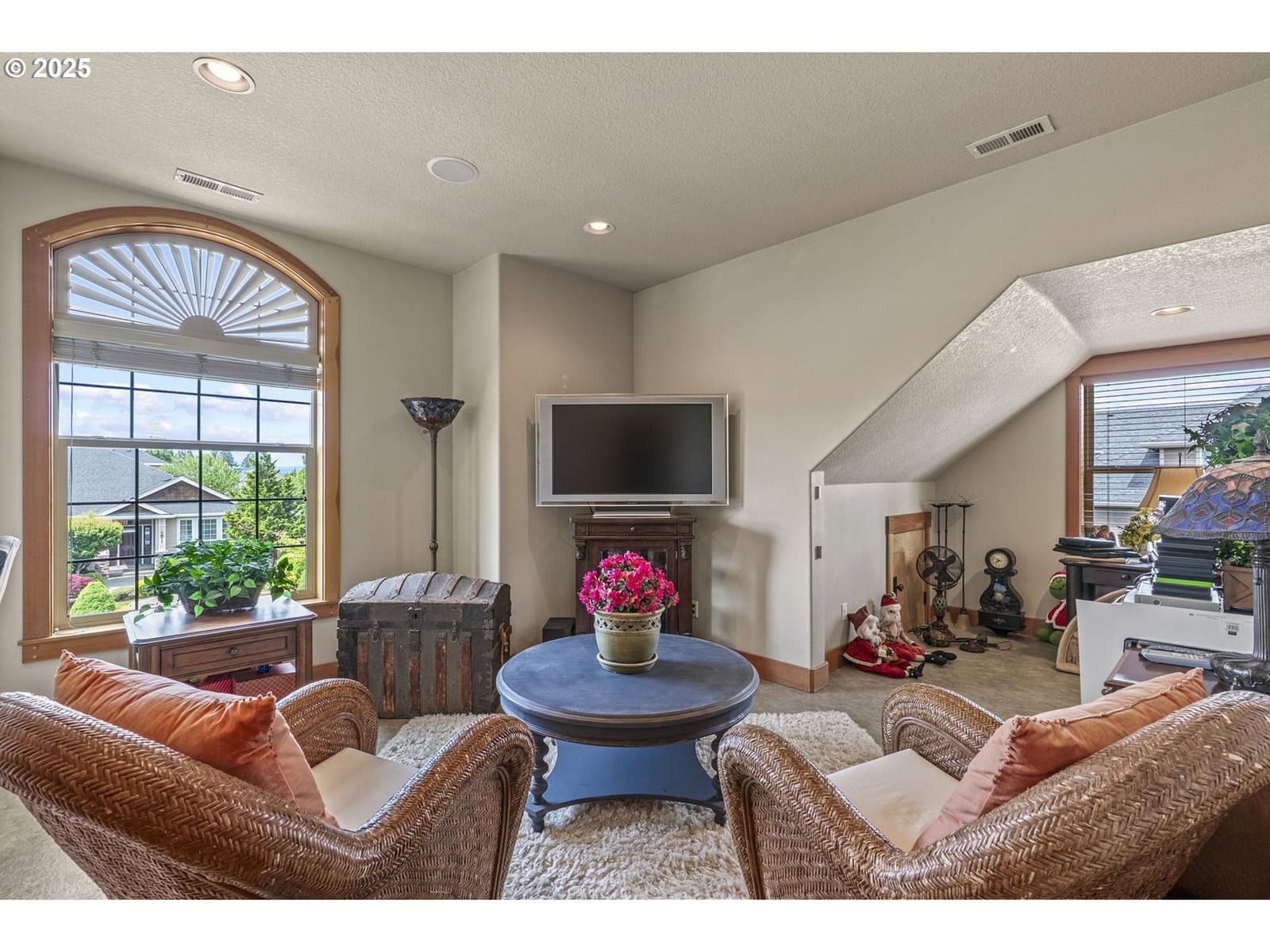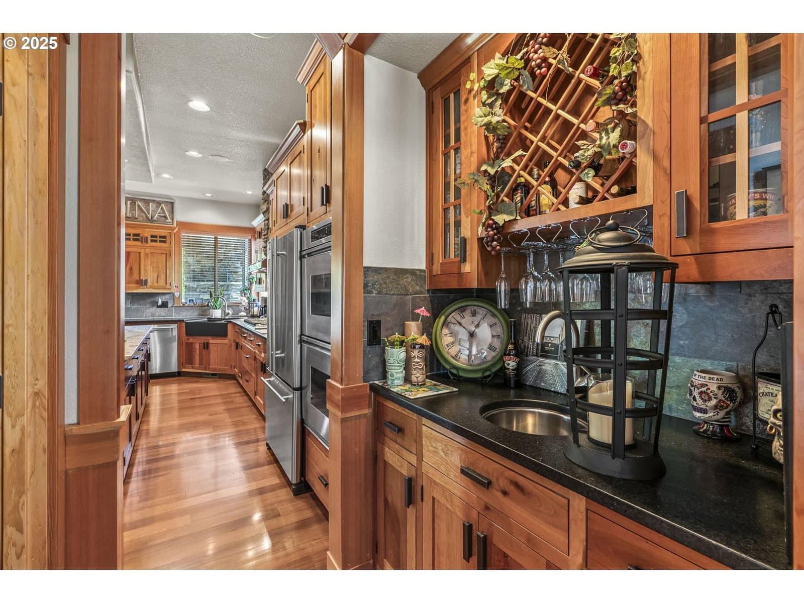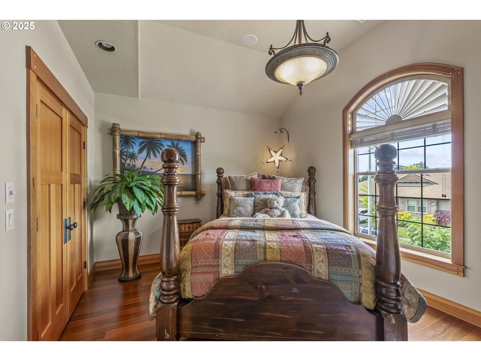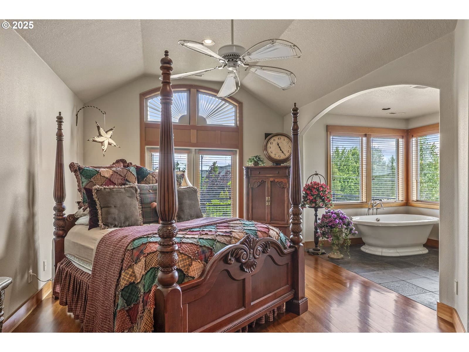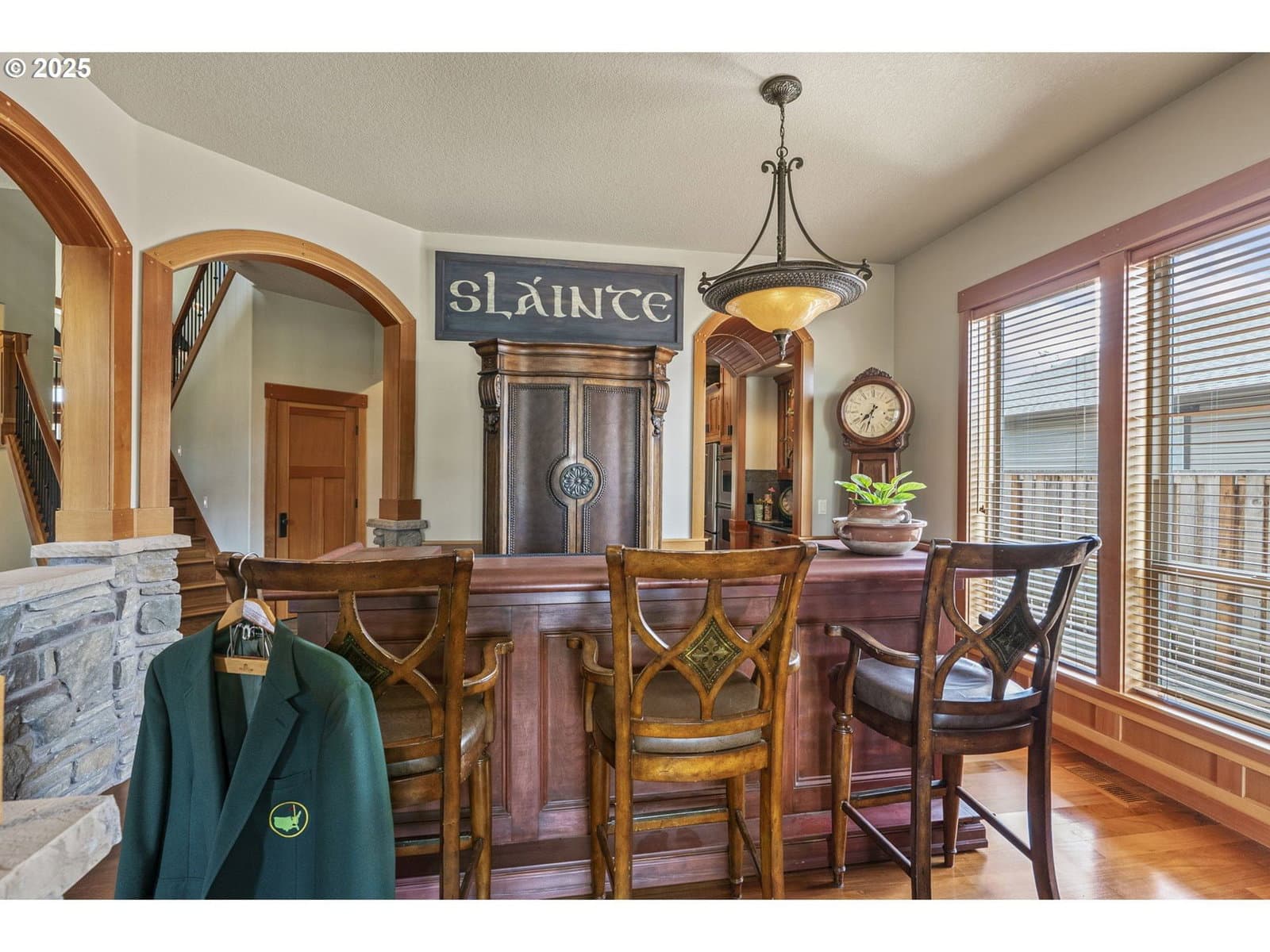 From the moment you drive up, you'll find this gorgeous, quality built, unique home w/unexpected charm & special details that is like no other in the neighborhood. Luxurious & rich w/soaring ceilings, beautiful fixtures, 2 fireplaces, stone walls, wood floors, iron railing, arched details & grand wood beams! Open concept yet large, defined spaces. Designer kitchen w/honed granite, butler's pantry, walk-in pantry, stone workstation & hood surround, farm sink, double ovens & pot filler. Spacious primary w/vaults, free-standing stove, private balcony, custom closet, walk-in shower, soaking tub w/Mt St Helens view! Deluxe oversized garage, stunning landscaping w/concrete walkways, in-ground hot tub/spa, outdoor kitchen, grill & 3rd fireplace!