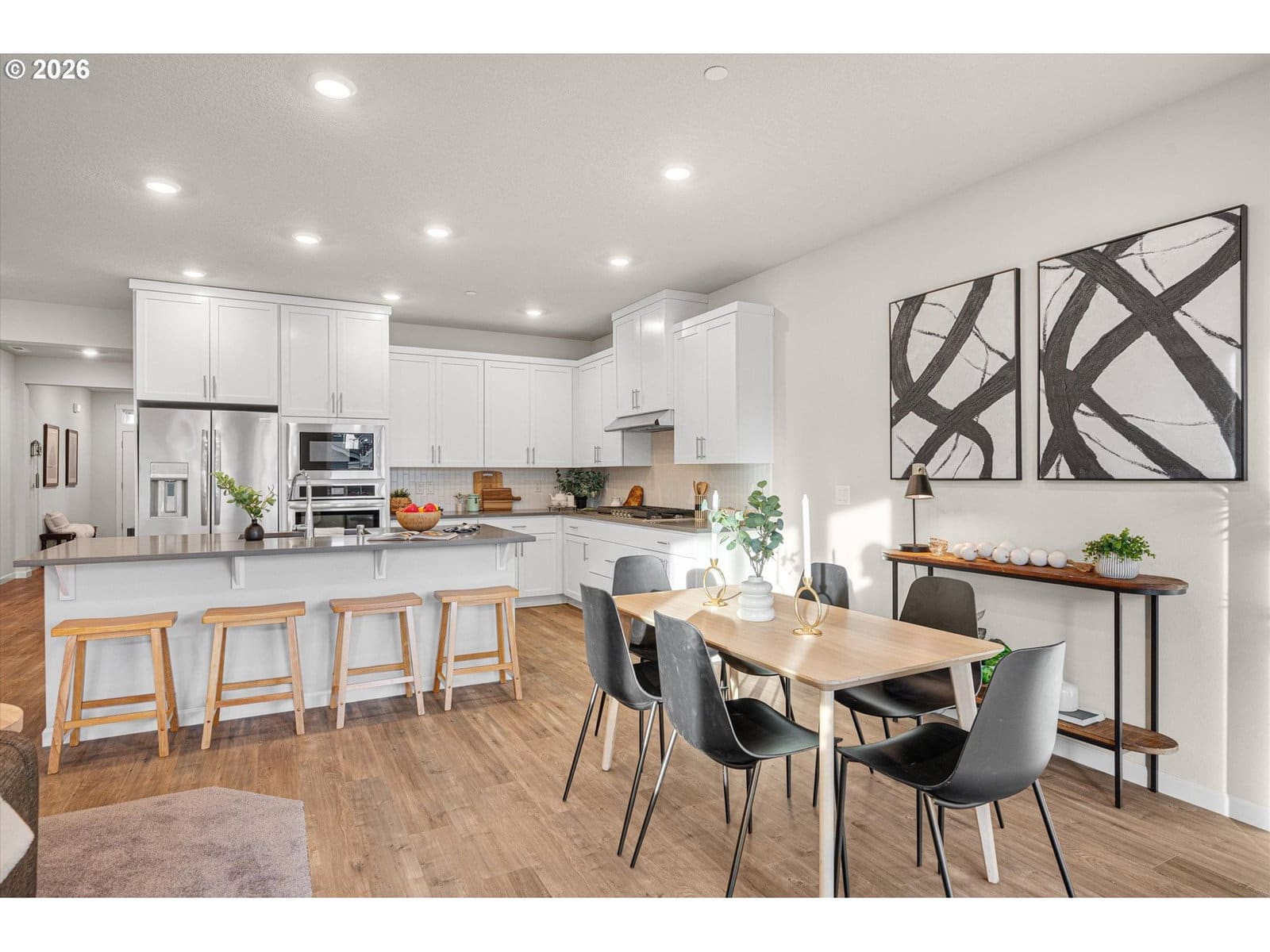 Impeccable in Ridgefield! This 4-bedroom, 2-bathroom single-story has been meticulously maintained, only lightly lived-in for 13 months, and is move-in ready. The open floor-plan includes a gorgeous kitchen with stainless steel appliances and a large island, perfect for entertaining. Wide hall and bedroom locations that offer flexibility and privacy for all. Primary bedroom has a huge ensuite bathroom complete with a soaking tub and large walk-in closet. 3-car garage, covered patio, and a fenced yard with sprinkler system and large western facing space just waiting for a garden to be planted! Premium location close to the community basketball court, across the street from the playground, steps to walking trails, and adjacent to the community green space, providing ample room for outdoor activities. Enjoy beautiful views of the wooded area from the office windows. Easy access to downtown Ridgefield, highly rated Ridgefield schools, Ridgefield Wildlife Refuge, shops, restaurants, In-N-Out! :), and I-5!