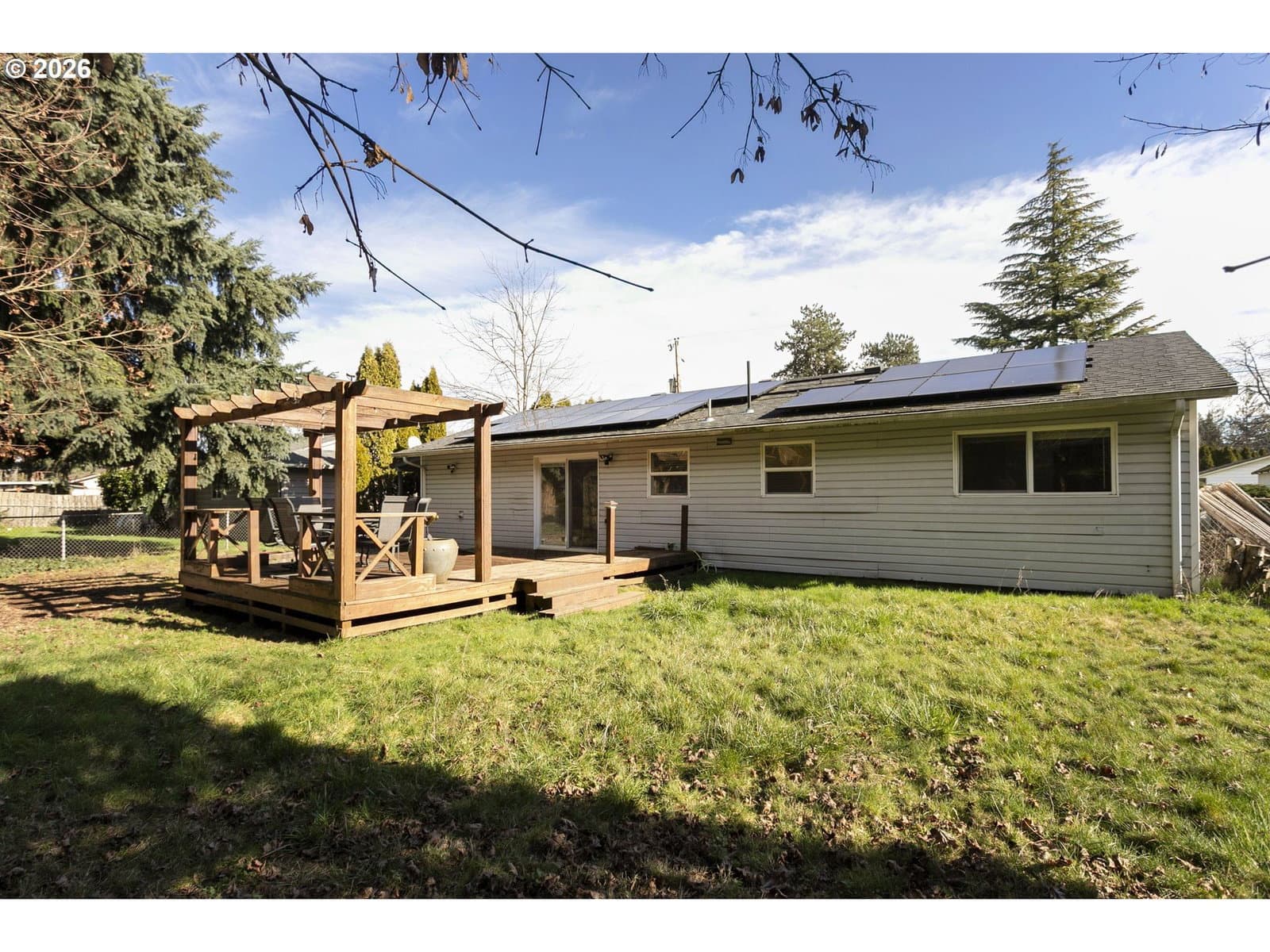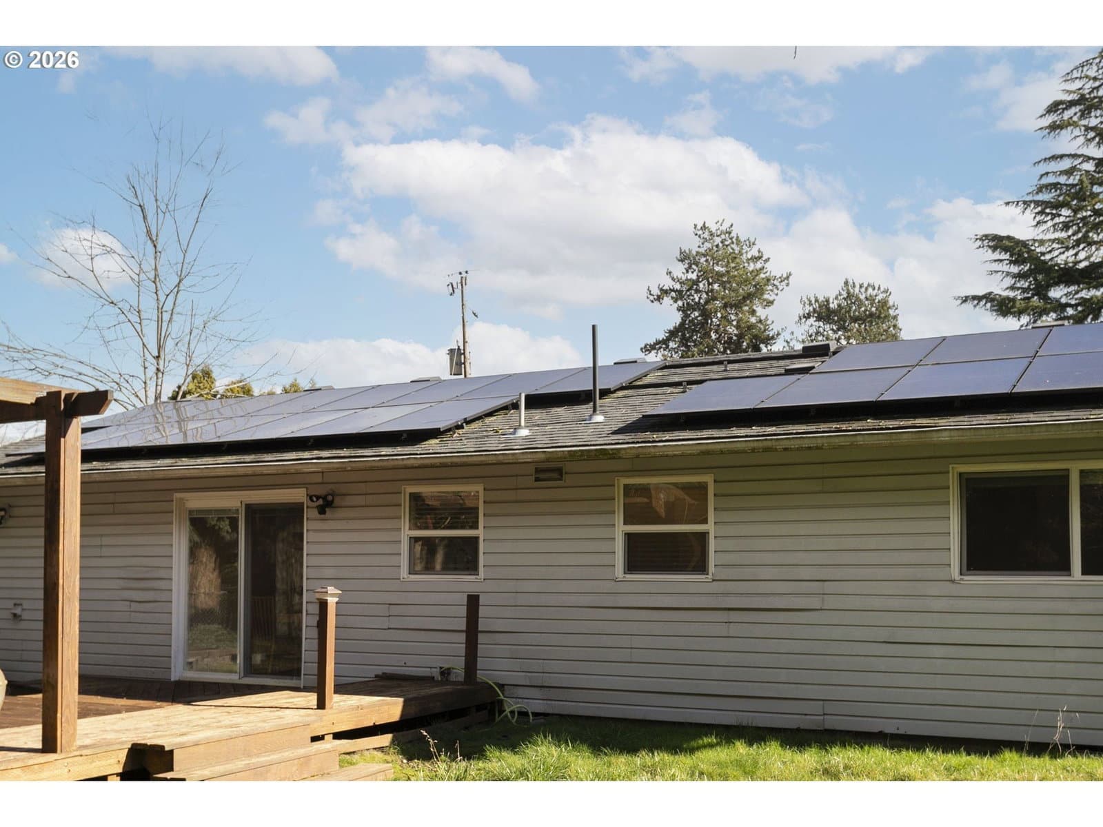 Everything excellent here!! Large yard completely fenced with out door deck, out building and covered side area for additional storage. The recently added solar panels costing over 35,000 keep your utilities at near half of what normal cost of electrical bill is even with a electric car. A newer kitchen remodel,A/C unit,Furnace,panel box, roof,water heater and pristine wood floors add to the incredible charm of this warm and inviting home.All newer plumbing and rewiring. Garage has been finished with epoxy floors, sheet-rock, paint, trim, white cabinets and counter space. It adds to additional living space if needed. A great opportunity to move in and enjoy!!