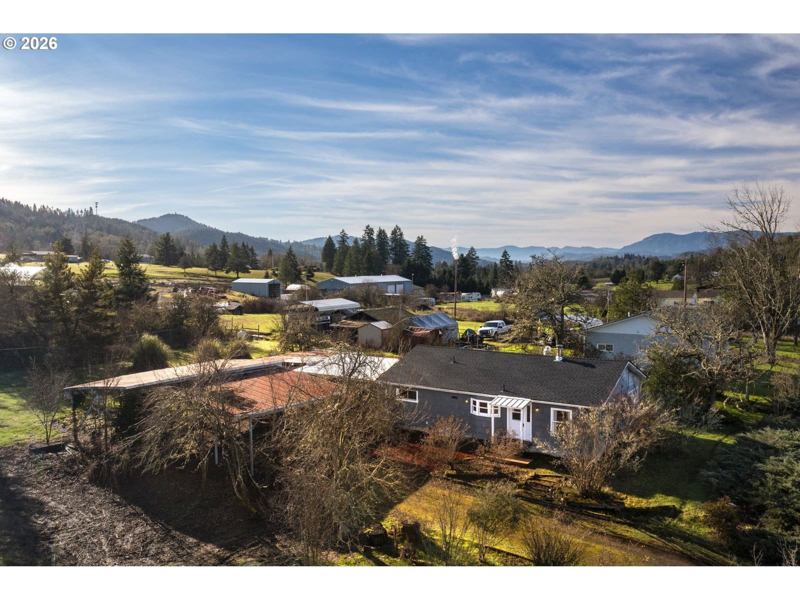 Enjoy peaceful country living on this charming 1-acre property located on a quiet street with mountain views in the distance. This property is perfect for a hobby farm or to just enjoy nature with deer and turkeys visiting daily. The home features 2 bedrooms and 1 bathroom with a spacious living and dining room combination. Hardwood floors add warmth and character, while a wood stove creates a cozy atmosphere. An energy-efficient mini-split system provides year-round heating and cooling. The large kitchen offers ample space with all the comforts of a cook’s kitchen – double ovens, dishwasher, lots of counter space, appliance garage, lazy susan, etc. The home is complemented by multiple built-in features throughout. Major updates include a new 50-year roof with a transferable 10-year warranty and a standard septic system installed in 2017, giving buyers long-term peace of mind. Large carports, for covered parking and storage for toys or animals, a tool room, a storage room, and a covered outdoor entertaining/work area extend the living space and make the most of the quiet, scenic setting. This property has been owned by the same family since 1991 and has a fantastic little pasture that can hold 1 horse, a cow, goats, or just let the deer keep using it and enjoy the peace and beauty of it all. Plenty of room to build additional outbuildings -a large shop, garage, and barn (or all of them!), adding even more potential. If all of this wasn’t enough, enjoy the benefits of low property taxes at just $1,363.61 per year and a well. Conveniently located just minutes from Sutherlin and downtown Oakland, Oregon – true American small towns with antique shops, restaurants and local stores - and 3 miles to I-5, this property offers the perfect balance of rural living with easy access to town amenities. Ideal as a starter home with land, hobby farm, or simply a peaceful retreat to enjoy nature while staying close to everything. Move-in ready and priced to sell so don’t miss out.