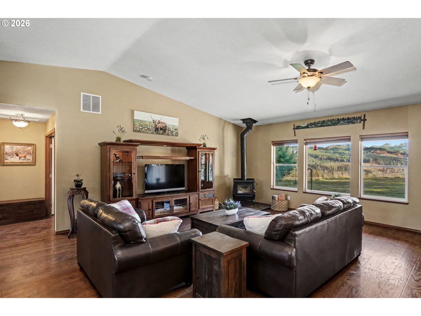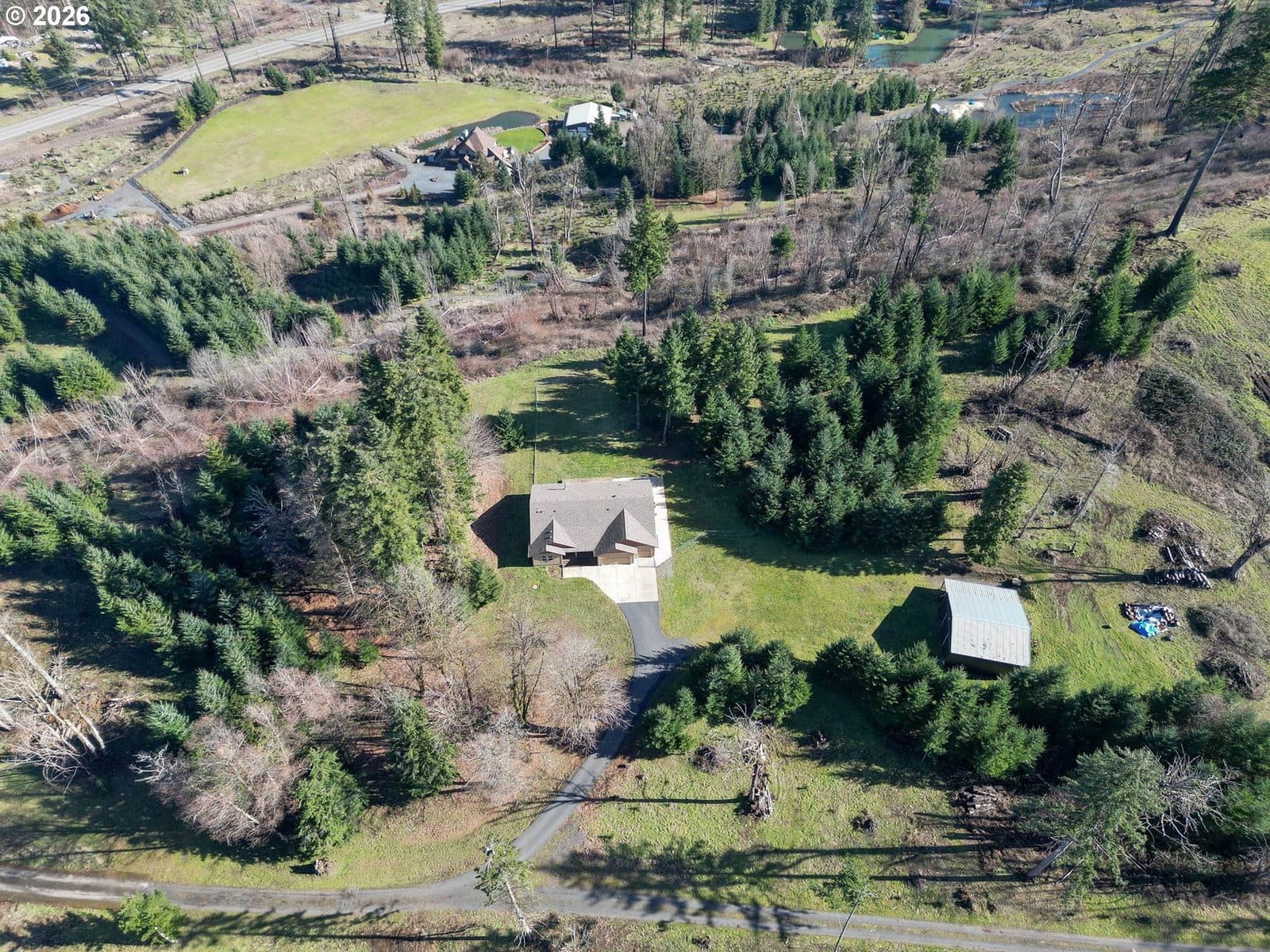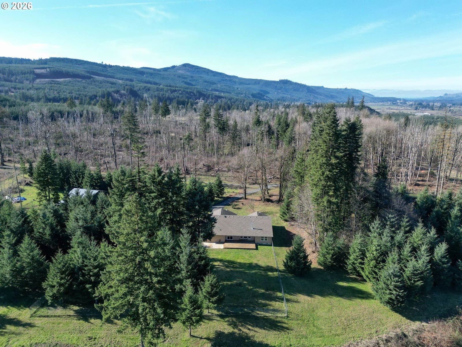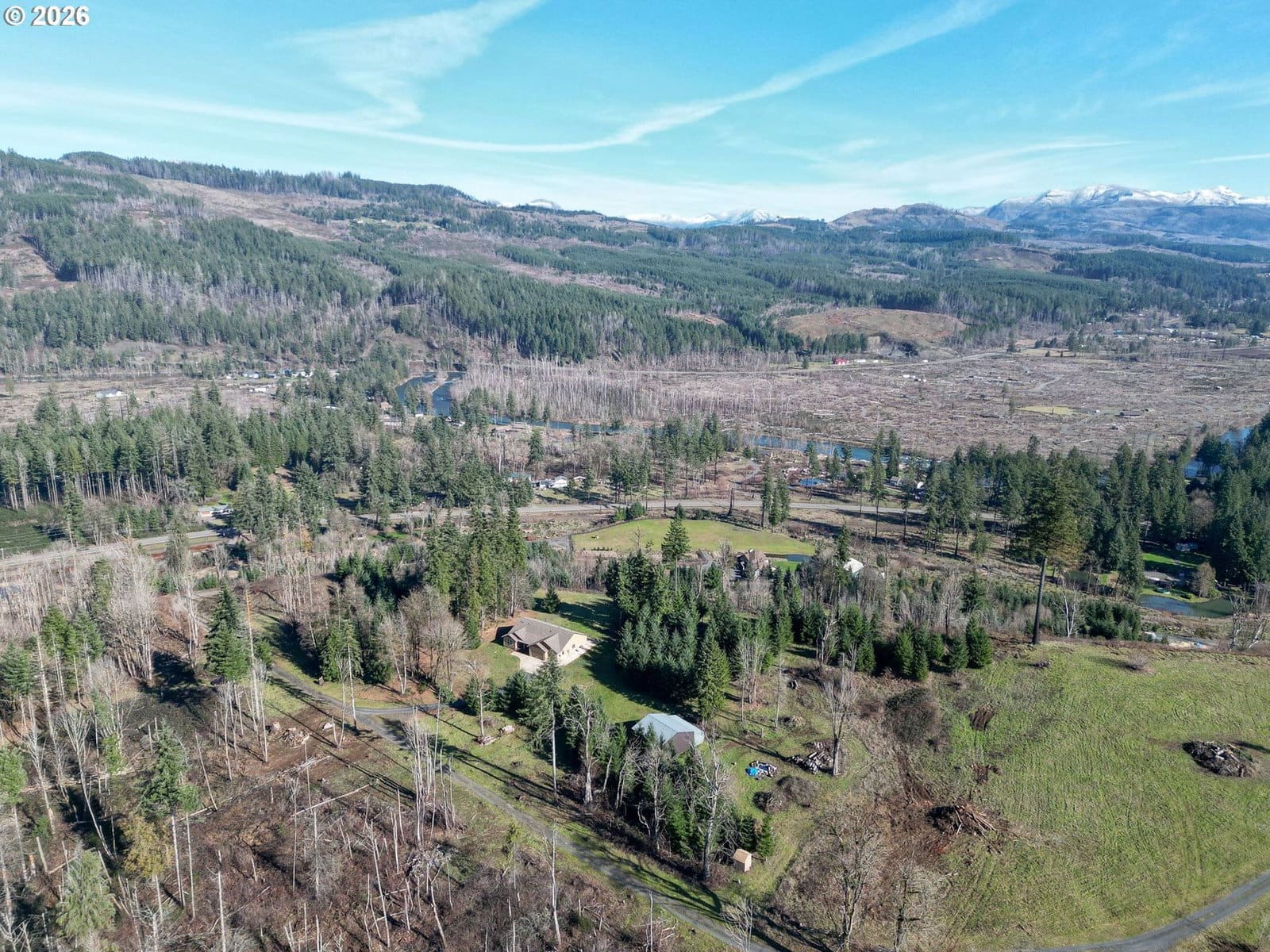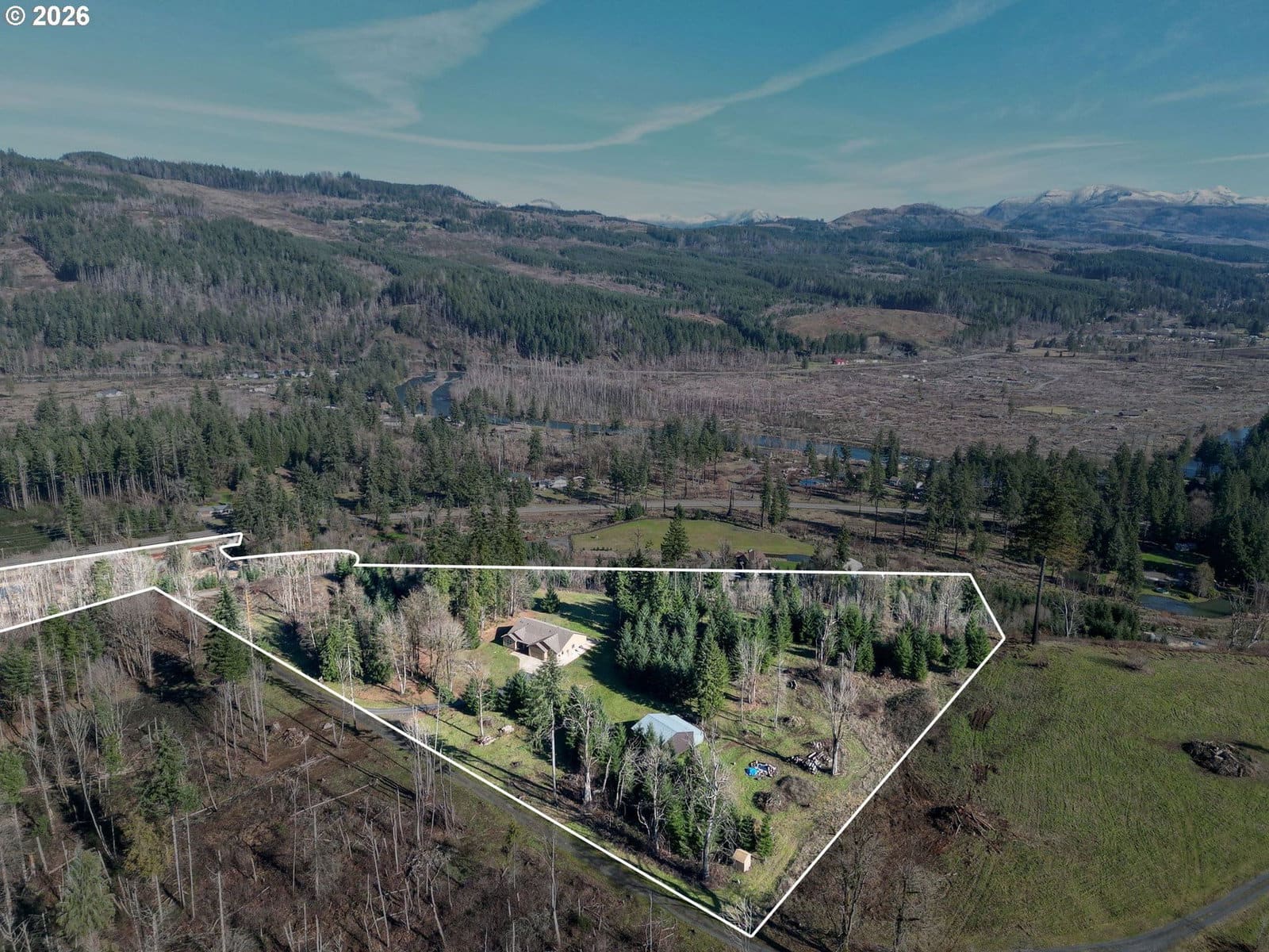 Perched on a private 22 acre hilltop, this wonderful retreat delivers big views, wide open spaces & total seclusion! Views up to the mtns & down to the river! Open great room & flexible floorplan w/3 BD's + office. Kitchen w/large eating bar & SS. Eng wood floors. Fenced backyard for dogs or kids. Well-built 36x36 shop w/loft & 6' concrete floor plus 12x36 lean-to; ideal for RV, toys or projects. Good for timber ground or clear some area for pasture/animals. A rare blend of privacy, scenery & versatility!