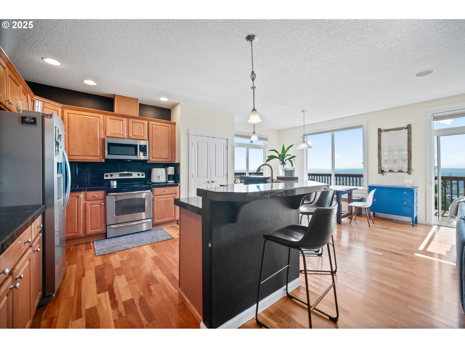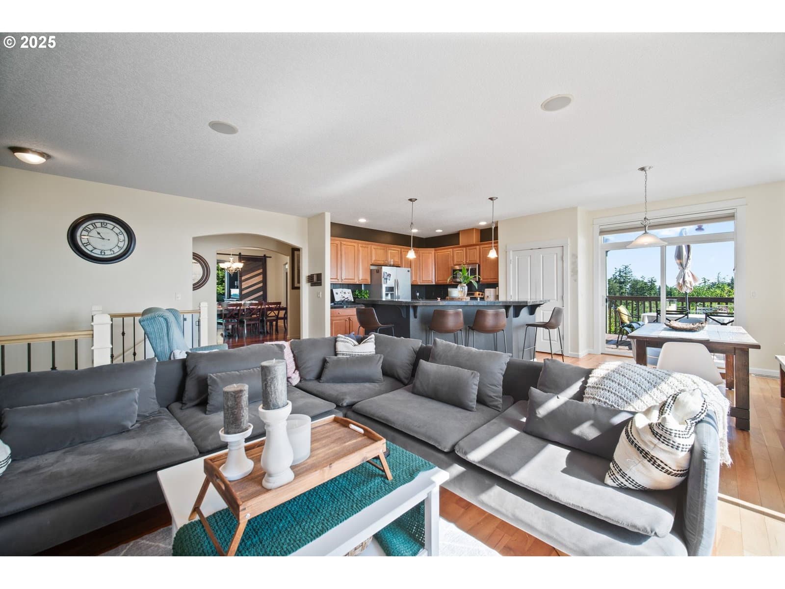 Space and sweeping views! This spacious home offers one level living plus a large daylight basement. At the end of a private gated road, you'll find incredible views of the Columbia River. Enjoy them from your deck. Hardwood floors on the main in an open concept with vaulted ceilings. Granite tile countertops, stainless appliances, pantry. Great for entertaining with formal and informal living and dining spaces. Three bedrooms on main floor including large primary suite. Lower level includes a full bath and has flexible space for 4th bedroom. Pool table stays! Attached three car garage plus extra parking outside. Approximately 2 acres with chicken coup and raised bed garden space. Seller offering a carpet credit for your fresh start. Come see what life on Green Mountain offers!