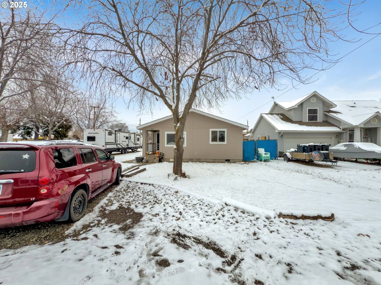 Welcome to this charming double-wide manufactured home that perfectly balances comfort with practical living. This well-maintained home offers three bedrooms and two bathrooms across 1,462 square feet of thoughtfully designed space. The design of this home maximizes every square foot efficiently, with vaulted ceilings in the main living space creating an open feel that belies its compact footprint. Modern amenities blend seamlessly with practical features, resulting in a home that works as hard as you do. The primary bedroom provides a private sanctuary, while the two additional bedrooms offer flexibility for family members, guests, or a home office setup. What truly sets this property apart is the impressive parking. And, the detached double car garage provides secure storage for vehicles, tools, or hobbies. Location plays a key role in this home's appeal, sitting just one block from Churchill School, one of Eastern Oregon’s premier destinations for arts, lodging and live music. Whether you're a first-time buyer seeking affordability without compromise, a growing family needing space and convenience, or someone looking to downsize without sacrificing comfort, this property delivers on multiple fronts. The combination of solid construction, prime location, and ample parking creates an opportunity that's both practical and appealing.