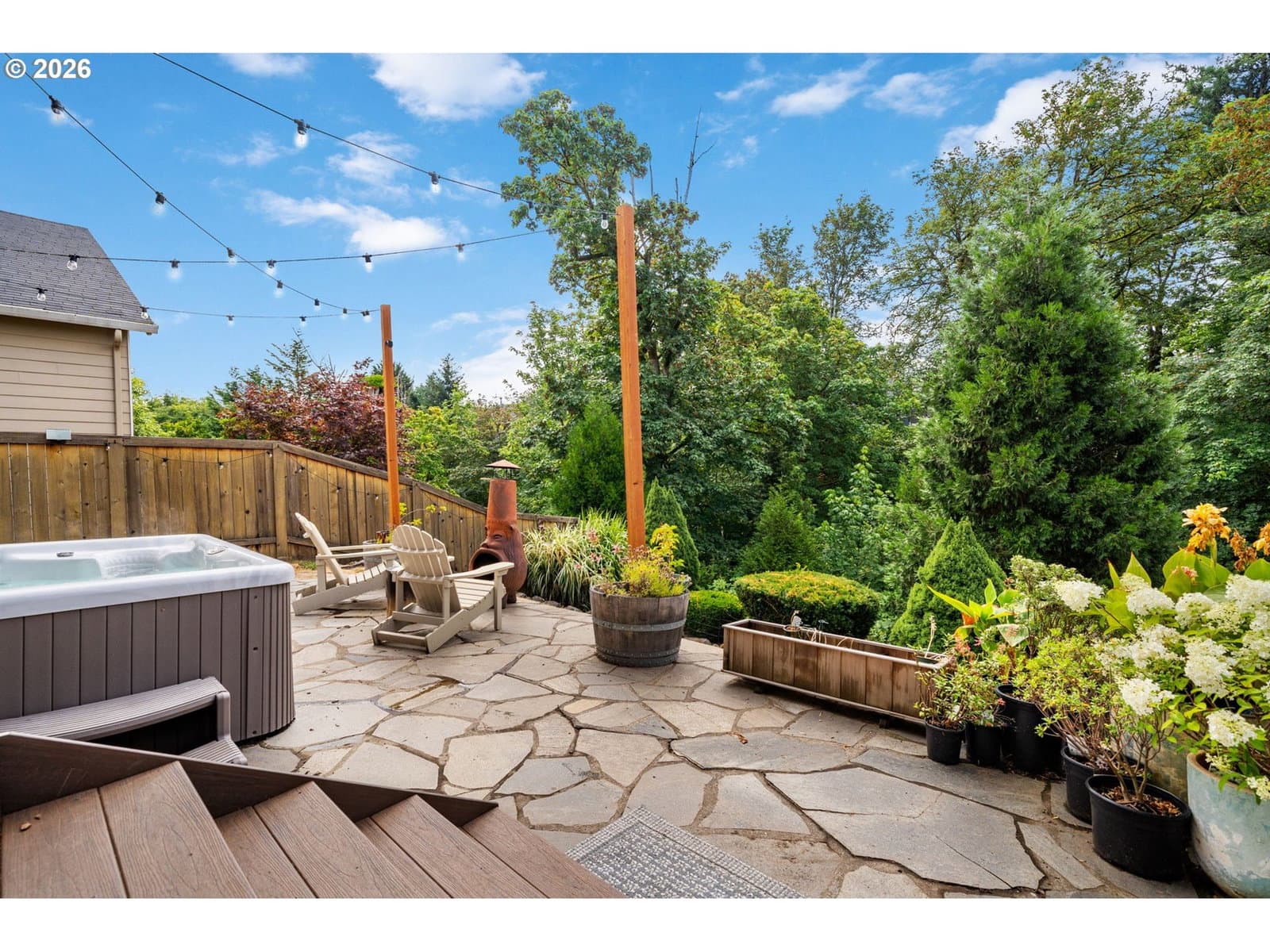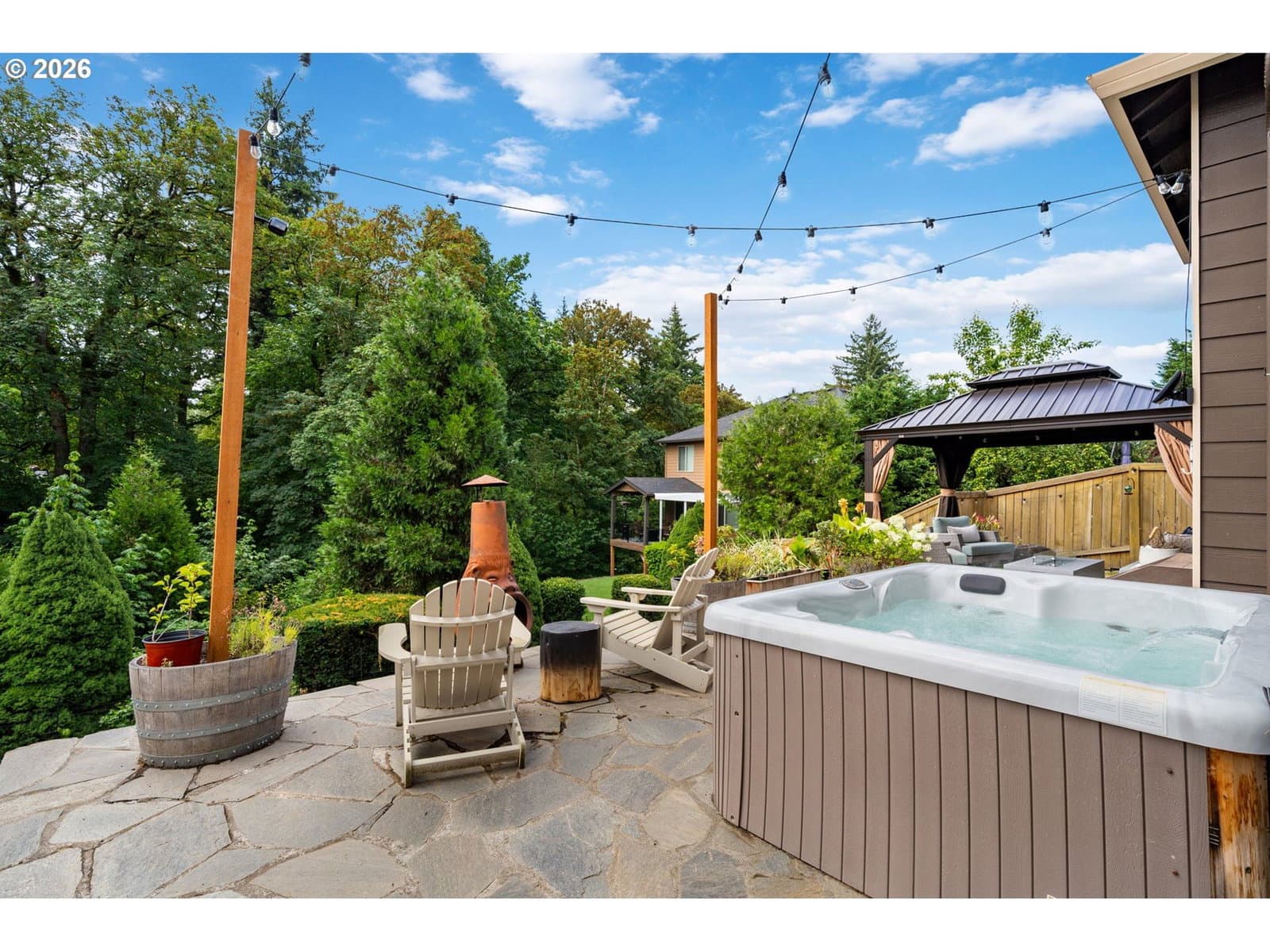 Welcome to Deer Creek! Greeted by abundant natural light, fresh interior paint throughout, updated lighting and kitchen cabinetry, laminate flooring throughout the main floor, this home is nothing short of warm and welcoming. The floor plan is open and flowy, yet provides formal living and dining spaces that open to the kitchen and the large back family room with cozy gas fireplace. 4 bedrooms plus a spacious upstairs bonus room provide plenty of space for everyone, while backing to a beautiful and private, woodsy green space. The primary suite takes full advantage of these views, and also features laminate wood flooring, walk-in closet, soaking tub, double sinks and walk-in shower. The backyard oasis includes a covered gazebo, hot tub and views that must be enjoyed with your morning cup of coffee in hand or by the fire pit in the evening. The location could not be more convenient - 1/2 mile to Prune Hill Elementary, 5 mins to the shopping and restaurants off 192nd, and a 4 minute hop to Hwy-14. New roof in 2022, new tankless water heater in 2023. 2 car garage with EV charger. One year home warranty included. Coveted Camas School district, serene green space, and 14 mins to PDX airport.