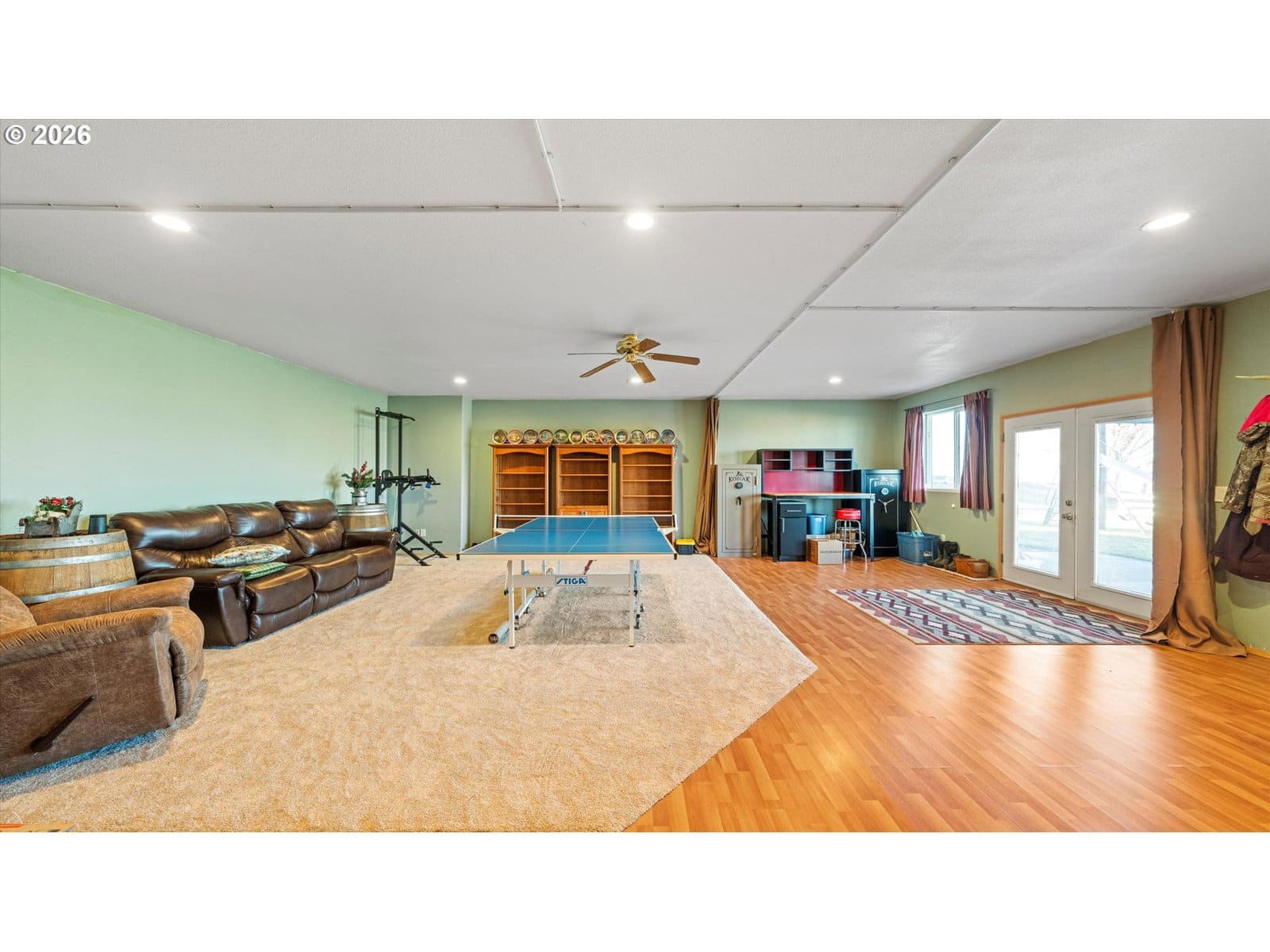 Welcome to your very own homestead dream on 2 acres perfectly set up for animals, hobbies, and wide-open living. This 3,000+ sq ft home offers main level living, including the laundry room, with an open-concept layout connecting the living room, kitchen, and dining area. Enjoy the charming built-in kitchen nook with bench seating and abundant storage throughout the home and property.Downstairs, the daylight basement provides a massive open space ideal for a recreation room, additional living area, home gym, media room, or multi-generational setup. The utility/water system and hot water tank are located in a spacious dedicated room. Step outside to the walk-out concrete patio and a beautiful yard with a great above-ground pool setup.Outside is where this property truly shines bring your animals and your vision! You’ll love the barn with multiple stalls, chicken coop, and a designated hay storage area. The impressive 48’x36’ shop with double overhead doors provides endless space for parking, storage, and projects. Pasture water lines have been updated, making the property even more functional for livestock and outdoor use.The garden area is ready for spring and the future planting season, and you’ll also enjoy a small orchard perfect for anyone wanting space to grow and live more self sustainably. Unwind on the main level deck in the summertime ideal for entertaining, BBQs, and enjoying those beautiful sunsets.This property is truly set up for your own homestead lifestyle with room inside and out to grow—come see it today!