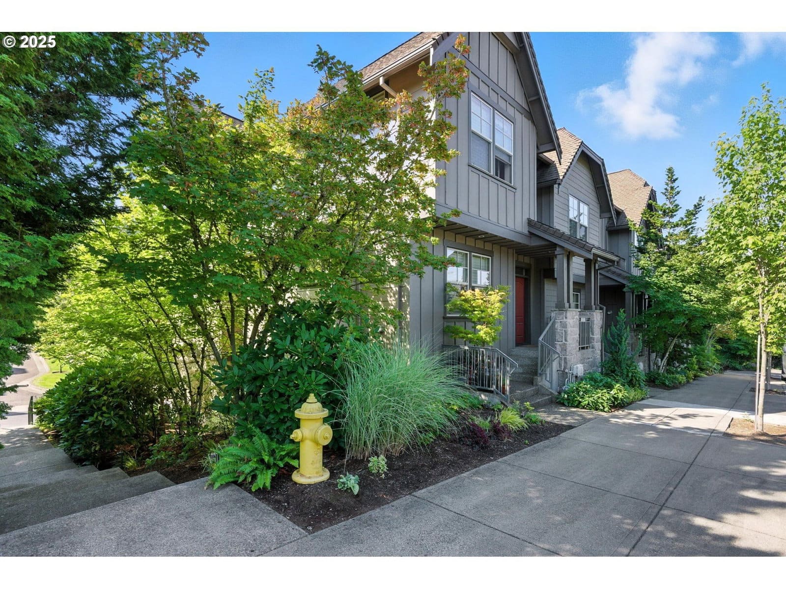 A standout home at an exceptional price. Experience refined, carefree living in Renaissance at Peterkort Woods, one of Washington County’s most prestigious townhome communities. This sophisticated, lock-and-leave residence features sleek bamboo flooring, curated designer paint tones, and the modern loft package. The living room offers a contemporary fireplace with built-ins, while the kitchen boasts granite counters, stainless appliances, a gas cooktop, and ample workspace. The dining area opens to a covered deck, perfect for morning coffee or relaxing evenings. Upstairs, the primary suite includes a spa-inspired ensuite and a large walk-in closet. Two additional bedrooms add flexibility. The lower level offers a versatile bonus room with surround sound and extra storage, plus an EV-ready two-car garage and built-in vacuum. Set within a meticulously maintained community with manicured grounds, walking trails, a private clubhouse, swimming pool, and access to the scenic Merritt Park trail system, this home offers unparalleled convenience. Enjoy nearby shopping, dining, parks, and transit options—plus proximity to major employers like Nike, Intel, Providence St. Vincent, and the MAX light rail. Whether as a primary residence or sophisticated second home, this property delivers an elevated townhome experience in a sought-after neighborhood—with the added benefit of Washington County property taxes. HOA dues cover exterior maintenance, landscaping, pool, clubhouse, and community common areas, as well as association insurance.