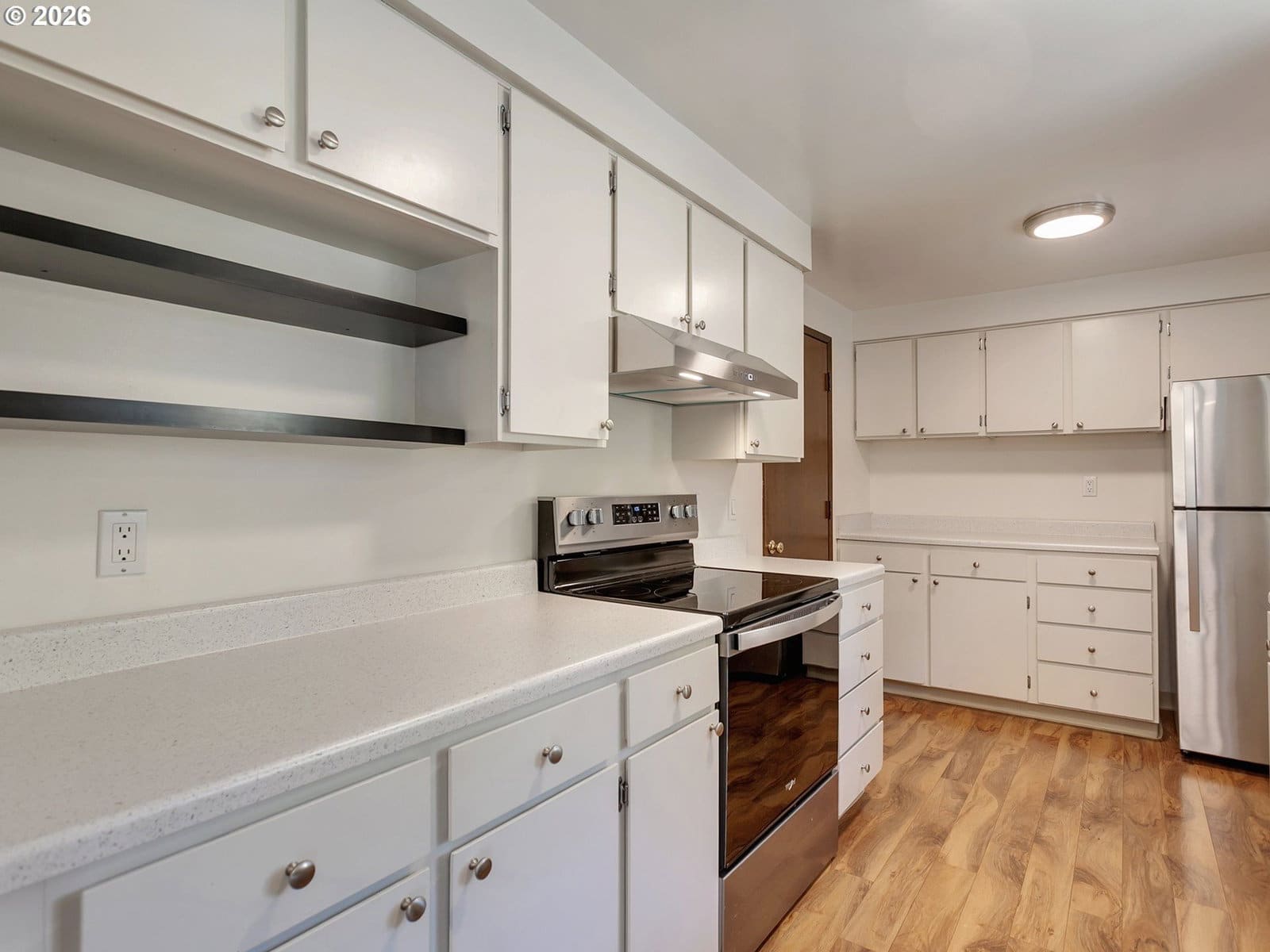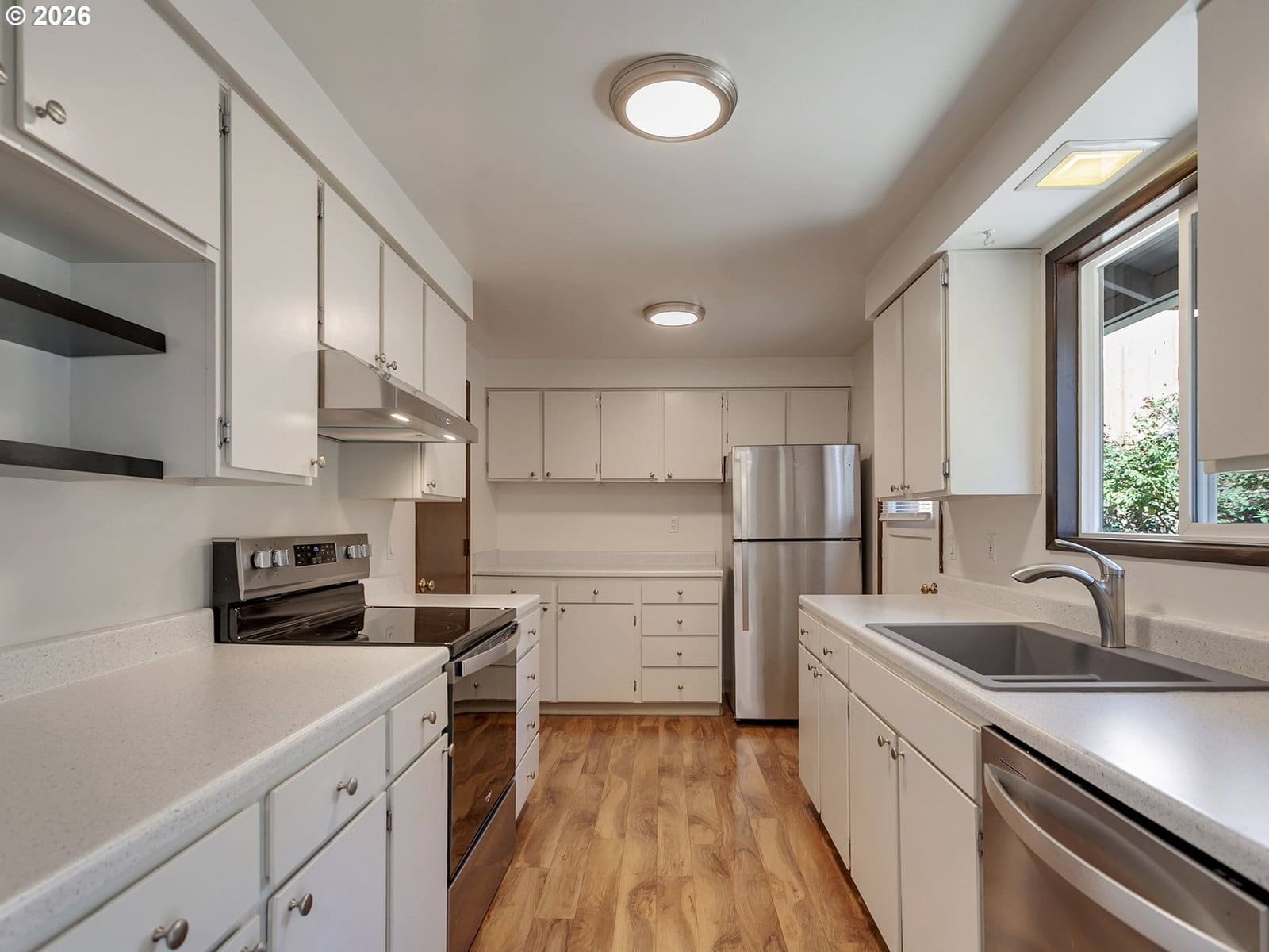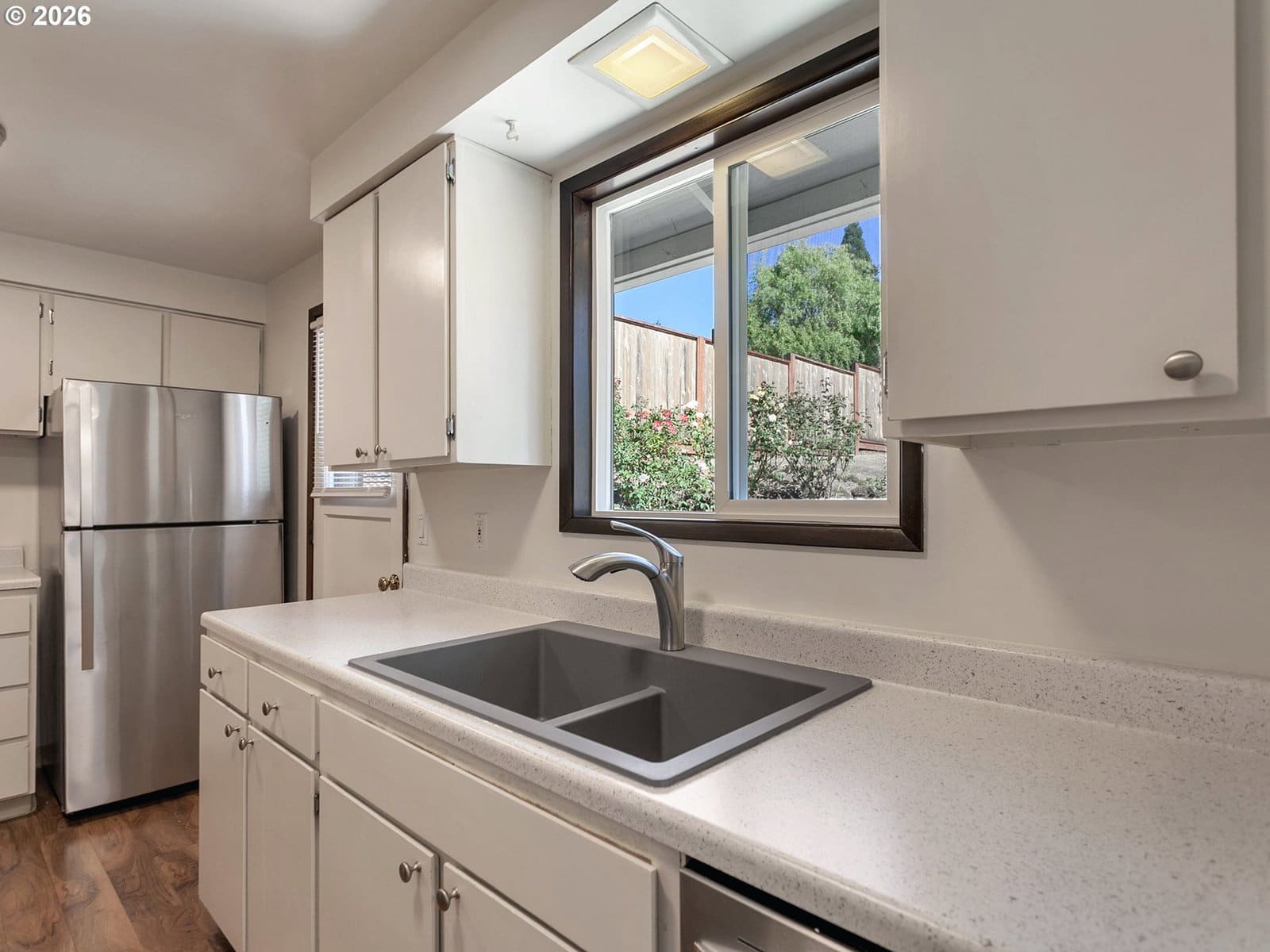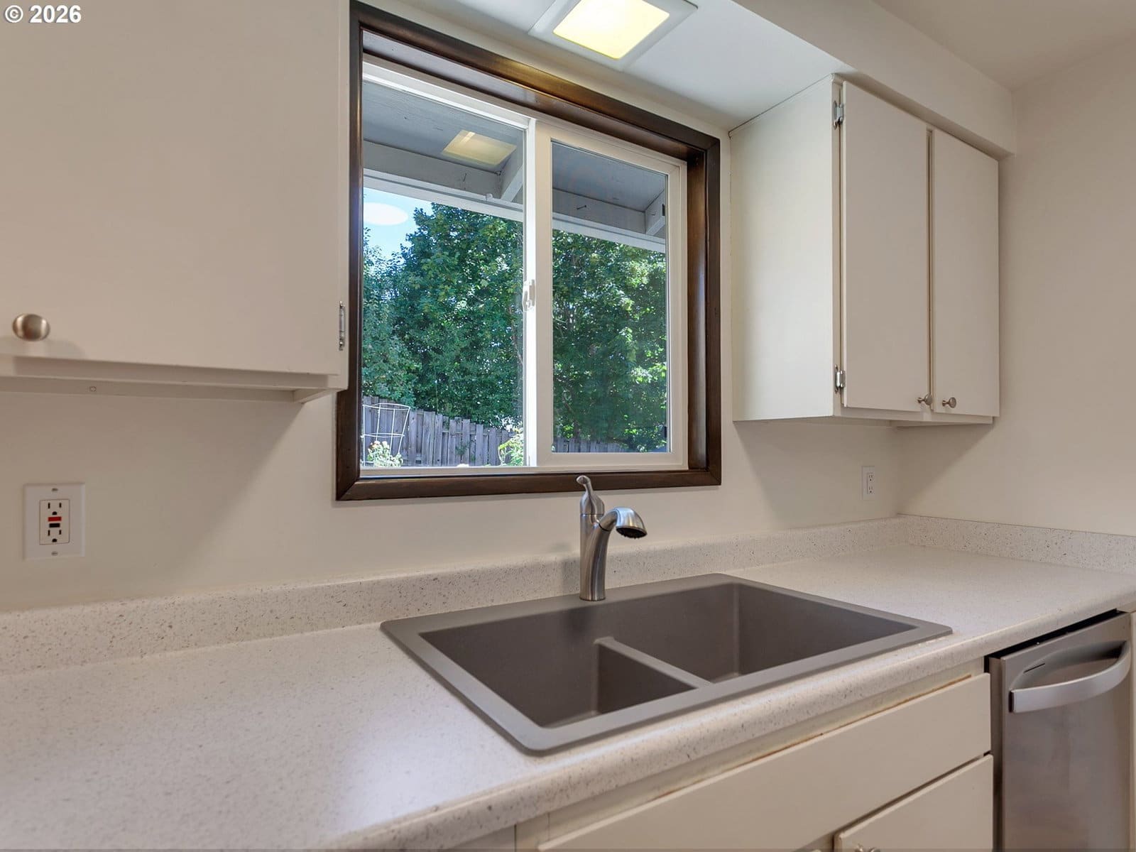 Immaculately maintained ranch in Milwaukie! Featuring an awesome floor plan and extensive updates throughout, this turn-key gem is ideal for both relaxing and entertaining. The kitchen has been refreshed with new countertops and sink, along with all new kitchen appliances, while large windows flood the home with abundant natural light. The interior has been freshly painted throughout, and brand-new carpet was installed in July 2025, creating a bright, cohesive feel. The bathroom has been updated with a new toilet, brand-new tub, and tile surround, and the home’s systems have been carefully maintained, including a serviced furnace and A/C, replacement of all water shutoffs, professionally cleaned air vents and dryer vent, and a fully serviced garage door. A brand-new water heater and washer were also added in 2025. Some other upgrades include vinyl windows, and furnace/AC, providing long-term value and peace of mind. Outside, enjoy a private, fully fenced yard with both front and back patios, plus a generous side yard offering excellent space for a dog run, garden, or additional outdoor living. A large Tuff Shed is included with the purchase, along with all appliances. Tucked into a quiet neighborhood just 20 minutes from downtown Portland or PDX, this home truly has so much to offer its next owner. Call today—this one won’t last long!