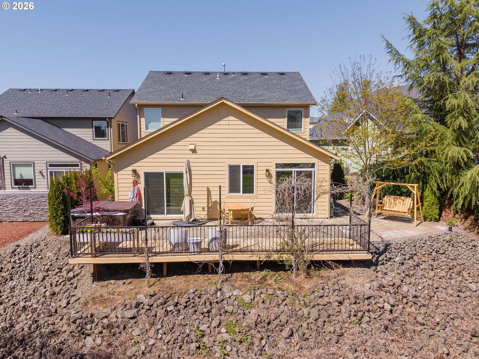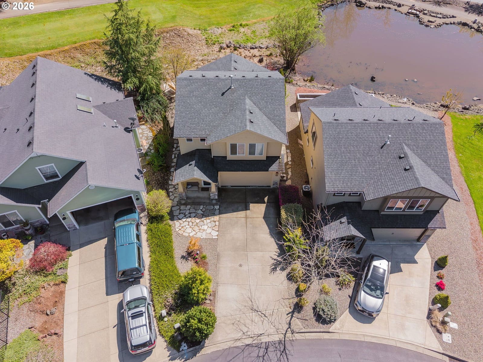 Set within Fairway Estates, this home offers a functional, low-maintenance layout with an open and airy feel. Inside, you’ll notice the natural light, high ceilings, vinyl plank flooring, recessed lighting, and a comfortable living room centered around the fireplace. The open-concept living room and kitchen make everyday living feel connected and easy. The kitchen is thoughtfully designed with granite countertops, stainless steel appliances, and a large island with bar seating that naturally becomes the centerpiece of the home. The primary suite is located on the main level, offering both convenience and privacy, complete with a soaking tub, separate shower, double sinks, and a walk-in closet. Upstairs, the additional bedrooms provide separation and flexibility for guests, work, or everyday living. Step out back to the deck and take in the pond and 16th tee views. With outdoor kitchen hookups already in place and low-maintenance landscaping, the space is ready to enjoy. The two-car garage includes an EV hookup for added convenience.