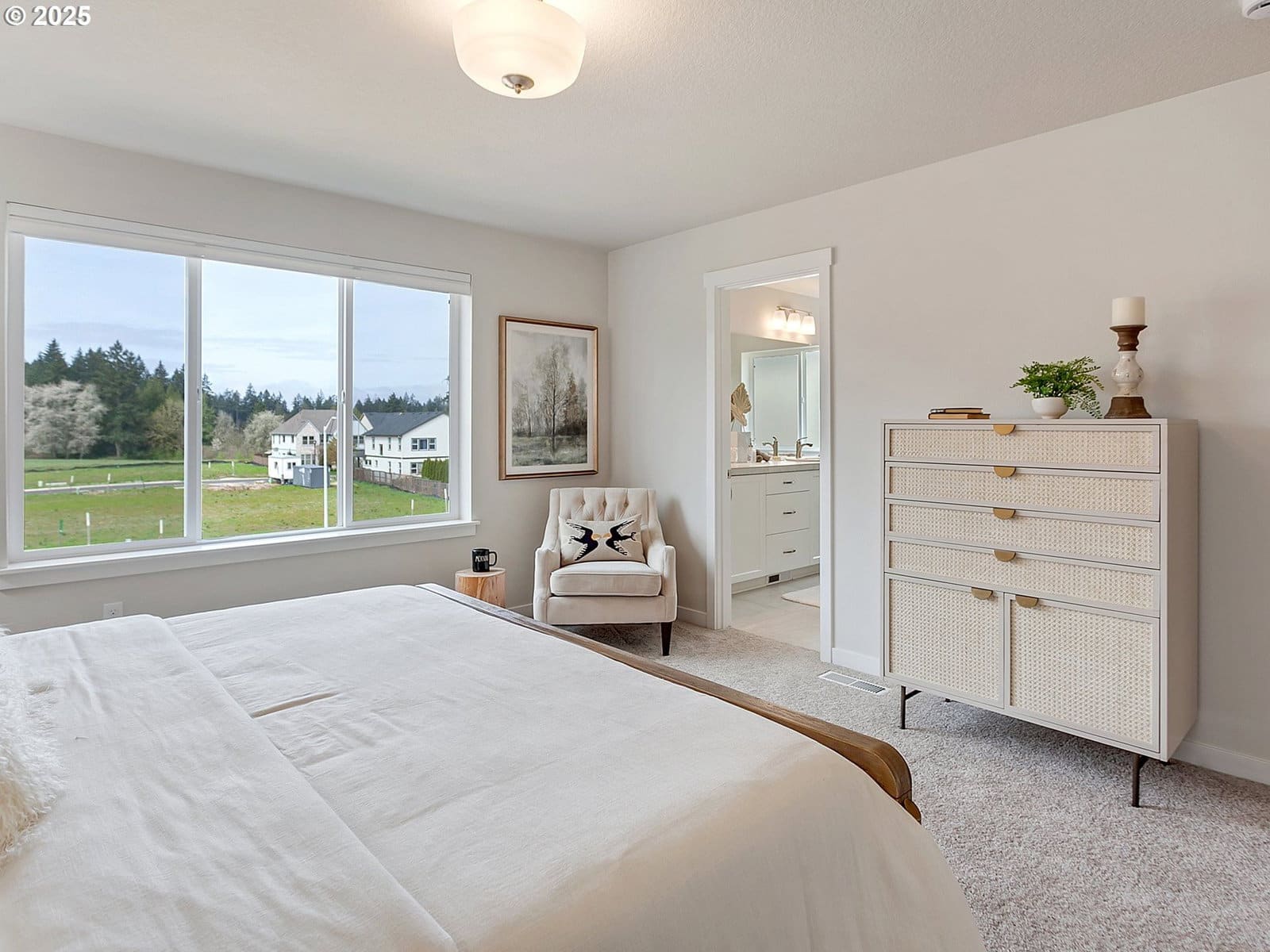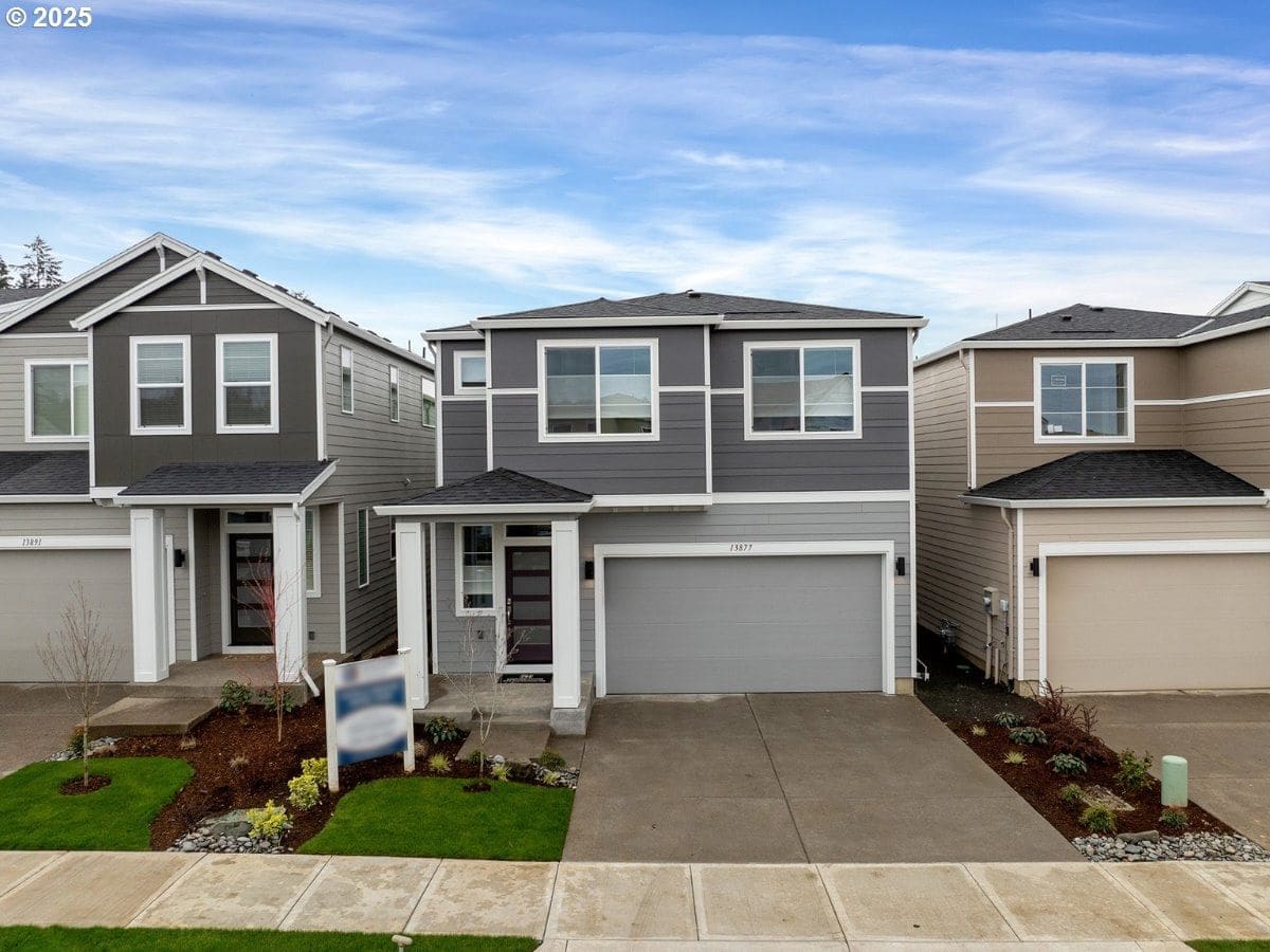 Lot 24 at Scholls Meadow by Riverside Homes is the MODEL HOME. This 2466 plan with 5 bedrooms includes a MAIN LEVEL bedroom and FULL BATHROOM ideal for guests or multi-generational living. AC, UP/DOWN BLINDS & FRIDGE INCLUDED! Bright, open layout in the living spaces including great room with gas fireplace, dining room with sliding door access to covered patio, and a spacious kitchen with gas range, island, quartz and walk-in pantry. Bonus loft upstairs makes a great media room or workout space. Luxurious primary suite includes tiled shower and soaking tub, double vanity, and huge walk-in closet. Traditional two car front load, attached garage with driveway and on street parking. Fully fenced and landscaped backyard with gate & sprinklers. Modern exterior. Must see to appreciate the style, beautiful finishes, and functionality of these homes! Model Open Thurs-Mon 12:00-5:00pm (13877 SW SABRINA AVE, LOT 24)