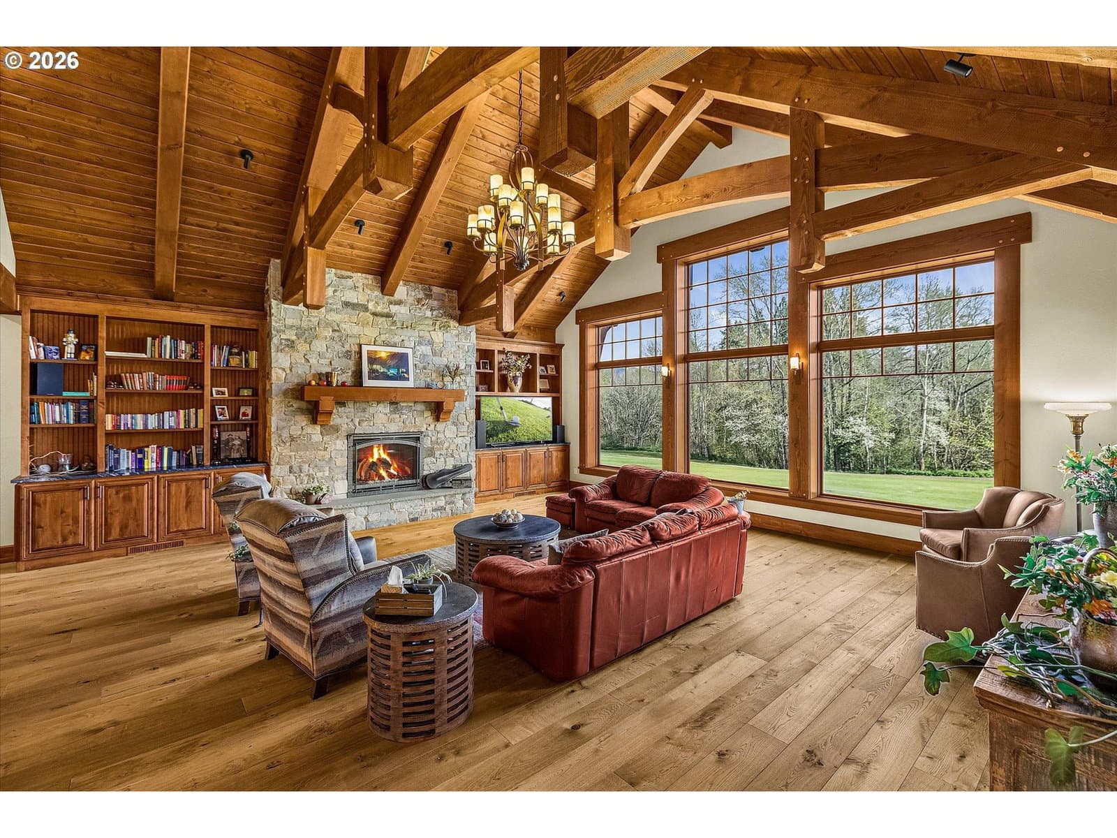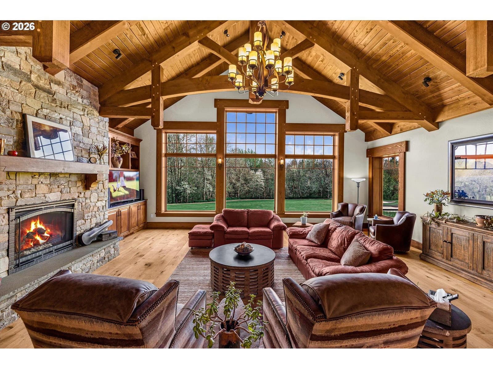 Luxury greenside living along the Indian Creek Golf course this beautiful 4 bedroom 4.5 bath custom built Craftsman home in the desirable Fairway Estates and the heart of the gorgeous Hood River Valley! Designed for easy, grand main -level living, this home features all primary living spaces and the primary suite on the main floor. Showcasing the highest quality and craftmanship and built to the nines! Features include a gourmet kitchen, Granite, Wolf gas range, Sub-Zero built-in Refrigerator, large island, recessed timber frame inset ceiling's, Knotty Alder cabinets, 12" window casings & trim, solid 8ft doors, and built-ins throughout. Solid fir Mortise and Tenon timber frame Vaulted living room w/ 12" Fir window casings & trim, Grand stone gas fireplace, wire brushed European white oak hardwoods, sound system throughout, heated tile floors in primary & secondary bathrooms, custom Artisan Mahogany Mt. Hood entry door, full security system w/camera's. Trifold slider to the large 32x32 covered patio w/sound system & outdoor kitchen, 50 year Hi-Def Presidential roof, cedar siding w/cedar T&G soffits, sprinkler system, 25x44 oversized 3 car garage, ICF foundation(Insulated Concrete Form) for exceptional heating & cooling efficiency, conditioned crawlspace, 18x26 storage/golf cart parking below. 3+ mile walking trail. Come enjoy the peaceful beauty of the Columbia River Gorge, Mt. Hood, and the Hood River Valley— where outdoor adventure awaits year round including hiking, biking, golfing, skiing, snowboarding, windsurfing, and more!!