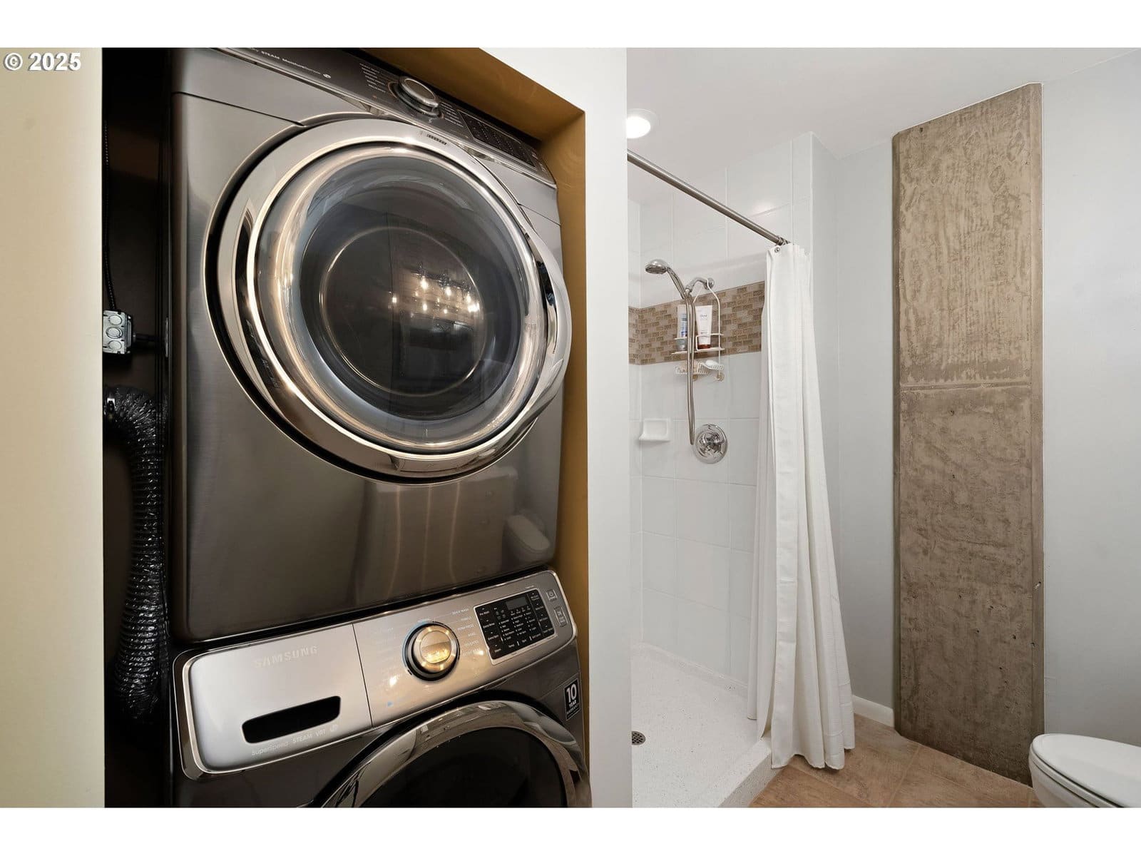 This north-facing loft at Streetcar Lofts frames views of the Fremont Bridge and city skyline. High concrete ceilings and a full wall of windows define the open plan, with hardwood floors throughout. The kitchen is updated with stainless appliances, granite counters, and a walk-in pantry that doubles as storage.A custom office with Murphy bed makes hosting guests simple, complemented by a second full bath with modern finishes. The primary suite is enclosed by glass walls and doors, with a large walk-in closet and remodeled bath. Building amenities include a landscaped courtyard, community room, and a gym with neighborhood views. Outside, you’re a block from Tanner Springs Park, connected to three Streetcar lines, and minutes from Forest Park trails.