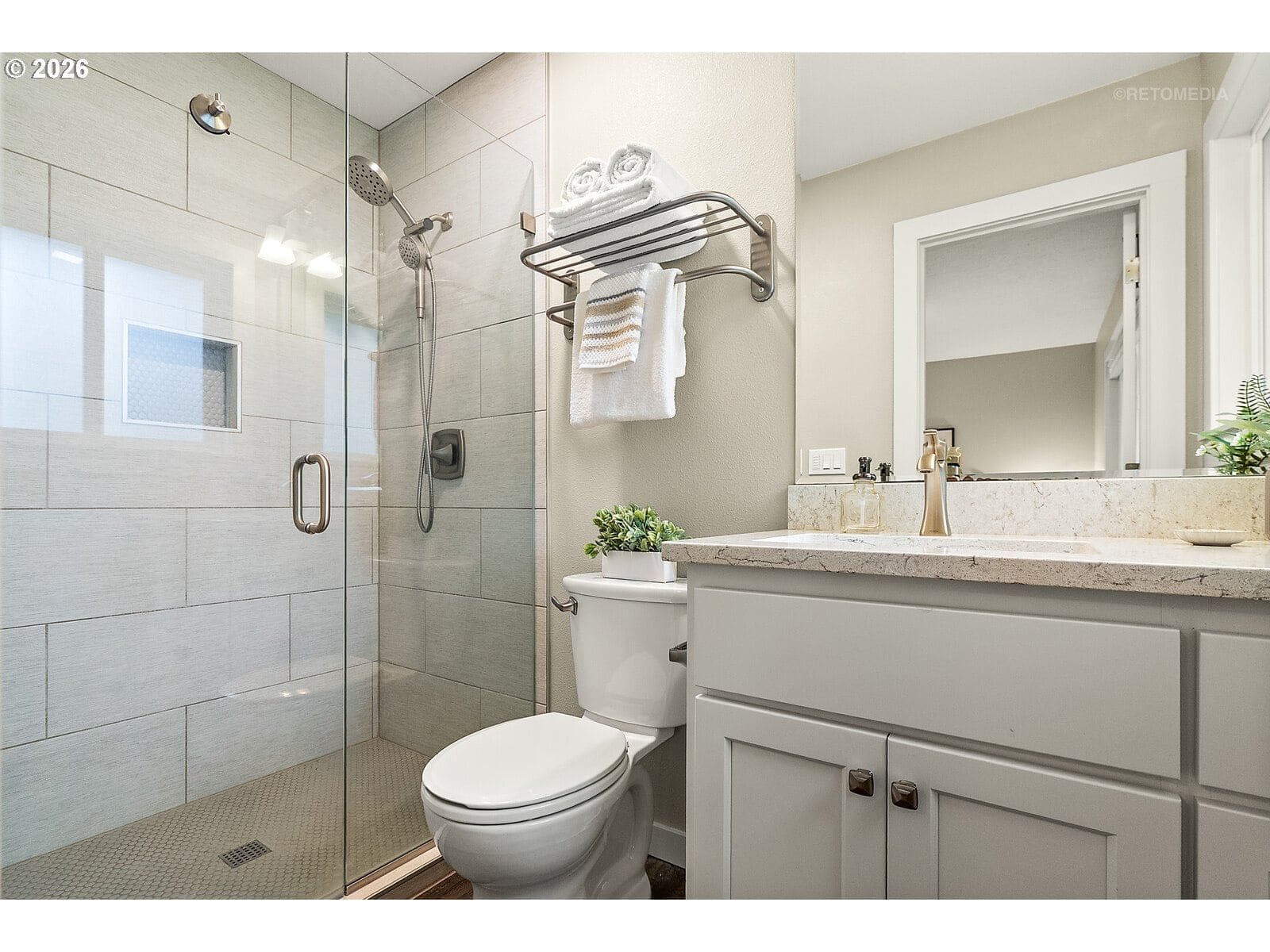 The home that changes everything for Sherwood buyers. Completely reimagined inside and out, this beautifully updated home blends warm modern design with effortless everyday livability in one of the area’s most connected locations. Thoughtfully remodeled in 2019, nearly every surface and major system has been refreshed, creating a truly move-in ready opportunity that feels both stylish and comfortable. The light-filled main level features an inviting great room layout centered around a stunning kitchen with quartz slab countertops, a generous island with eat-bar seating, soft-close custom cabinetry, and stainless steel appliances. Just beyond, the dining area and living room create an open and welcoming space highlighted by a floor-to-ceiling statement fireplace. Outside, the elevated deck is perfect for morning coffee, sunset relaxation, or easy outdoor entertaining. The main level also includes a spacious primary suite with an updated bathroom featuring a tile-wrapped walk-in shower and quartz vanity, along with two additional bedrooms and a full hall bathroom. Downstairs, the daylight lower level adds incredible flexibility with a large bonus living space, a walk-in closet, and a bathroom with a tile shower, quartz vanity, and a convenient laundry area. This versatile space works beautifully as a family room, guest suite, home office, or potential fourth bedroom. Outside, the fully fenced backyard offers room to play, garden, or entertain with a composite deck, patio, and generous yard space. Additional highlights include an oversized two-car garage, central air conditioning, a side gravel pad and extensive updates since 2018, including the roof, HVAC, siding, doors, trim, all interior surfaces, finishes and more! Located in Sherwood, just around the corner from Stella Olson Park, trails and Old Town Sherwood! Enjoy all of Sherwood’s best with easy access to HWY 99, top-rated schools, shopping, restaurants and more!