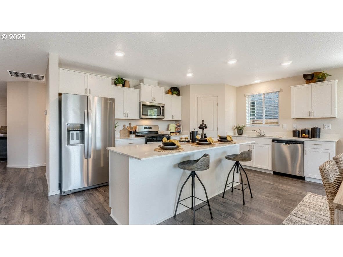 The Moreland is a functional one-level floor plan that has 1,630 square feet and boasts 3 bedrooms, and 2 bathrooms. The two front bedrooms are connected by a centrally located full bathroom for enhanced convenience. The laundry room is right by the kitchen and has easy access from the garage. The stylish kitchen is completed with stainless-steel appliances, a practical corner pantry, central island, quartz countertops, gas range/oven with a vent hood, inviting you to unleash your culinary creativity. Adjacent to the kitchen, the dining area is effortlessly connected to the expansive living room. This open-concept layout offers tall ceilings and large windows that fill the space with natural light. A centrally located fireplace in the great room adds style and warmth. The primary bedroom offers a walk-in closet, an en suite bathroom with a double vanity. Receive a closing cost credit with use of builder’s preferred lender, reach out for more information. Sales office hours are 9:30am – 4:30pm daily. Be a part of this wonderful community at East Park Village! Photos are representative of plan only and finishes may vary as built. This home includes Fence, AC, Blinds, GDO & Rear yard sod/irrigation!