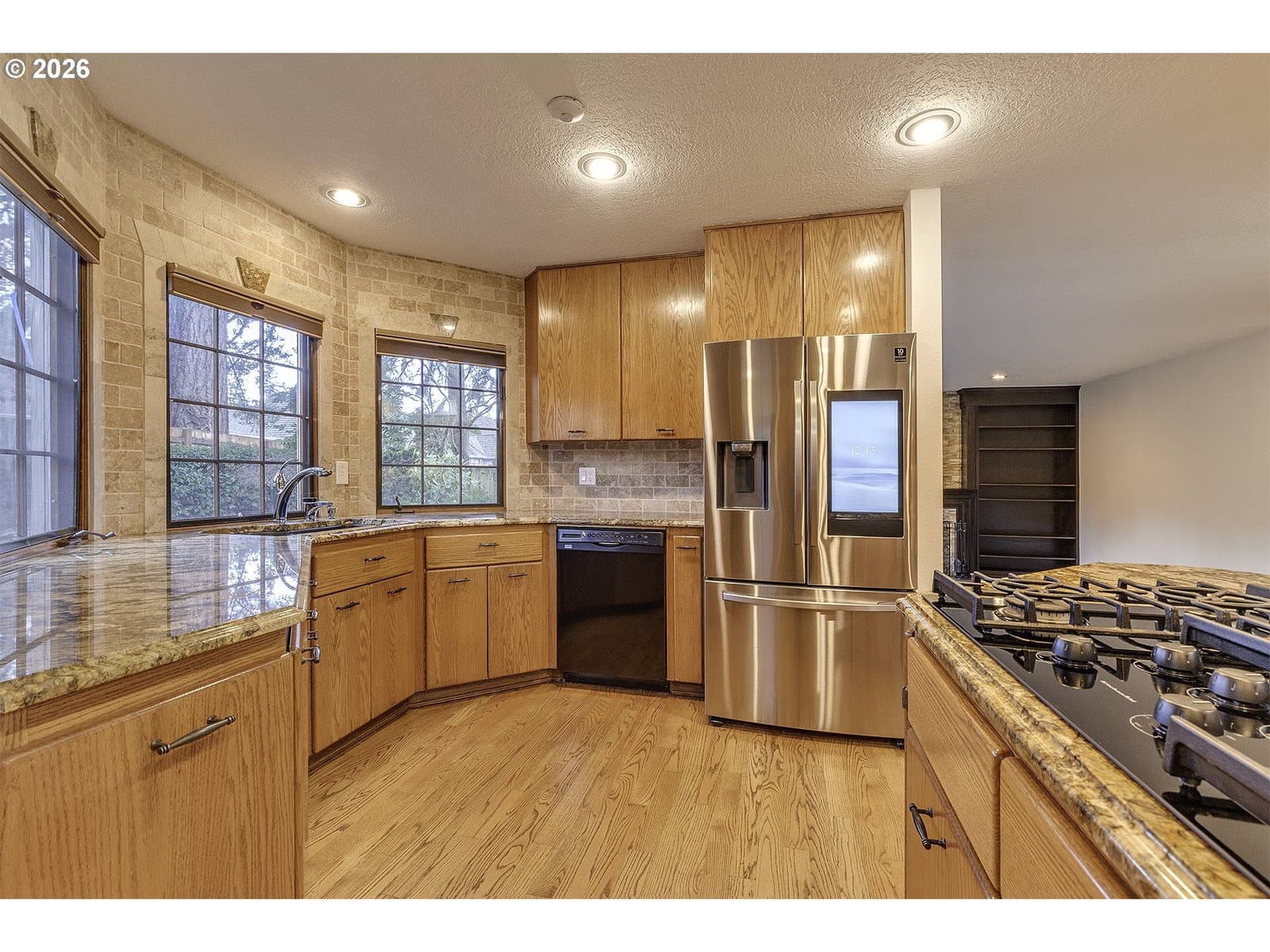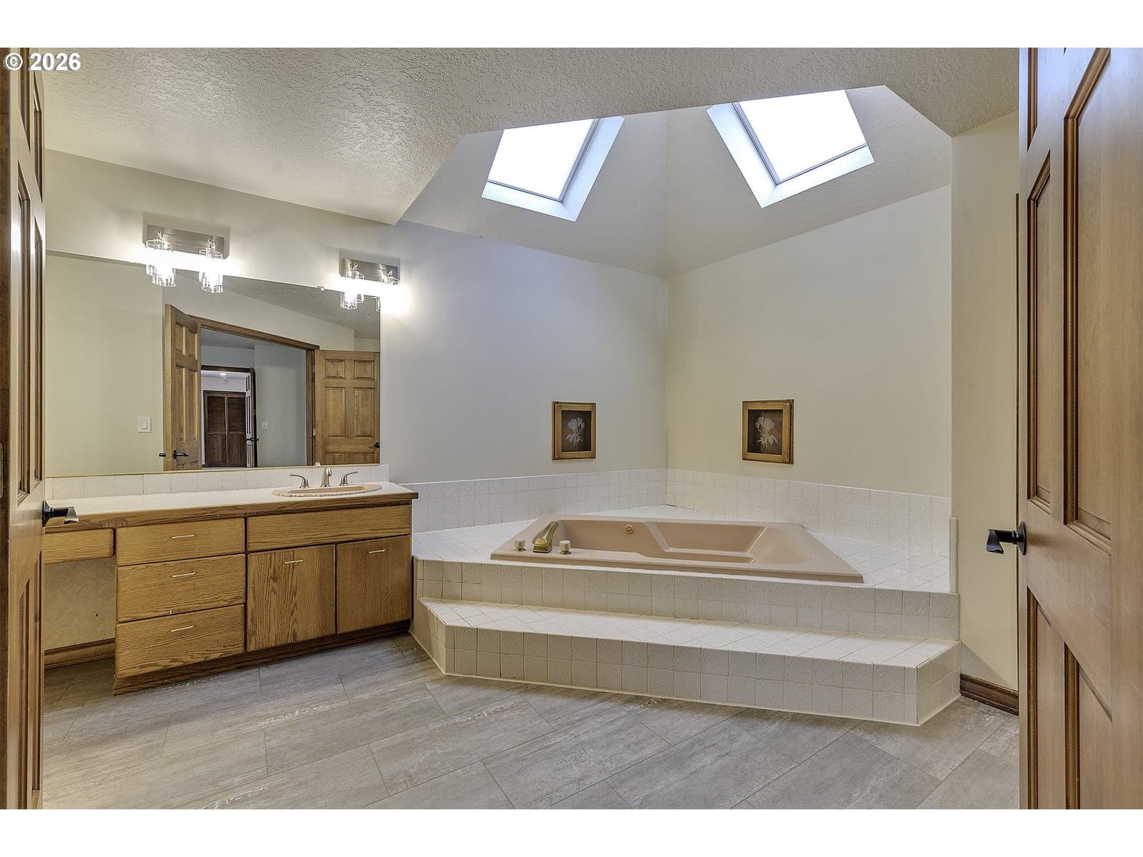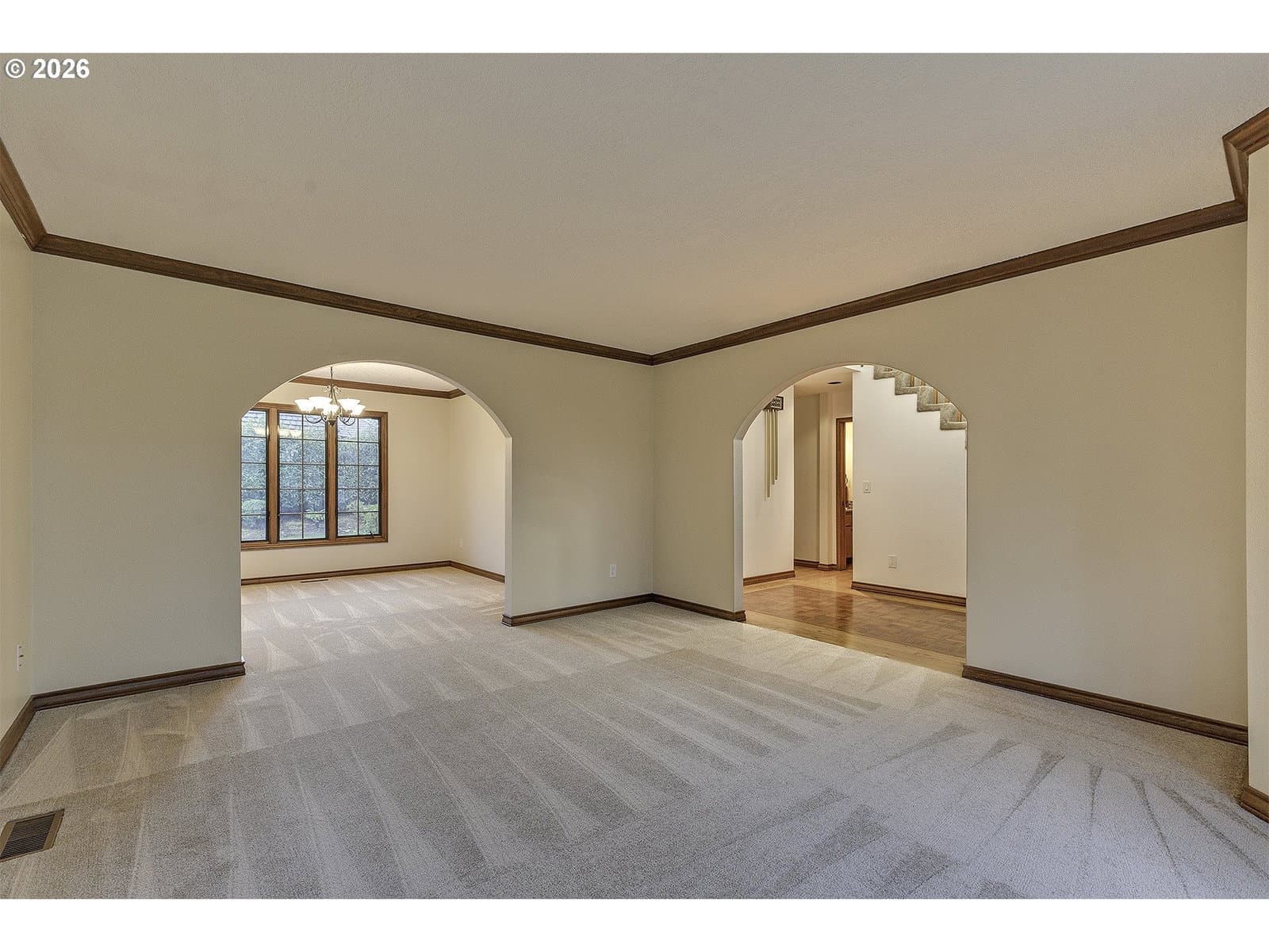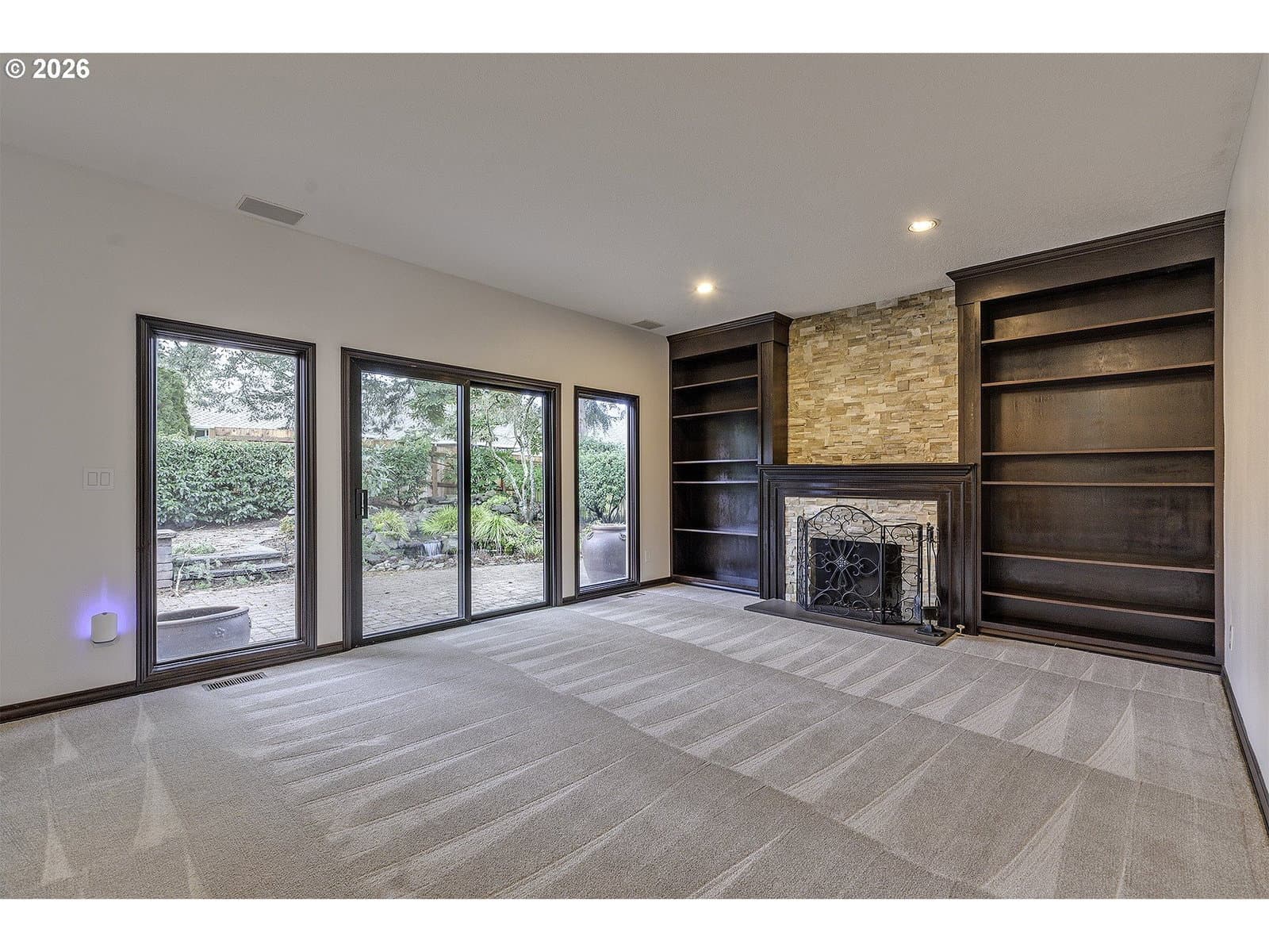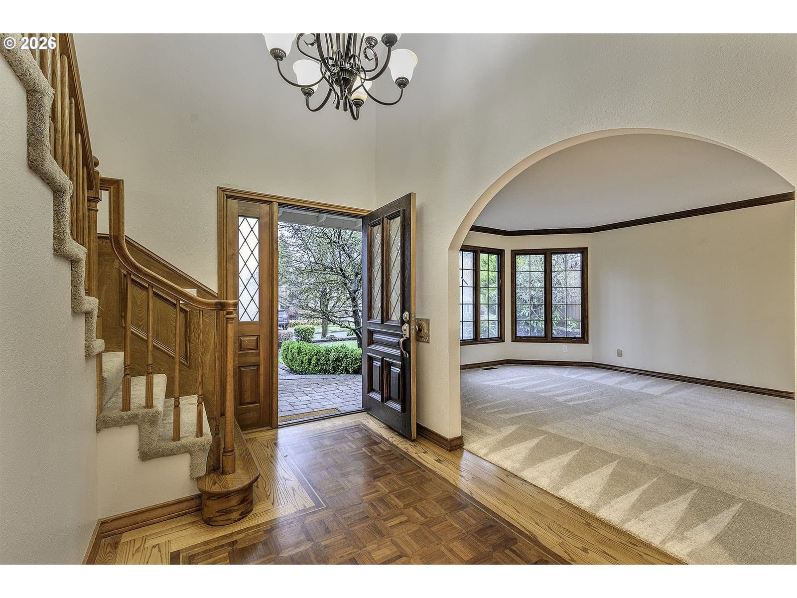 ** OPEN HOUSE SATURDAY, 1/31 from 10:00-12:00 ** Brand new roof, new exterior paint & new carpet throughout! This beautiful 4 bdrm home has versatile living & outdoor spaces. With classic architectural details & a floor plan made for gathering, this former Street of Dreams home offers a comfortable place to make your own. Large windows & thoughtful features like a wet bar, 2 fireplaces & a spacious backyard patio. The foyer has vaulted beamed ceiling & hardwood floor w/parquet inlay. Formal living room w/bay window opens to the dining room, both have crown molding. Spacious kitchen features slab granite, eating island w/gas cooktop (2024), double convection ovens & snack counter w/beverage fridge. Family room has fireplace, blt-in bookcases, wet bar & brand new sliding door to the patio. Primary suite has fireplace, 2 closets (one is w-in), dual sinks, jetted tub & skylights. Manicured & fenced backyard w/ extended paver patio, built-in fire pit, tiered pond & lawn. 2-car oversized garage w/built-in shelves. Auto sprinklers. Ring doorbell. Gas water heater (2022). A/C. Refrigerator, washer & dryer included. Whether you are entertaining or relaxing, there is plenty of room to spread out, settle in & enjoy all this home has to offer.