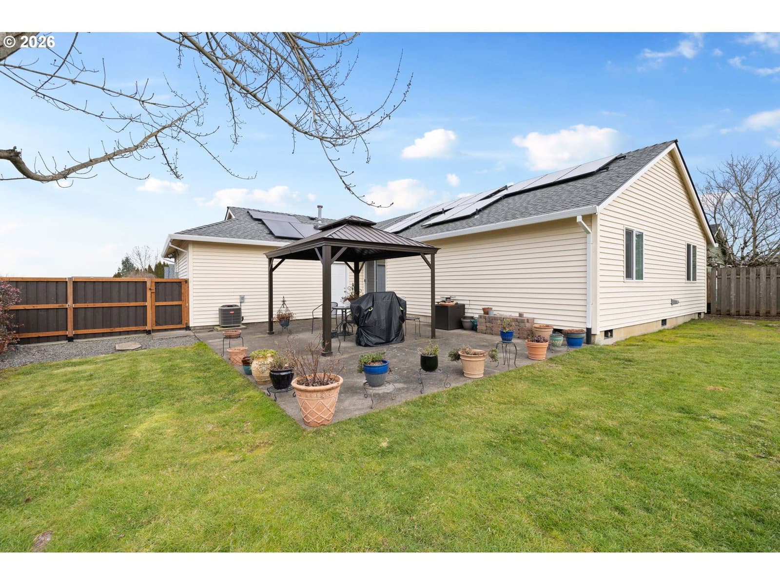 Charming single-story home on a corner lot with RV/boat parking! Well maintained and move-in ready with tasteful cosmetic updates including new granite countertops in bathrooms and kitchen and new flooring throughout in 2024. Features include vaulted ceilings, a gas fireplace, and skylights. Major upgrades have already been completed, including new furnace and A/C installed in 2018, a hot water heater replaced in 2024, New gutters in 2018, and solar panels installed in 2023 that will be paid off by the seller at closing.The fully fenced yard offers a patio with a cozy gazebo and a 10x10 shed for extra storage. RV/boat parking includes a 30A outlet, and the garage features 240V electrical—ideal for storage, hobbies, or additional vehicles.Located in a well-established, family-friendly neighborhood with no HOA. Perfect for first-time homebuyers or those looking to downsize!