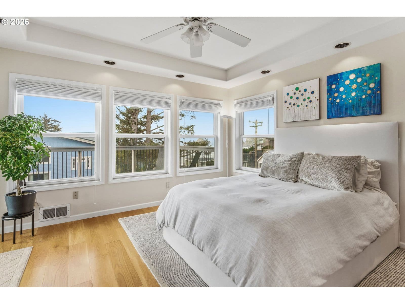 A rare coastal retreat with panoramic ocean views, this exquisite three-level beach home is perched above the shoreline in coveted Oceanside and offers an extraordinary opportunity to own a front-row seat to the Oregon Coast. Thoughtfully designed to capture breathtaking ocean vistas including iconic Three Arch Rocks, the residence blends refined comfort with timeless coastal charm. The lower level welcomes you with a bonus room, bedroom and a full bathroom, ideal for guests or private retreats, along with direct access to the backyard, where a dedicated storage shed provides convenient space for beach gear and outdoor essentials, and covered parking adds everyday ease. On the main level, natural light pours into an open and inviting living space designed for both relaxation and entertaining, with a kitchen featuring abundant cabinetry and expansive counter space perfect for preparing coastal feasts. The living room is anchored by a cozy fireplace and elegant built-in bookcase, creating a warm yet sophisticated ambiance, while the ocean-facing deck offers sweeping views of the Pacific and the dramatic beauty of Three Arch Rocks, an unforgettable backdrop for morning coffee or sunset gatherings. The upper level is a private sanctuary with upstairs laundry for convenience, an office or additional bedroom offering flexible use, and a showstopping primary suite with its own private deck overlooking the coastline and delivering awe-inspiring views. A walk-through closet leads to the spa-like en suite bathroom complete with a double vanity designed for comfort and style. Updates include a new roof, siding/paint, windows, engineered wood floors, gutters, replaced all doors in the home, dishwasher, stove, shed, and whole home generator. Homes of this caliber and location are seldom available, making this more than a beach house but a rare coastal lifestyle where every level reveals a new perspective of Oregon’s natural beauty.