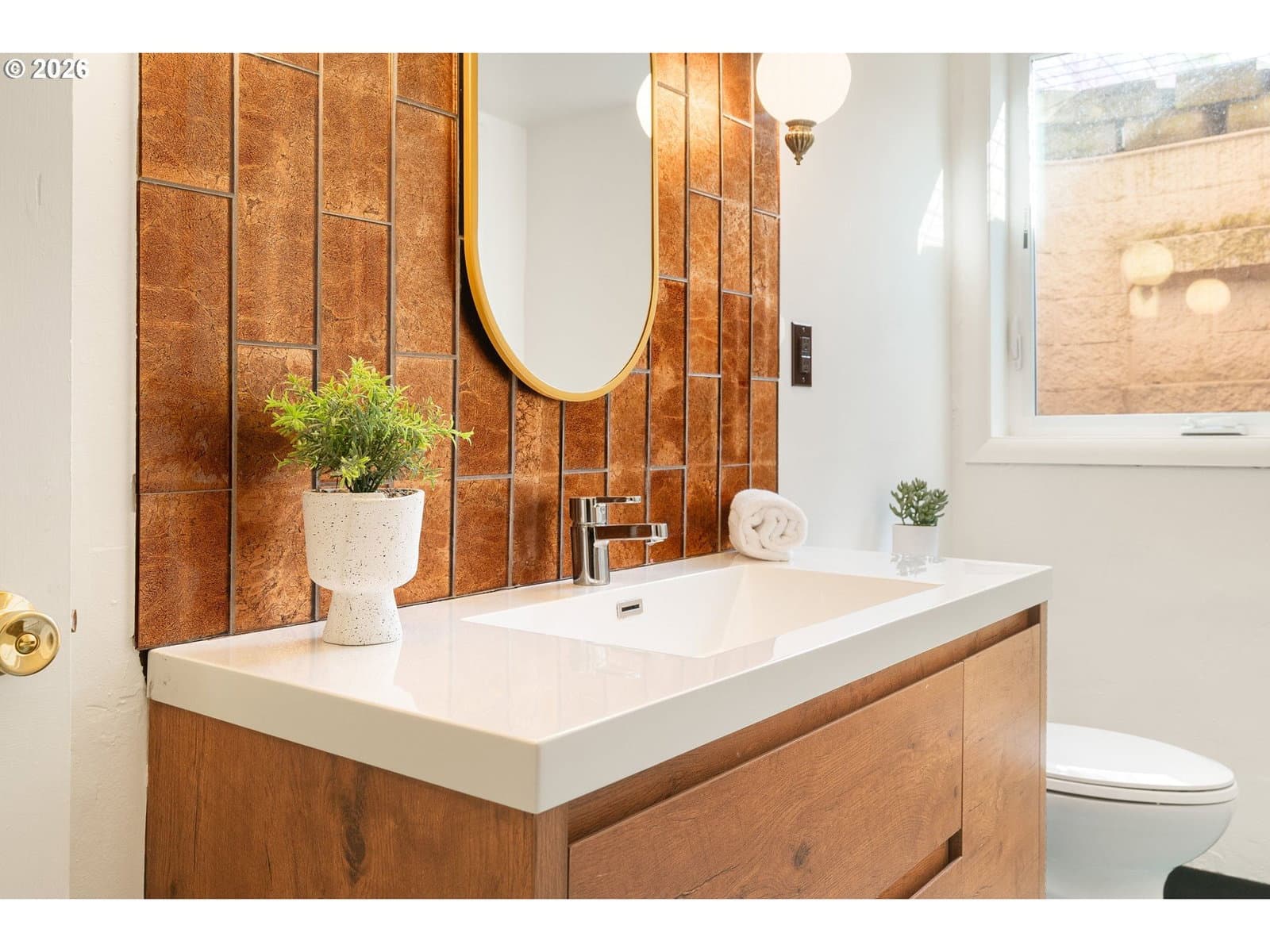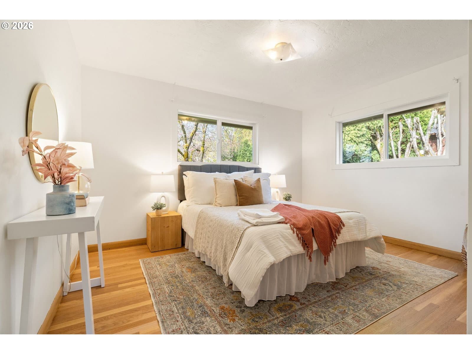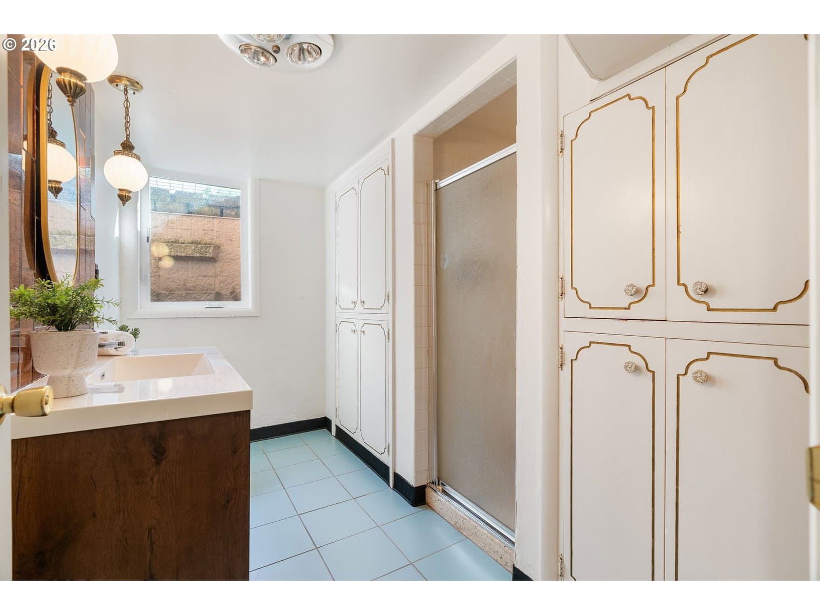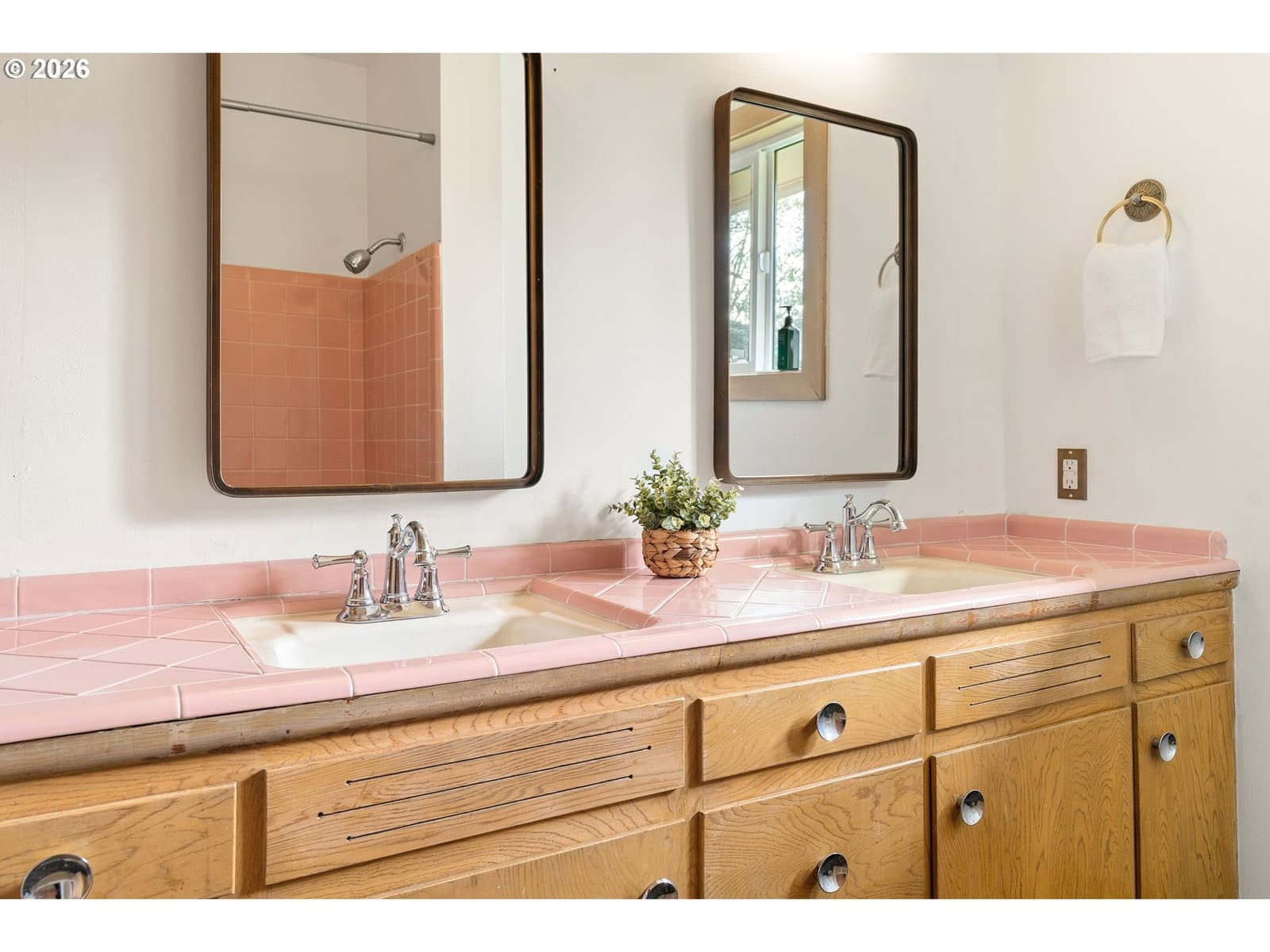 Everyone loves a mid-century home, and for good reason. Built with old growth timber, functional layouts, and beautiful wood floors, these homes offer warmth and character that is hard to replicate.This classic ranch sits on a large lot and welcomes you with a spacious driveway, charming front porch, and built-in flower bed. A breezeway connects the home to the detached two-car garage. Inside, the entry features a built-in planter, climbing vines, original wood divider, and coat closet.The living room is anchored by a quintessential 50s brick fireplace and filled with natural light from west- and south-facing picture windows. Enjoy views of the Southwest Hills across the Willamette River. A formal dining room and cozy kitchen nook provide flexibility, while the kitchen stays true to its era with charming wallpaper and original cabinetry, complemented by updated countertops, sink, and backsplash.With five bedrooms, three on the main and two downstairs, this home offers excellent flexibility. The lower level includes a spacious family room, updated bathroom, laundry room, and a fifth bedroom or office. Original built-ins add both charm and function, and the classic pink tile in the bathroom preserves its mid-century character.Major updates include new PEX plumbing, sewer and water lines, water heater, and electrical panel with garage subpanel. The home also features central A/C, radon system, EV charger, foundation strapping, and sump pumps.Additional improvements include new windows and trim, solar tubes, updated basement lighting, egress windows, fenced back patio, new gutters, newer driveway slab, exterior paint (2023), and a powered garage door opener.A rare opportunity to own a mid-century home with thoughtful modern updates.
