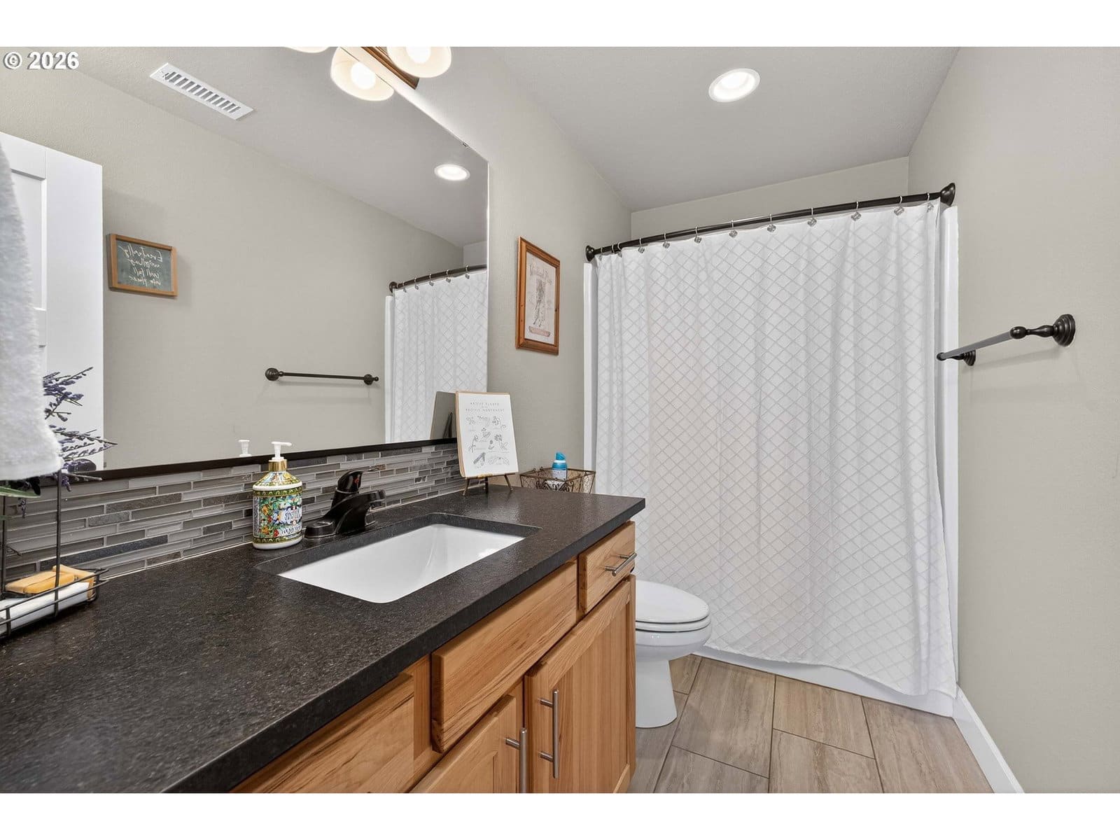 Welcome to your beautiful open concept, 4 bed + bonus home featuring 2.5 baths, lower level laundry room with accent wall, a lower level Office/Den/Playroom. Beautiful kitchen with black leather granite counters, SS appliances and lots of storage. Living area with beautiful fireplace and bright light from windows over looking the professionally landscaped, fenced back yard. Primary suite has soaking tub, separate shower and large walk in closet. This home features many upgraded fixtures, trims and accents through-out. Large 3 car garage with over head storage racks. This beauty is located in a quiet neighborhood with no HOAs! Contact your agent today for a private showing
