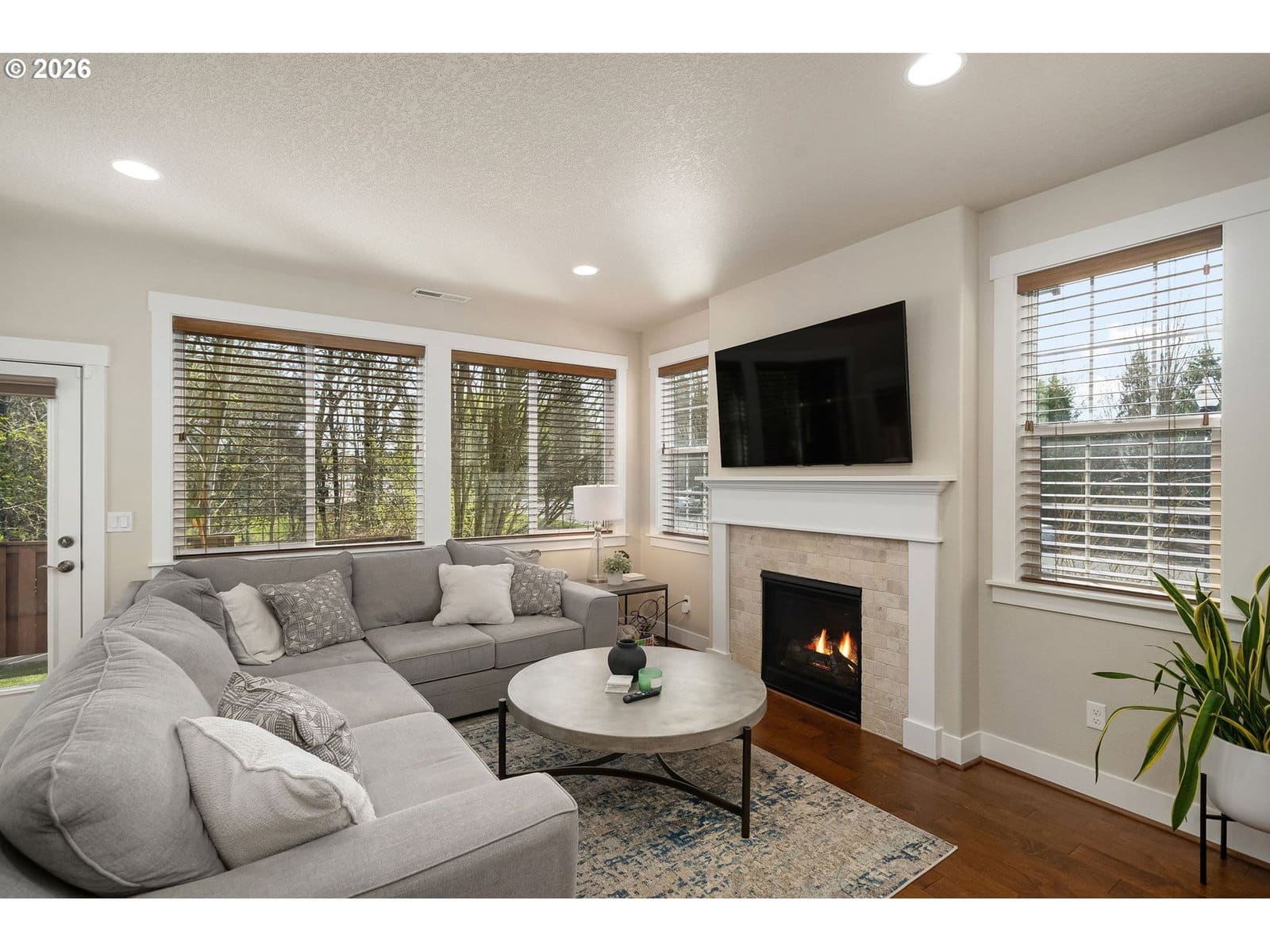 Situated on a corner lot with a wooded backdrop, this home offers a level of privacy that’s hard to find this close in. The backyard has been completely redone with retaining walls and artificial turf, creating a clean, usable space year-round with almost no maintenance. On top of that, minimal HOA fees cover the front and one side yard, giving you more time to enjoy the yard rather than work on it.Inside, the home has been very well cared for and thoughtfully updated. The main level features an open layout connecting the kitchen, dining, and living areas, with direct access to the backyard. Lighting has been updated, and the main-level bathroom has been recently refreshed.There’s a living space on each level, giving you flexibility depending on your needs. Upstairs, all bedrooms are grouped around the laundry room, along with a bonus room that works well as a second living space, playroom, or office.All appliances are included, along with a new dishwasher and garbage disposal, plus a second refrigerator and overhead storage in the garage. The home also includes smart features such as a Nest thermostat and Ring security system.With its combination of privacy, upgrades, functional layout, and pride of ownership, this home stands out. Come see it for yourself!