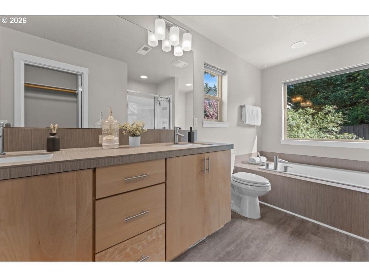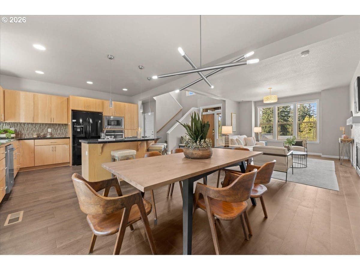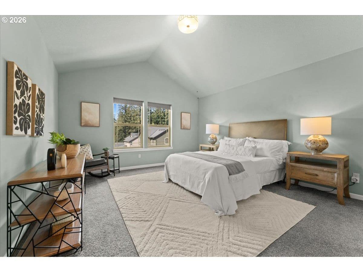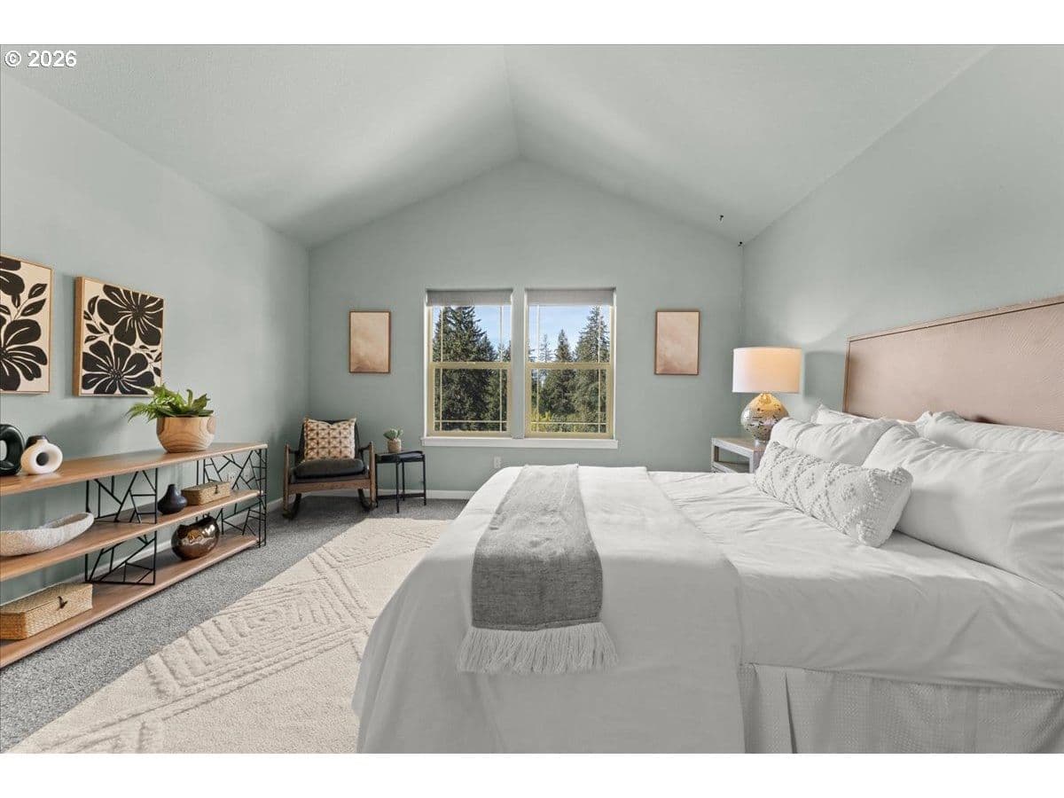 Escape to this move-in-ready home where tranquil Oregon views greet you from every window! This home features 4 bedrooms, 3 full bathrooms, a vaulted primary suite with a walk-in closet, double sinks, shower and soaking tub. Bedroom on main level with a full shared bathroom. The additional room on main can be used as a home office/flex space. Great room floor plan with high ceilings and cozy gas fireplace. Kitchen with granite countertops, stainless steel appliances and a chefs island. New deck, fresh landscaping, central vac, EV charger and a massive garage. Great location with easy access to shopping, restaurants, trails, PDX and Mt. Hood!