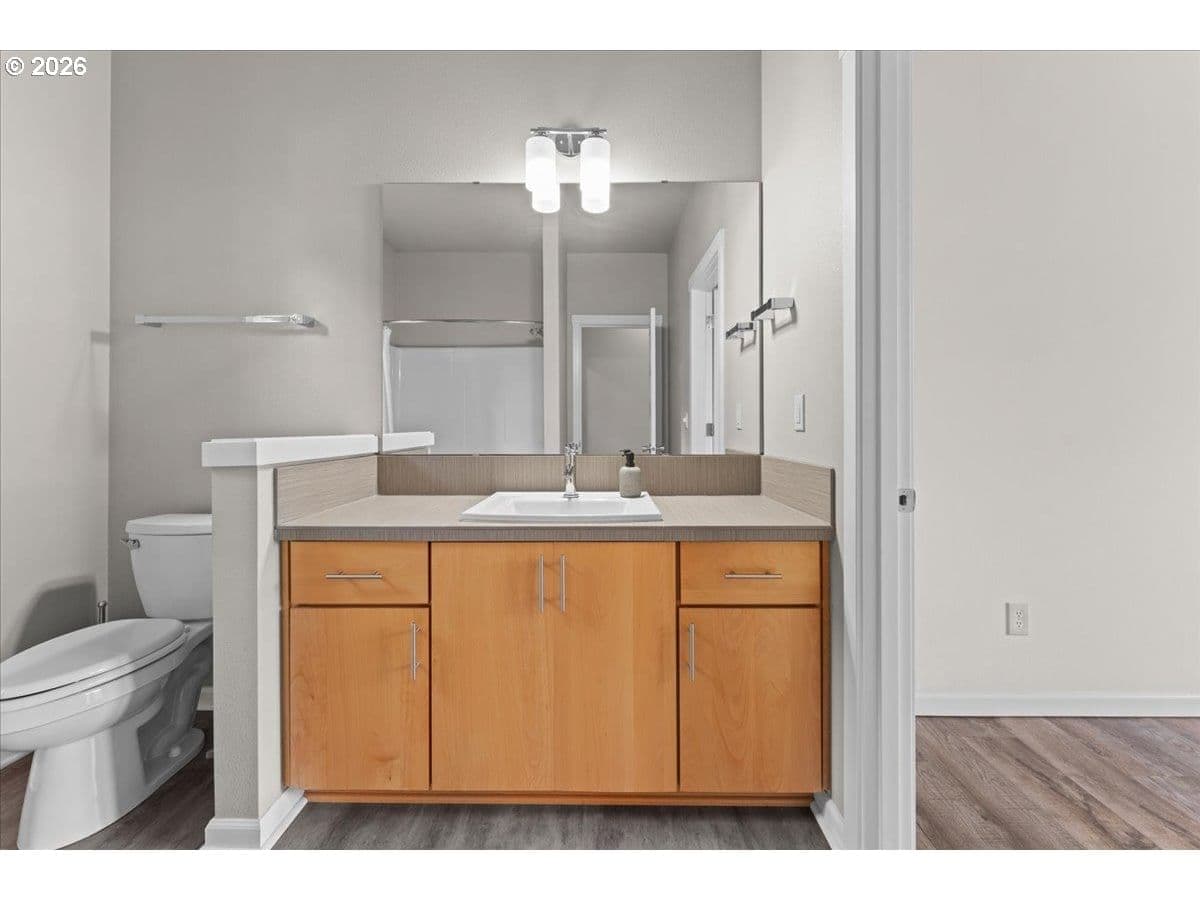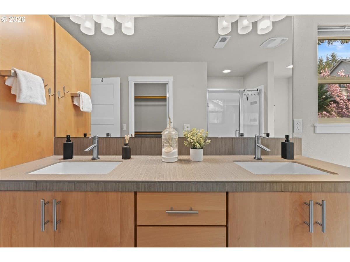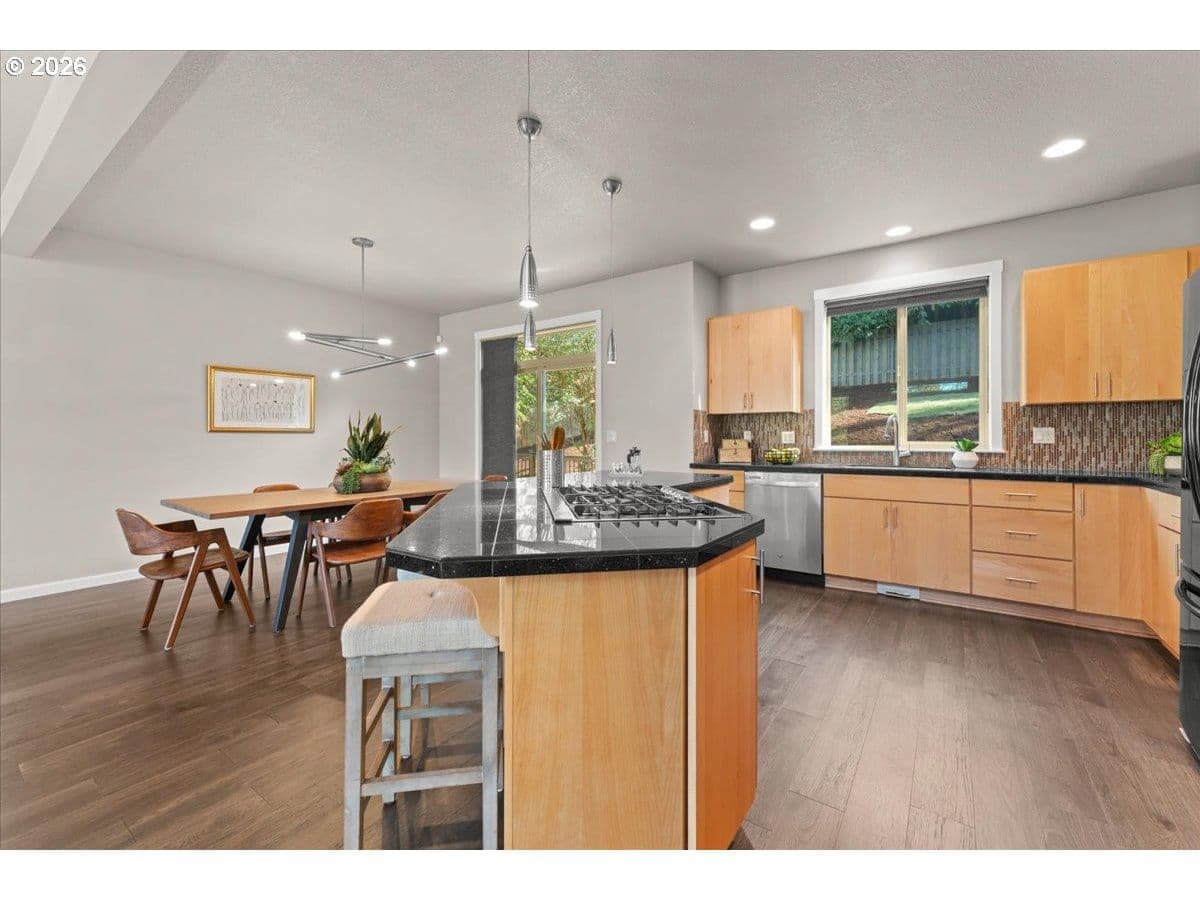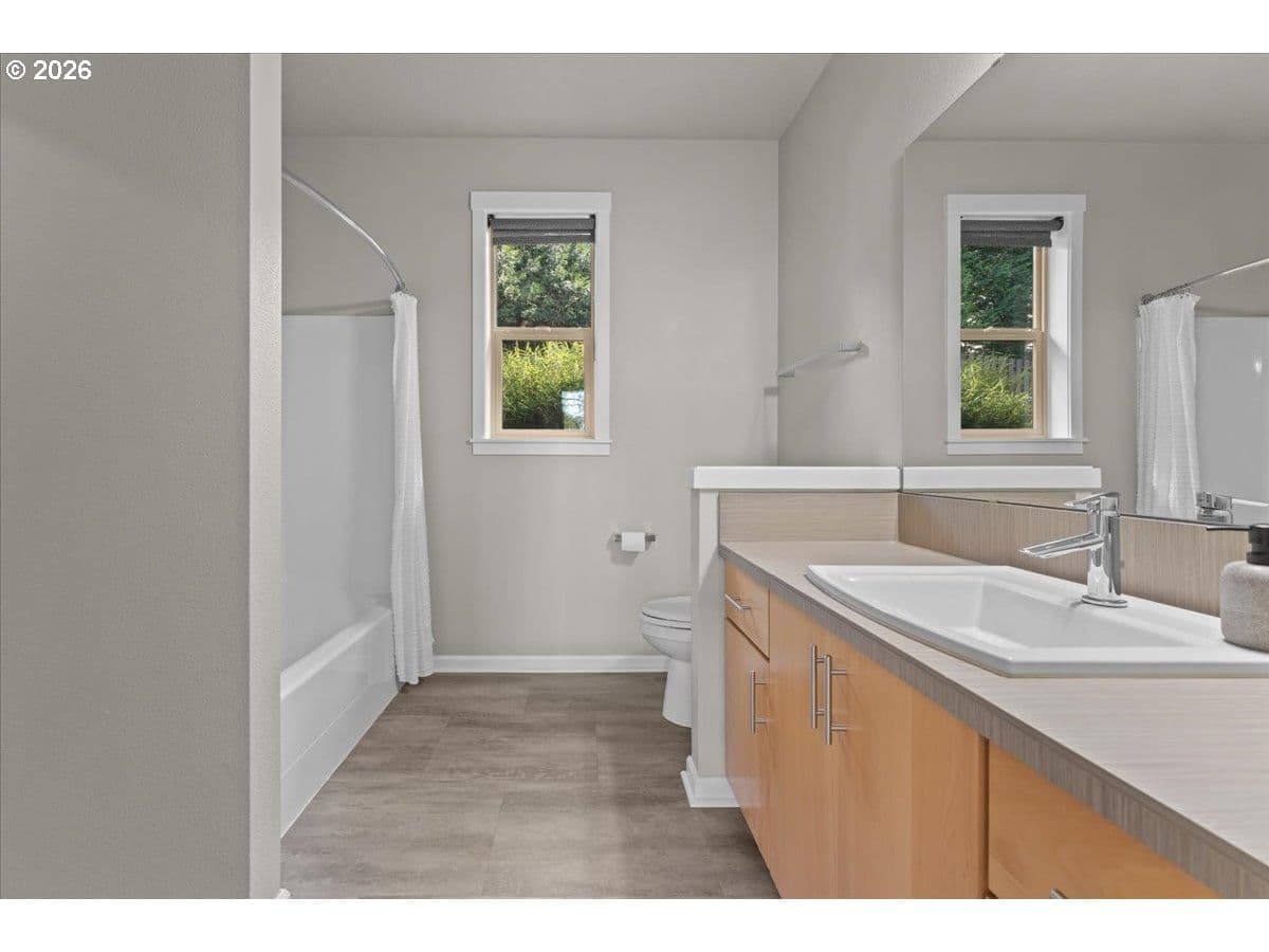 Escape to this move-in-ready home where tranquil Oregon views greet you from every window! This home features 4 bedrooms, 3 full bathrooms, a vaulted primary suite with a walk-in closet, double sinks, shower and soaking tub. Bedroom on main level with a full shared bathroom. The additional room on main can be used as a home office/flex space. Great room floor plan with high ceilings and cozy gas fireplace. Kitchen with granite countertops, stainless steel appliances and a chefs island. New deck, fresh landscaping, central vac, EV charger and a massive garage. Great location with easy access to shopping, restaurants, trails, PDX and Mt. Hood!