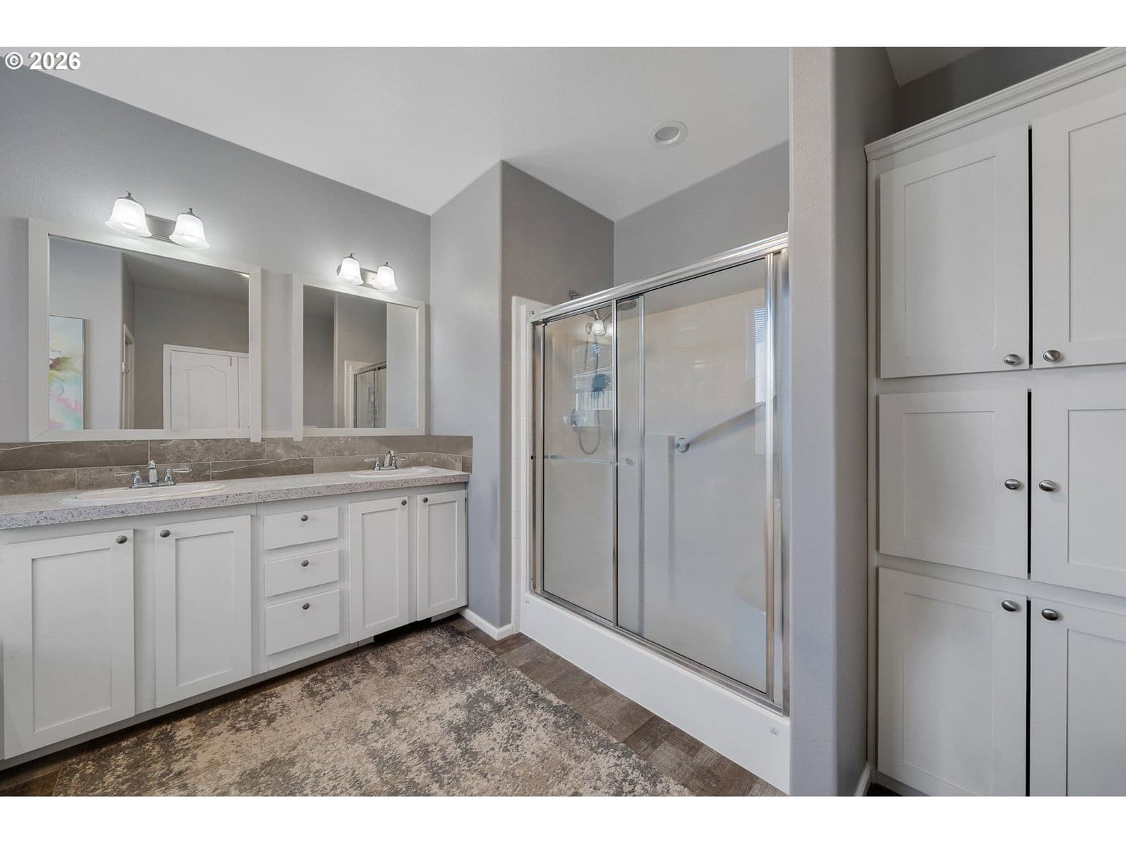 Welcome to this beautifully maintained 2021 home, where modern comfort meets thoughtful design. 9-foot ceilings with crown molding blend seamlessly with the home's neutral color palette, creating a light and airy atmosphere throughout the main living spaces. The layout flows effortlessly from the living room into the kitchen and dining area, offering a comfortable and functional space for both everyday living and entertaining. The kitchen features stainless steel appliances, a large island with breakfast bar seating, and ample cabinetry; all positioned to keep you connected to the heart of the home. Just off the dining area, a sliding glass door leads to a covered outdoor sitting area and a fully fenced backyard—perfect for relaxing or hosting year-round. The primary suite is spacious and private, complete with a large ensuite bathroom featuring double sinks, a walk-in shower, a separate soaking tub, and generous storage. An oversized walk-in closet adds even more functionality to the space. Outside, the property is well-equipped for hobbies, projects, or small-scale homesteading. Highlights include hot and cold water at the exterior spigot, a 30x35 shop with two bays and a wood stove, a covered carport, a 10x12 greenhouse, and a chicken coop with an enclosed run. The level lot provides usable space with a sense of privacy, surrounded by a peaceful, forested backdrop.