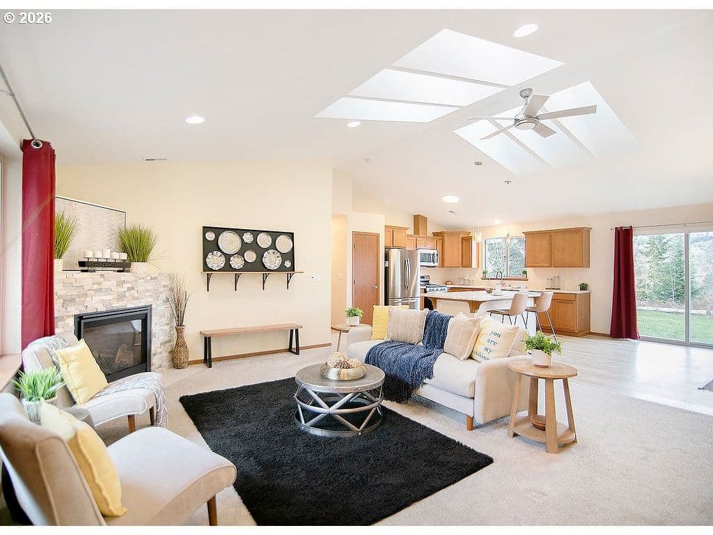 Beautiful Cathlamet -- NEWER Built in 2022 -- 1 Level -- PRIVATE & SECLUDED -- 2.34 ACRES -- Riverfront -- 3 Bedroom / 2 Bathroom -- 1721 Sqft -- Open Great Room Concept -- Living Room w/ Fireplace -- Kitchen w/ Island, Eating Bar, Stainless Appliances & Pantry -- Dining Room -- Primary Bedroom w/ Walk-in Closet & Full Bathroom -- Laundry Room -- Heat Pump & AC -- Vaulted -- Skylights -- Recessed Lighting -- Vinyl Windows -- Attached Double Garage -- HardiPlank Siding -- 2 Workshop / Sheds -- Trees -- Yard -- Garden Space -- RV Parking -- Septic -- Individual Well -- Dead End Street -- Located Near Outdoor Recreation Opportunities