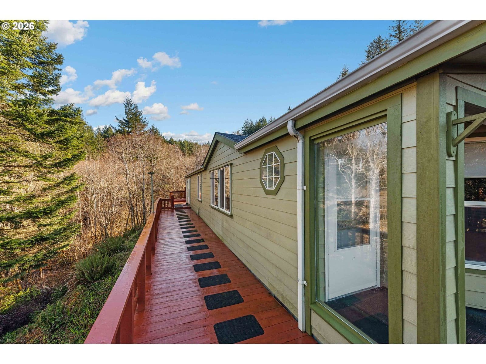 Priced to sell and DEFINITELY A MUST SEE BEAUTIFUL HOME with BREATHTAKING VIEWS! This beautifully maintained 1,512 sq. ft. double-wide manufactured home offers two bedrooms with an easy conversion to a third bedroom or den (currently used as an office). Pergo, tile, and laminate flooring are featured throughout the home, complemented by high ceilings, skylights and a welcoming covered entryway. The spacious primary suite includes a walk-in closet, garden tub, walk-in shower, and private access to the wraparound deck ideal for taking in the stunning views of the North Bend Bridge and the beautiful Bay along with a view of Kentuck Inlet. The kitchen is thoughtfully designed with granite countertops, a double oven, built-in microwave, ample pantry space along a charming coffee nook perfect for enjoying your morning beverage. Step outside to the expansive wraparound deck, perfect for sunrise coffee or evening sunsets and enjoy the fully fenced backyard offering privacy and outdoor space. This property also features an impressive approximately 24’ x 36’ detached 2 bay shop with power, concrete flooring and an approximately 15-foot-high garage door ideal for RV parking, additional vehicles, or hobby use along with the 2 car garage attached to the home. Lower yard is perfect for family gatherings. Build a fire and enjoy! With stunning views from the deck in both the mornings and evenings, this home delivers comfort, functionality and scenery in one exceptional package.