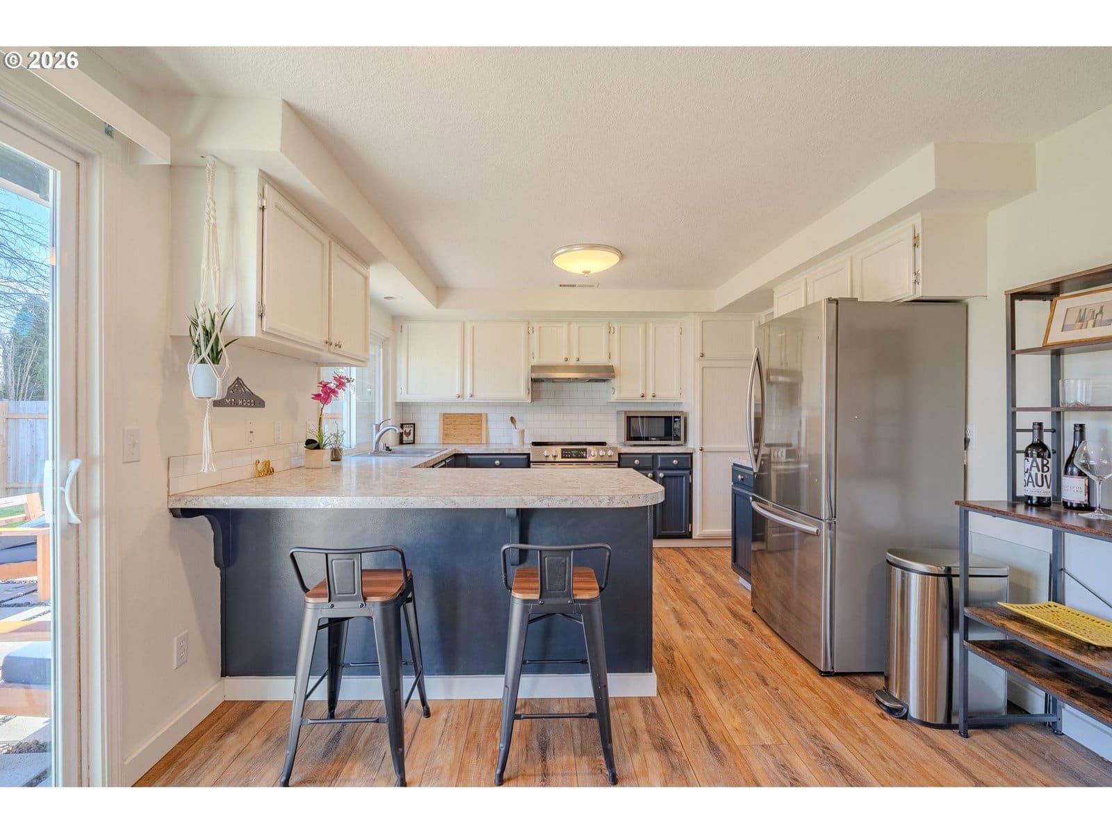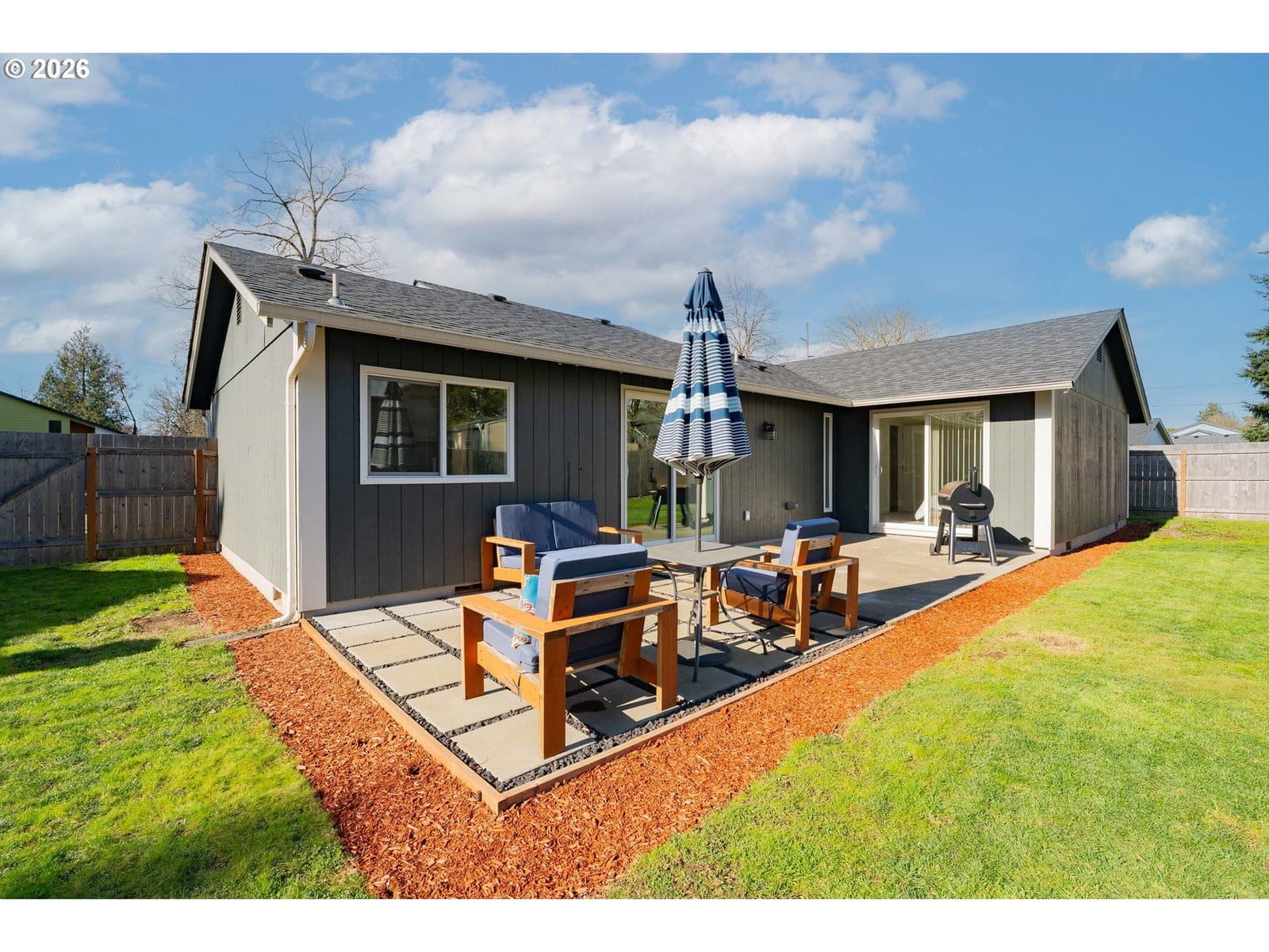 Welcome to your turn-key oasis! This beautifully reimagined 3-bedroom, 2-bathroom ranch offers the perfect blend of one level convenience and high-end modern design. Every inch of this home has been thoughtfully updated to provide a sleek, contemporary aesthetic alongside total peace of mind. Step inside to find stunning, brand-new LVP flooring that flows throughout the open-concept living areas, offering durability without sacrificing elegance. The spacious living room features a breathtaking focal point of large-format tile fireplace, serving as a sophisticated centerpiece for cozy evenings. The heart of the home is outfitted with a full suite of stainless steel appliances, perfectly complementing the home’s modern upgrades.The massive, fully fenced backyard and extended patio are perfectly sized for summer BBQs, outdoor lounge furniture, and includes a raised garden bed ready for your harvest or flowers. A large and deep two-car garage, provides plenty of space for vehicles, a workbench, or additional storage. Move in with confidence knowing the water heater, garbage disposal, and dishwasher were all replaced within the last 3 years.